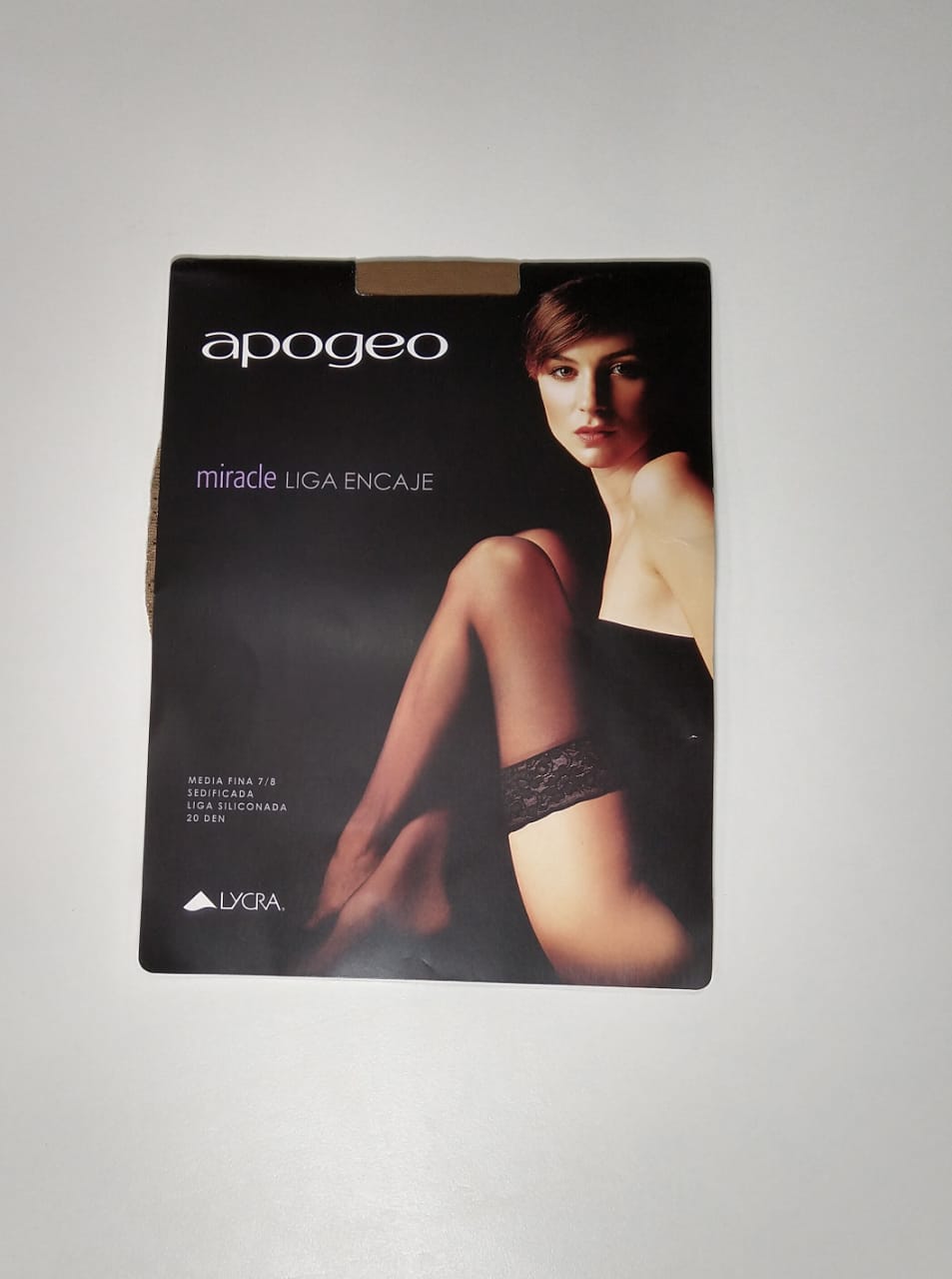 Media 7/8 de lycra con liga de encaje siliconada, con 20 den