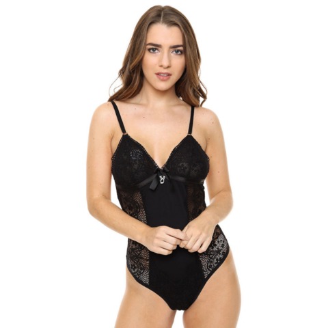 Body de microfibra y encaje, con detalles de puntilla