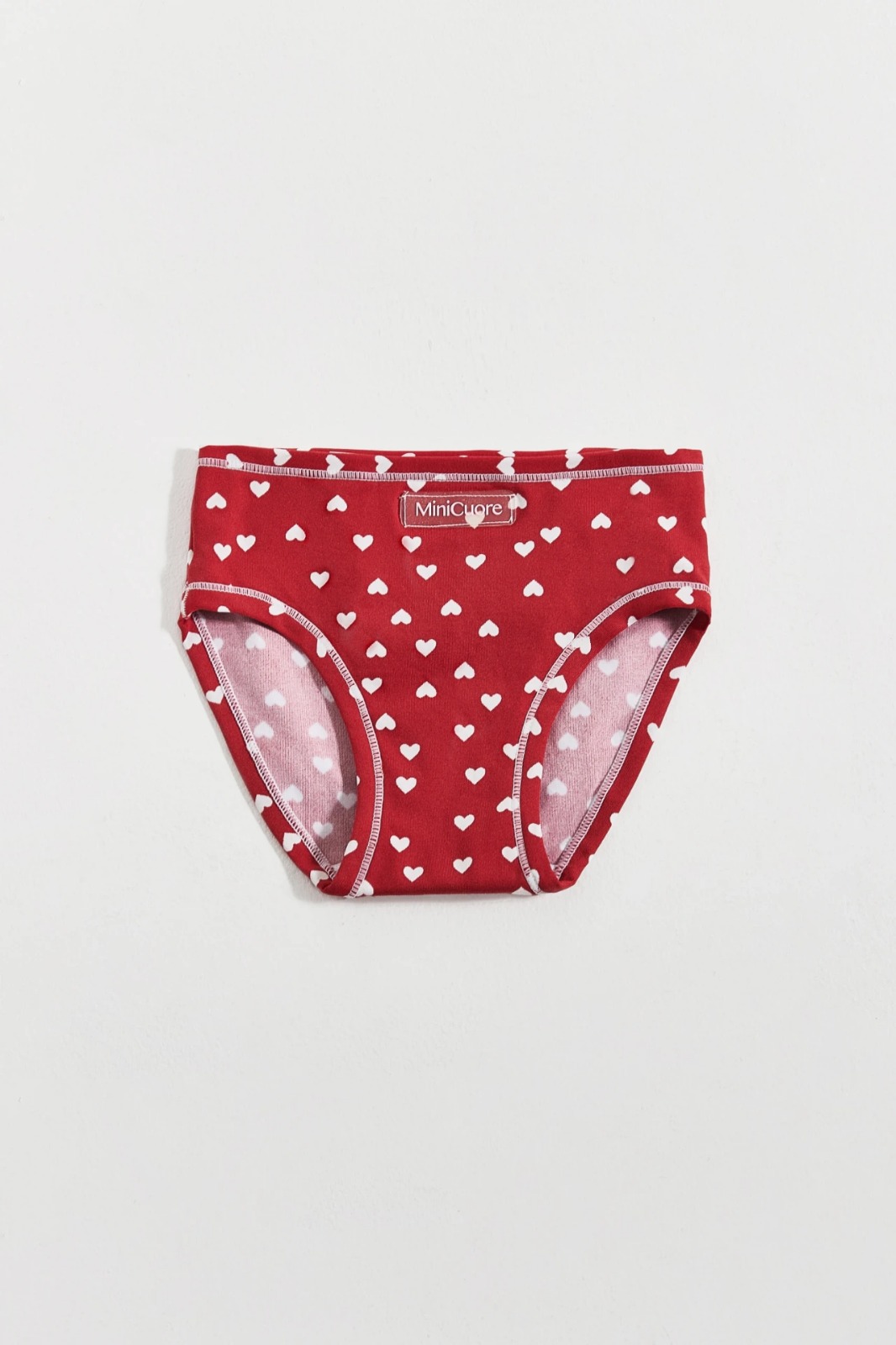 Bombachita MiniLight de microfibra estampada con diseño de corazones. La terminación en pierna y cintura es de la misma tela, no ajusta.