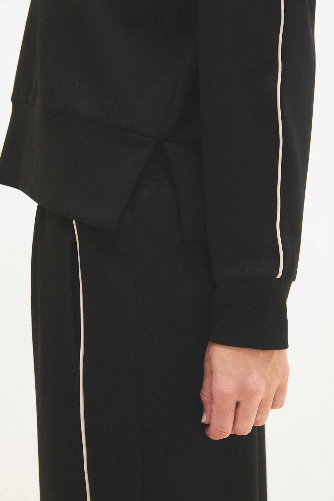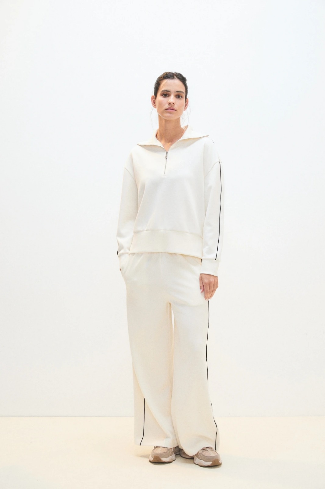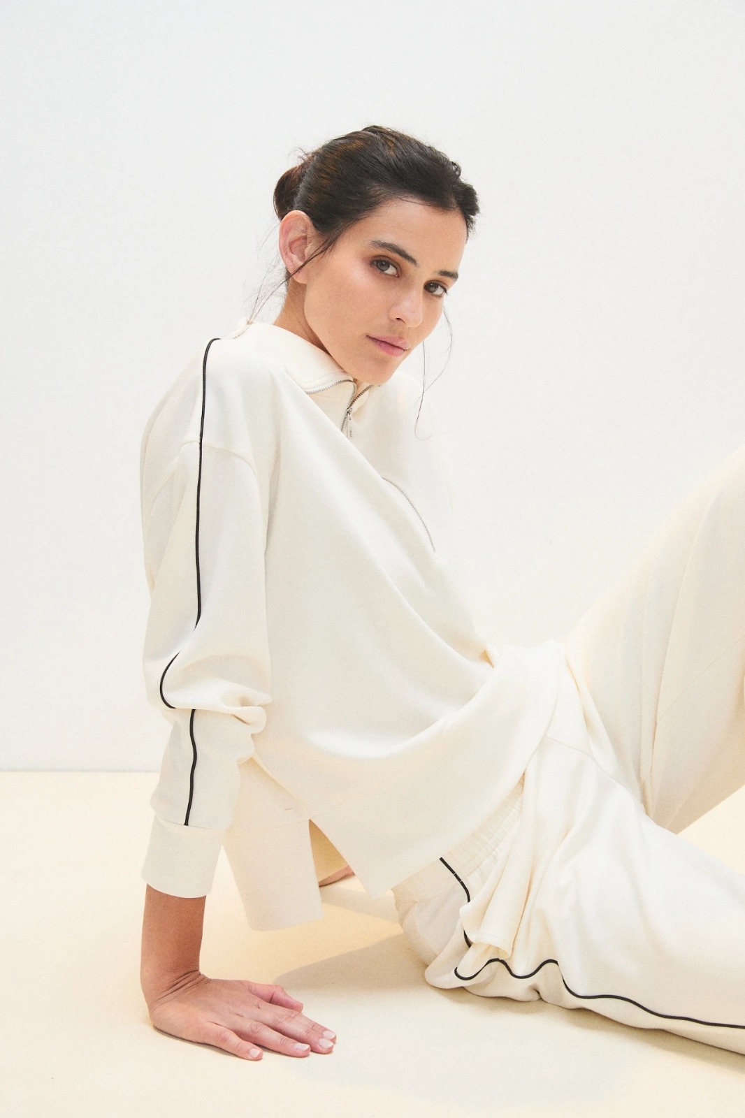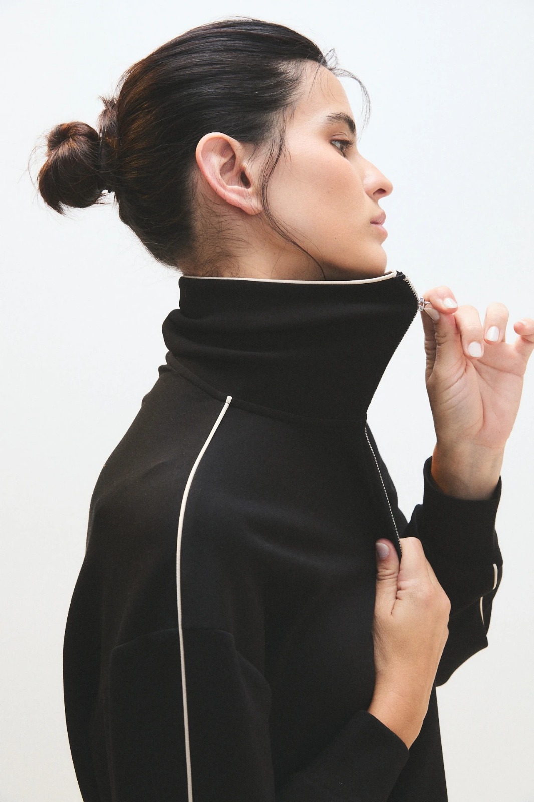 Buzo deportivo de Jersey pesado con tacto suave. Con detalles de vivos a contratono y logo estampado. Es una propuesta funcional, moderna y versatil.
