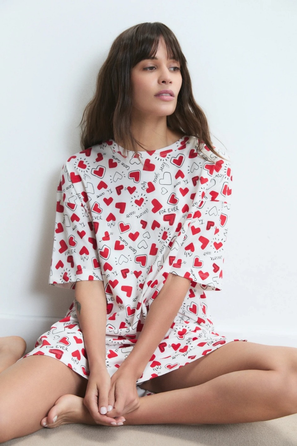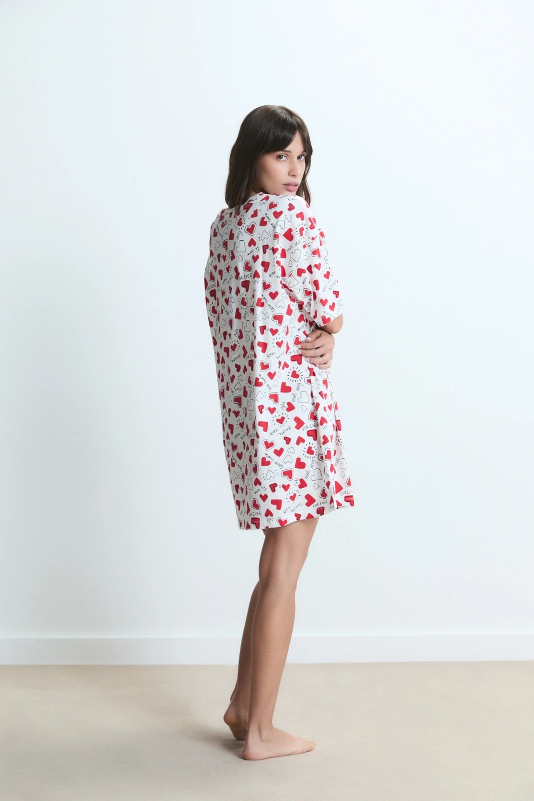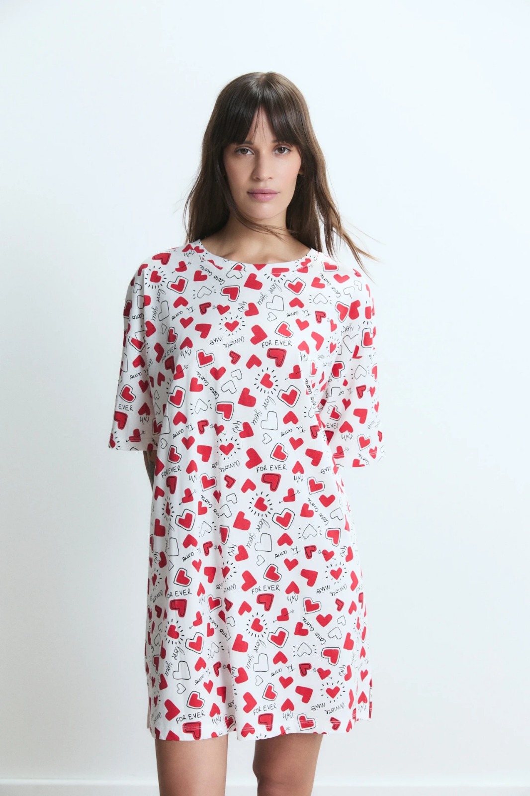 Camisón de jersey de algodón estampado. Su calce holgado y cómodo lo hace ideal para uso diario