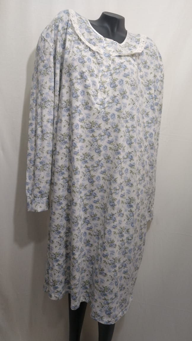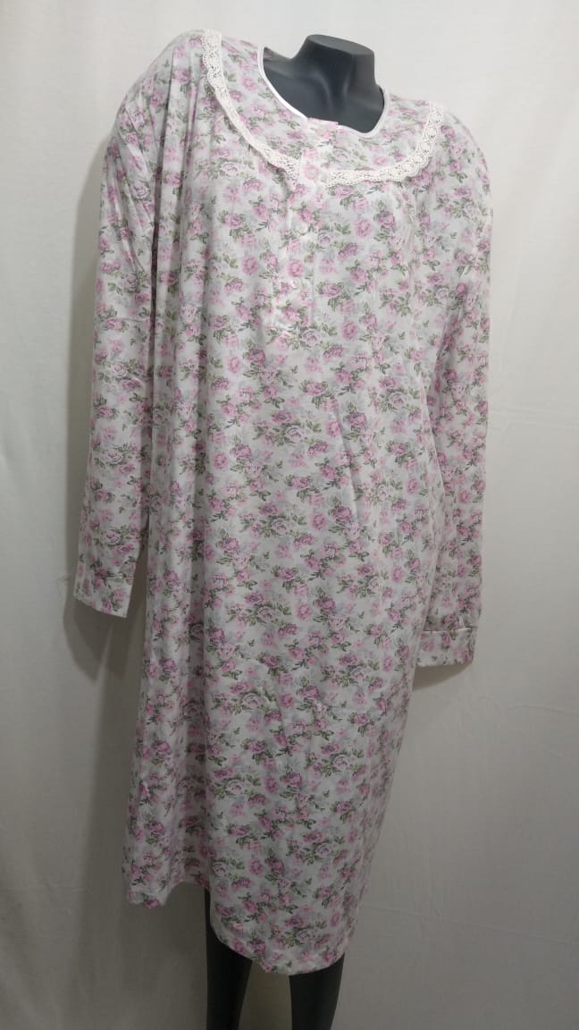 Camisón manga larga de algodón estampado con cartera y puntilla