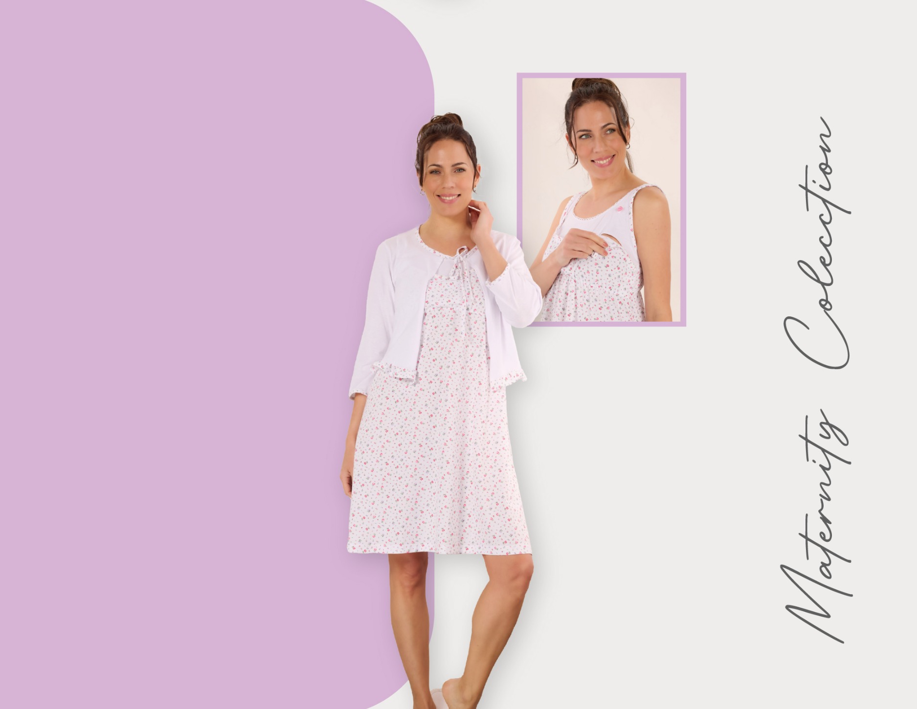 Camisón de algodón estampado, con copas desmontables que facilitan la lactancia- Incluye la mañanita haciendo conjunto