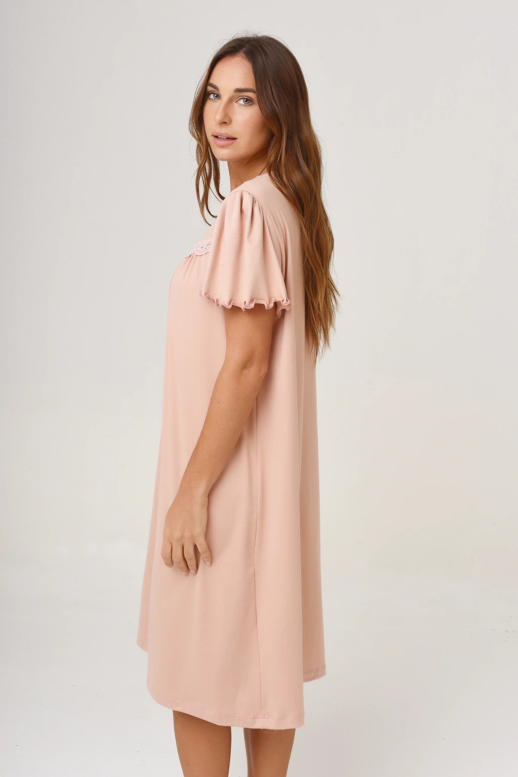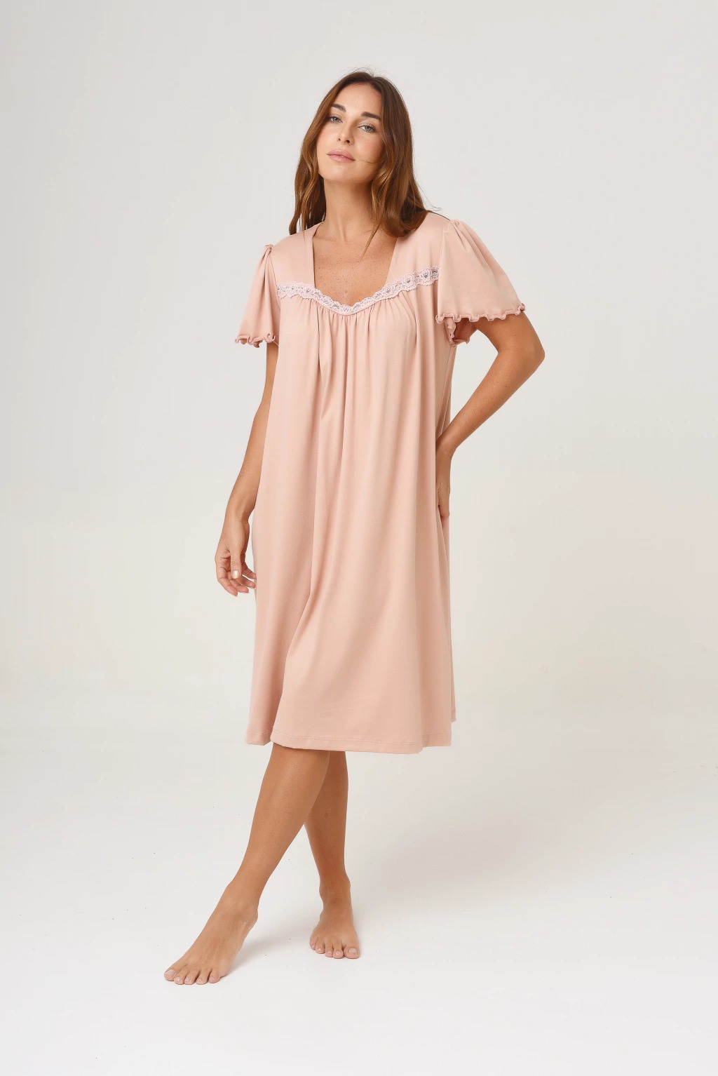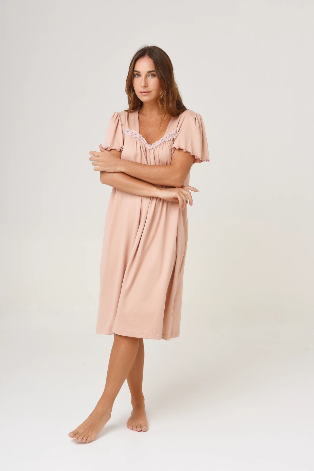 Camisón manga corta de jersey viscosa con lycra, detalles de puntilla en el cuello