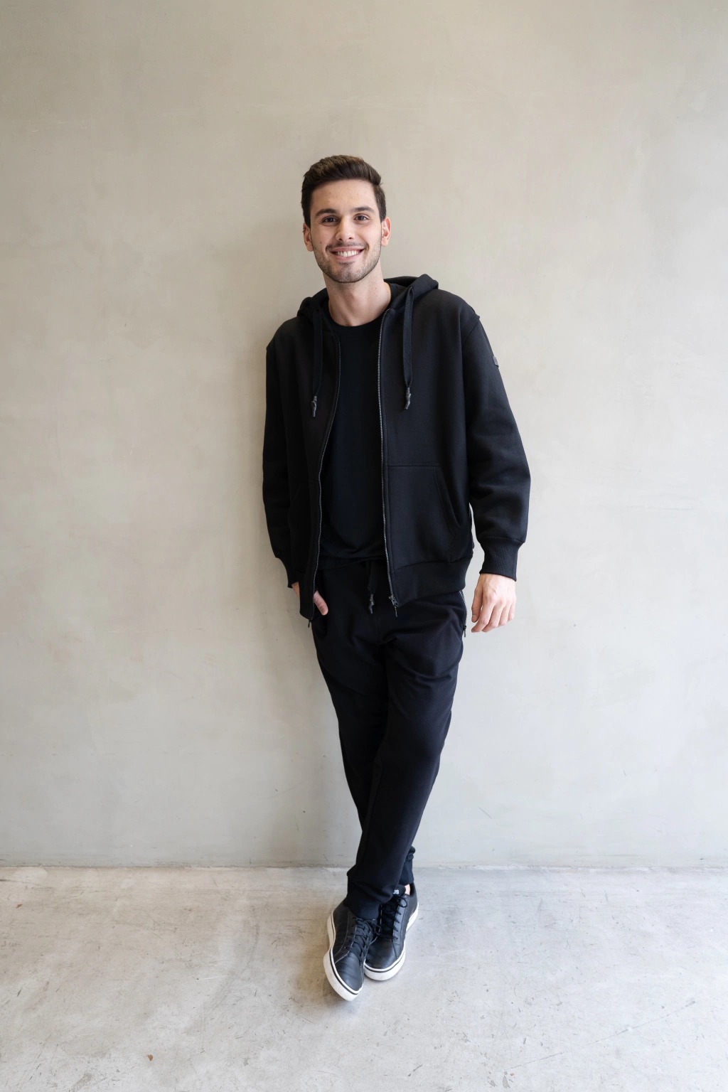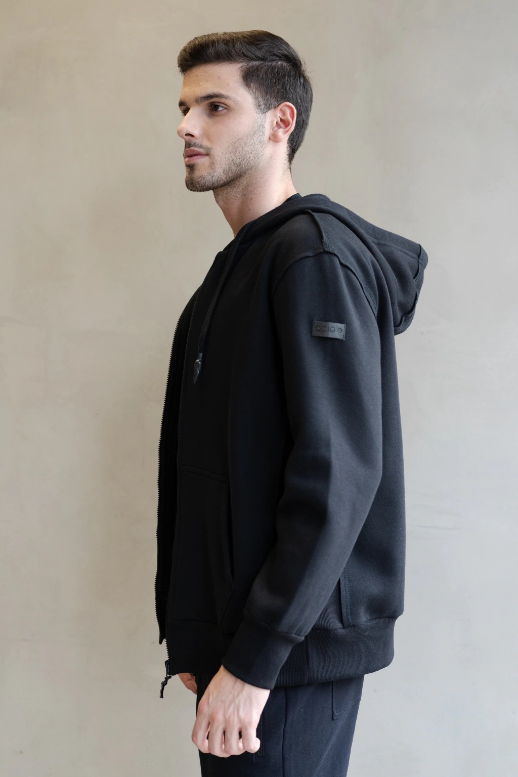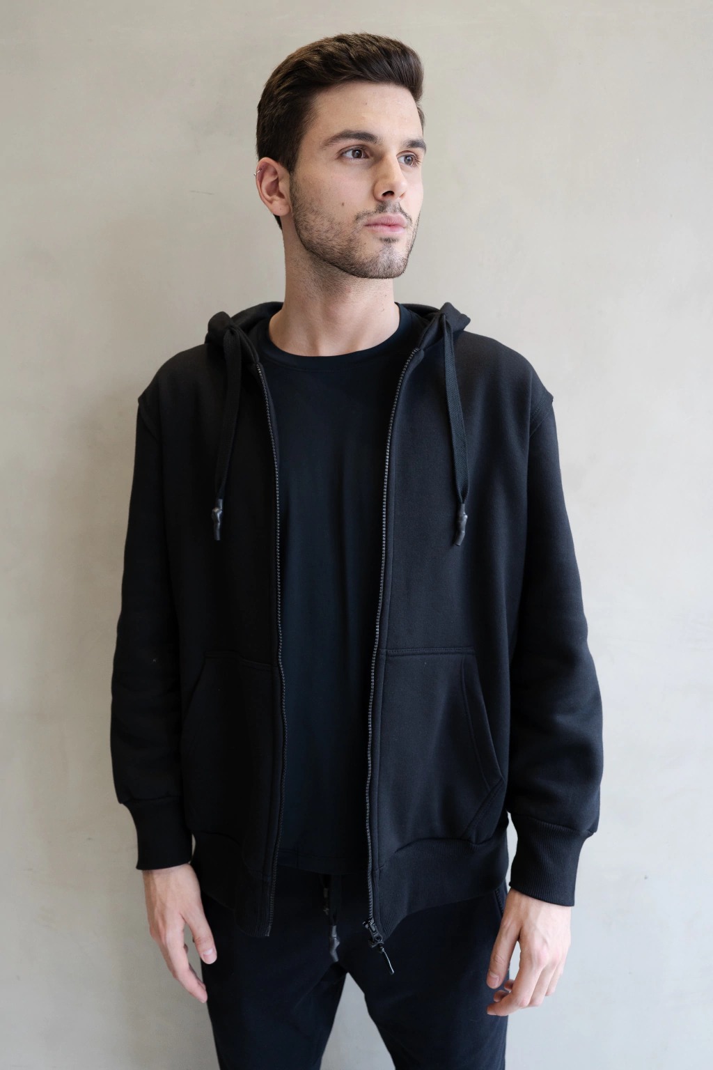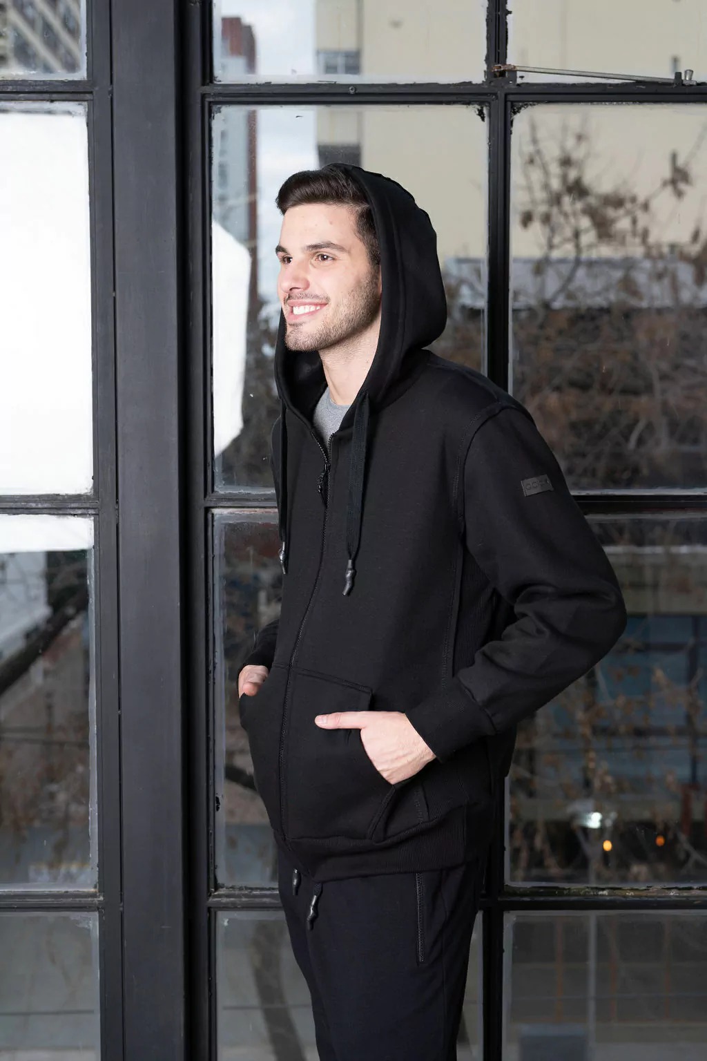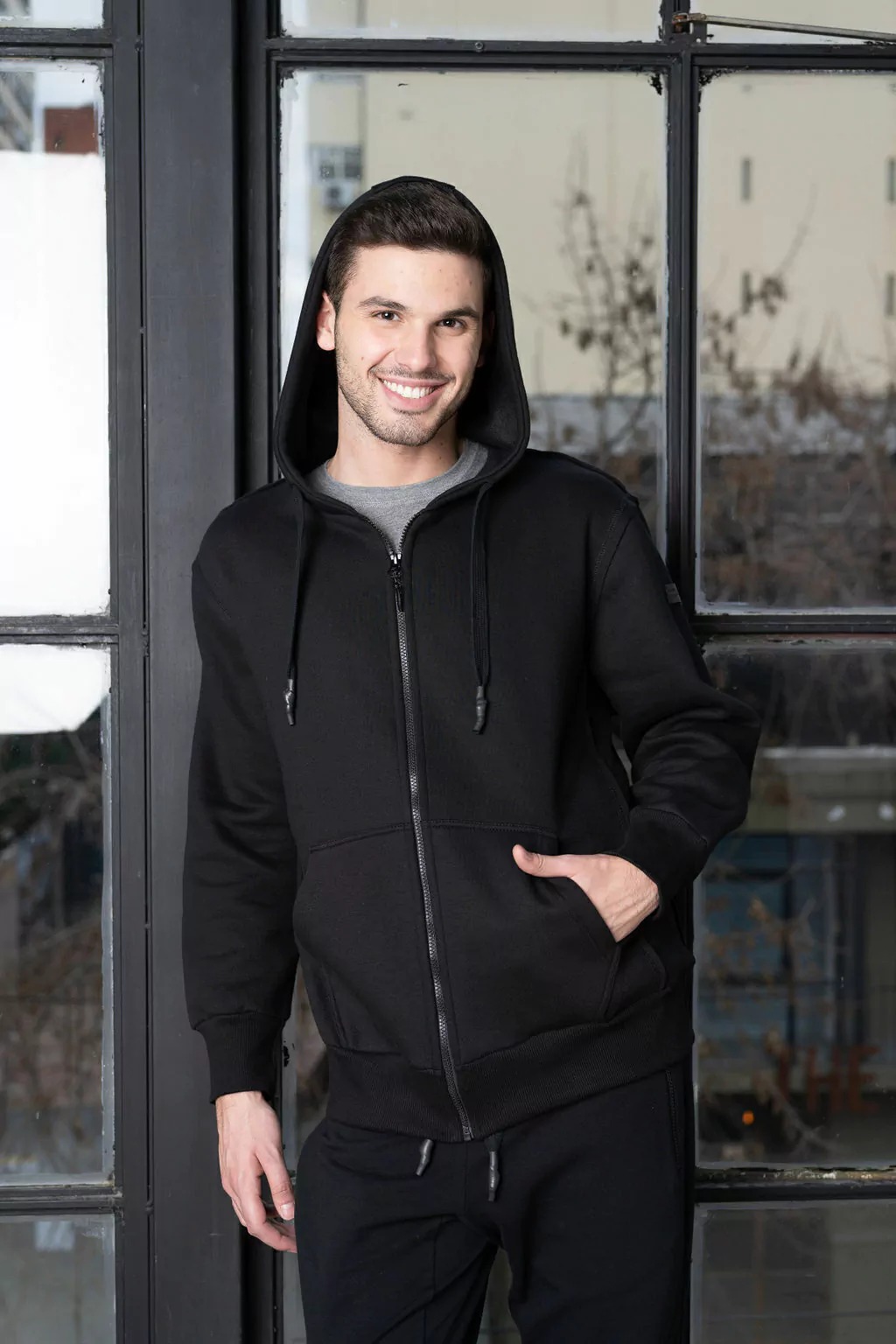 Campera para hombre de jersey de algodón con friza, capucha amplia y bolsillo tipo canguro