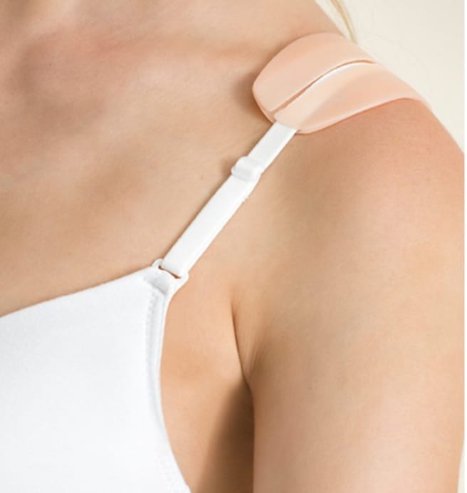 Protector de siliconas para hombros. Las mujeres con busto pesado y abundante suelen tener lastimados o marcados los hombros por el roce de los breteles. Estos protectores de siliconas protegen los hombros y evitan lastimaduras o marcas.