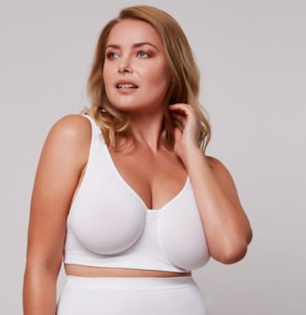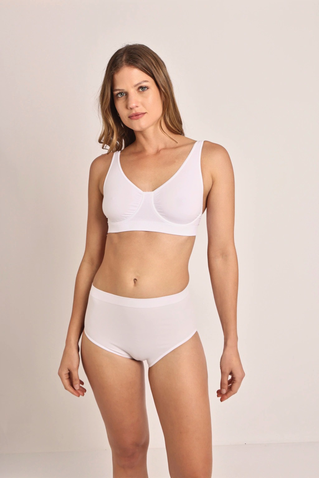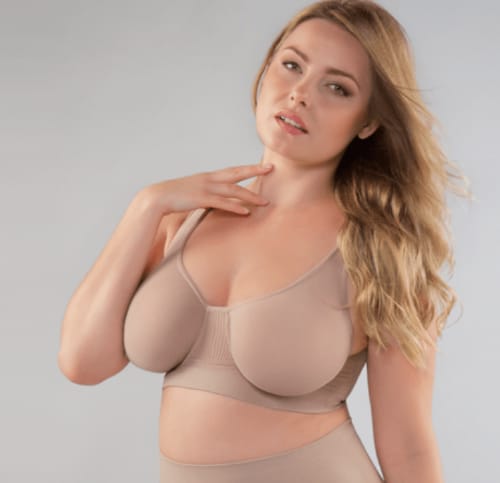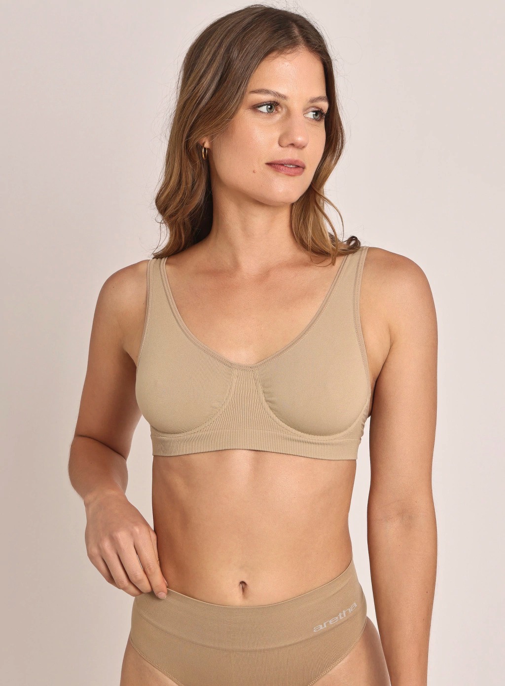 Corpiño modelante con aro, contorno elastizado y bretel regulable. Confeccionado en seamless