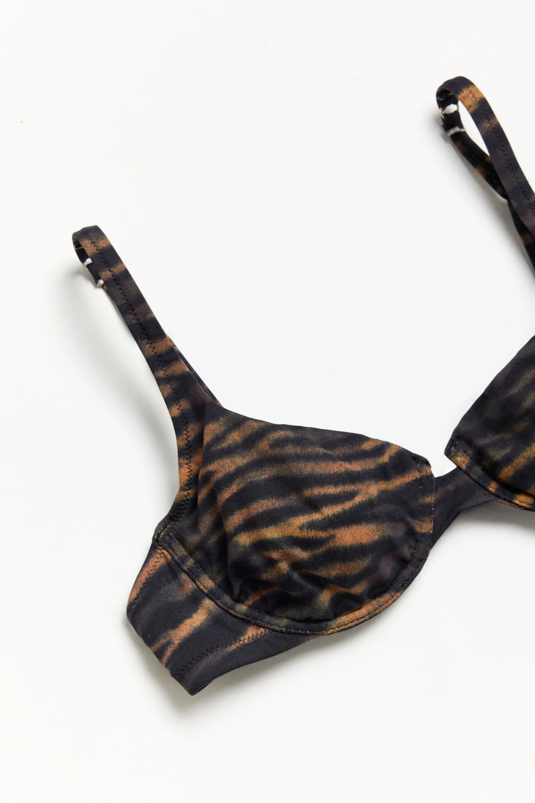 Corpiño con aro Tassia, de microfibra estampada. Tiene buena capacidad y un escote despojado. Posee regulación y gancho en la espalda. Una propuesta clásica y universal, con un print novedoso. Llevando las dos partes del traje de baño, se incluye un pouch