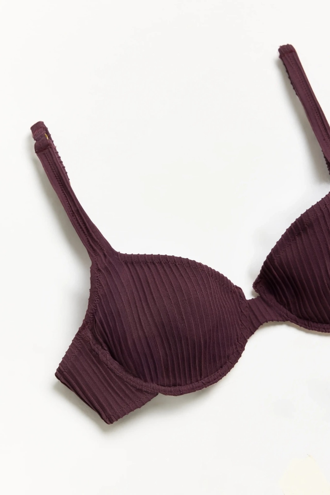 Corpiño con aro Ti Voglio de microfibra con textura acanalada. Tiene buena capacidad y un escote despojado. Posee regulación y gancho en la espalda. Una propuesta clásica y universal, con tejido diferencial en colores de temporada! Llevando las dos partes del traje de baño, se incluye un pouch.