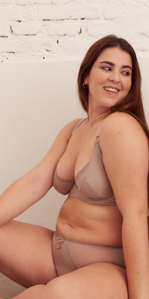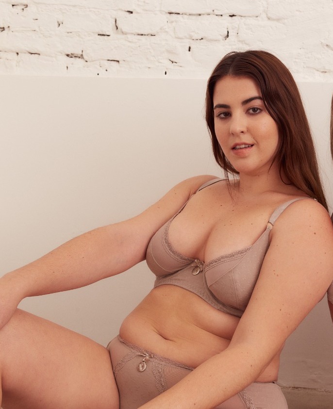 Corpiño con aro de microfibra labrada con detalle de puntilla