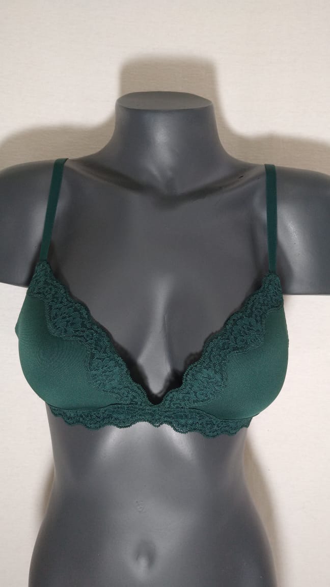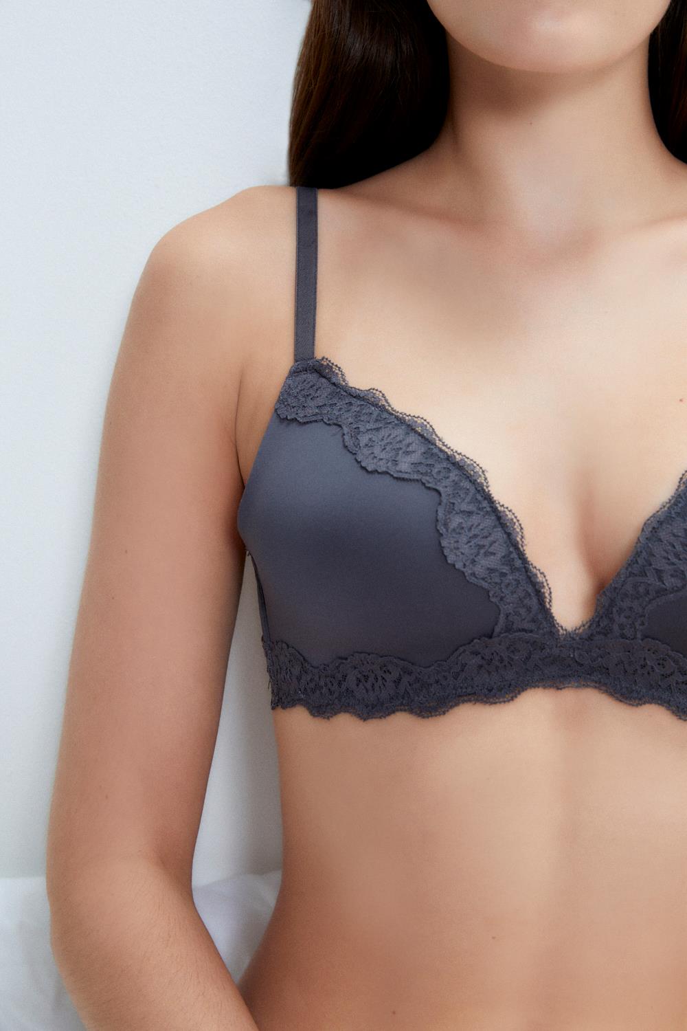 Corpiño triangulo con taza soft de microfibra liviana con puntilla.