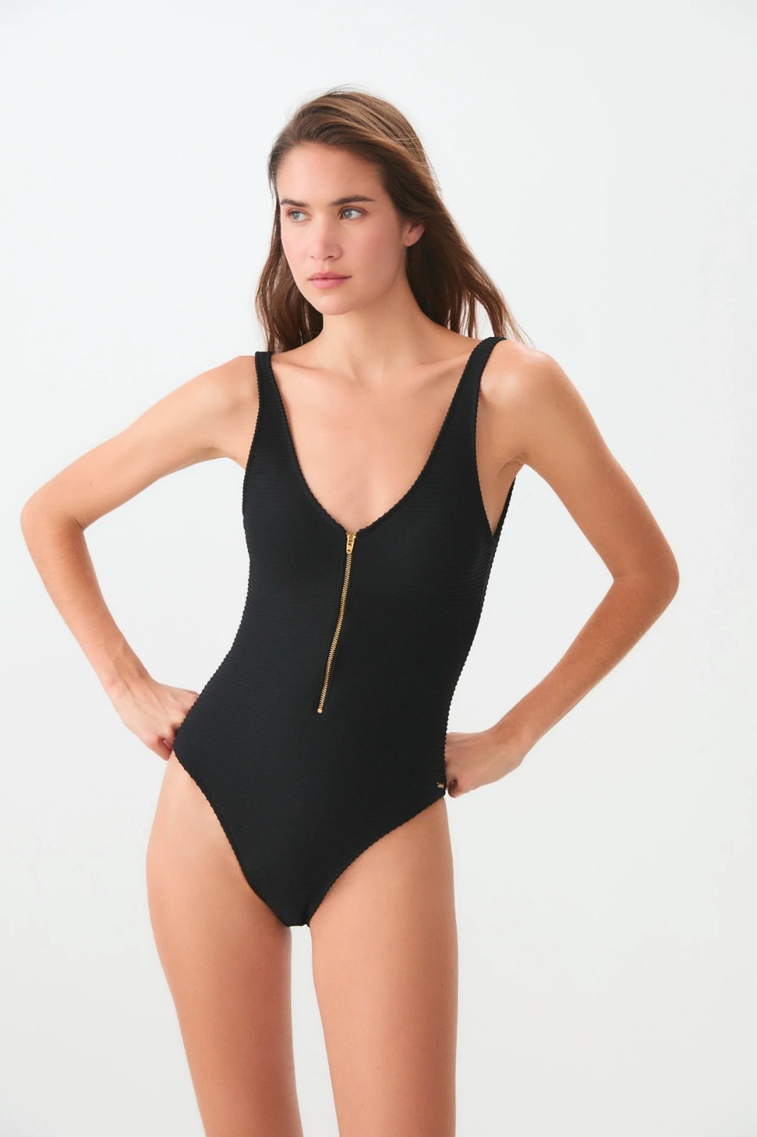Entero Ti Voglio de microfibra con textura acanalada. Un calce clásico en tejido diferencial, y en colores de temporada. Posee cierre color dorado en el frente y forrería con descarga de arena. Incluye pouch.