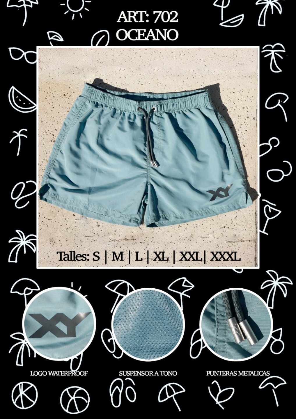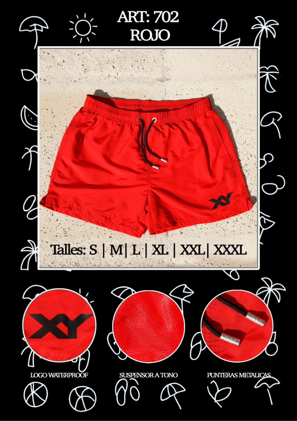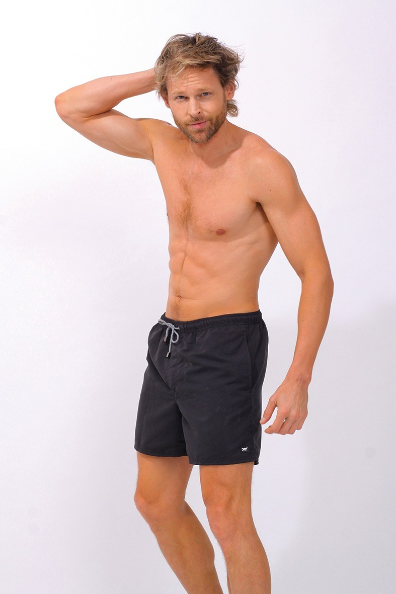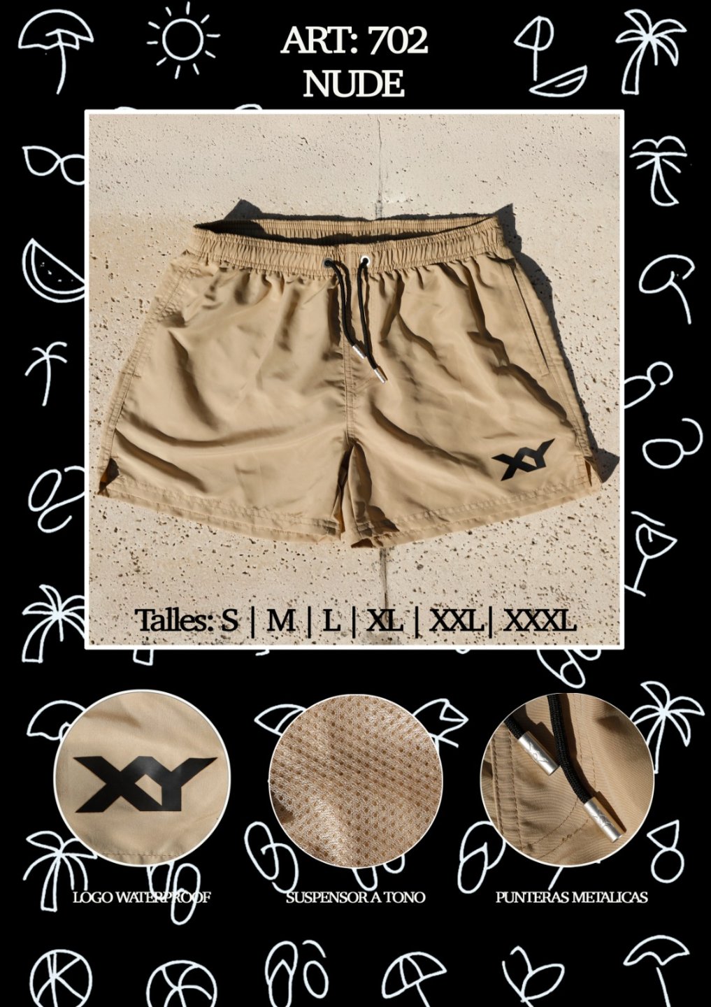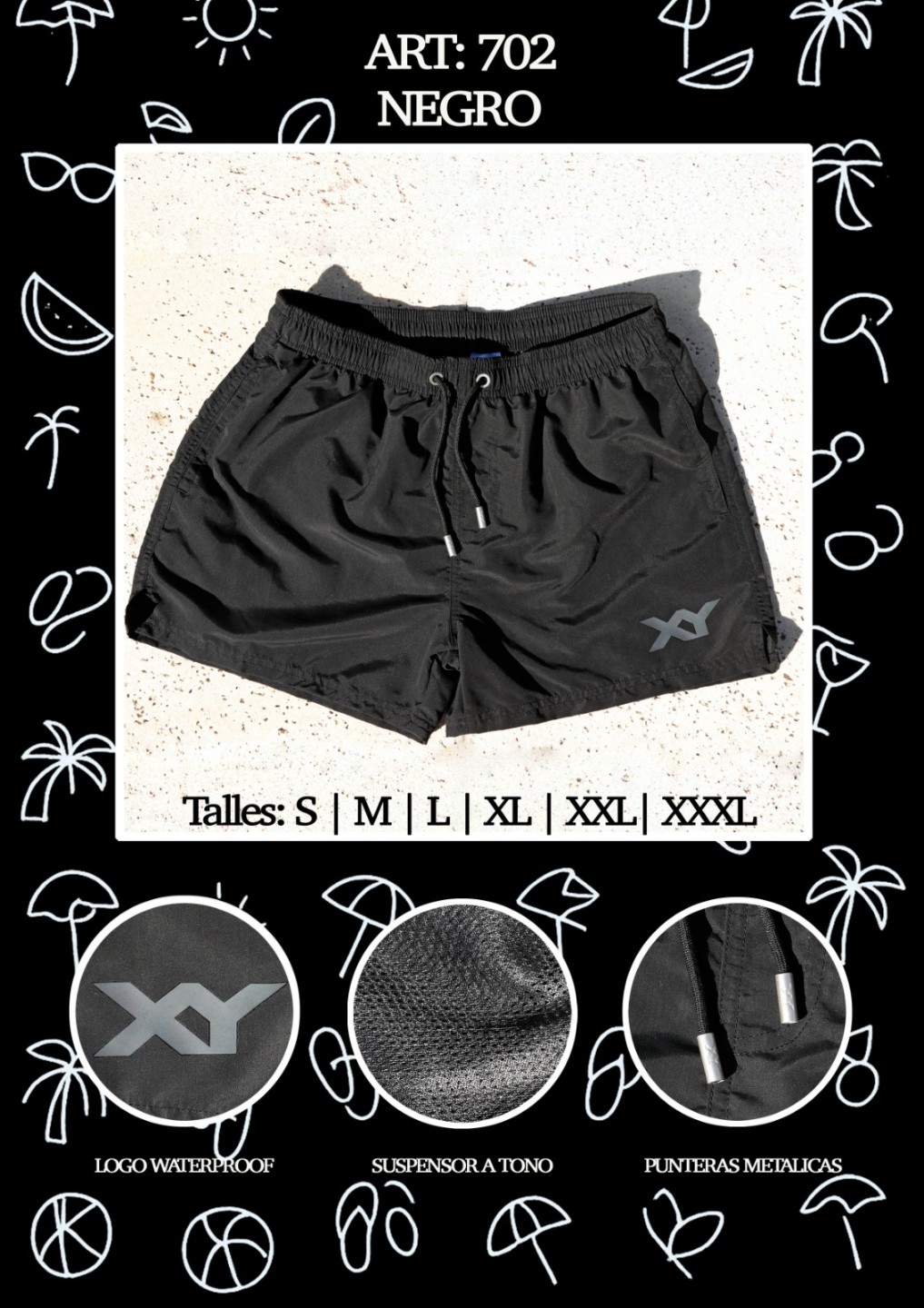 Short de baño liso, con bolsillos, suspensor y puntera con logo.