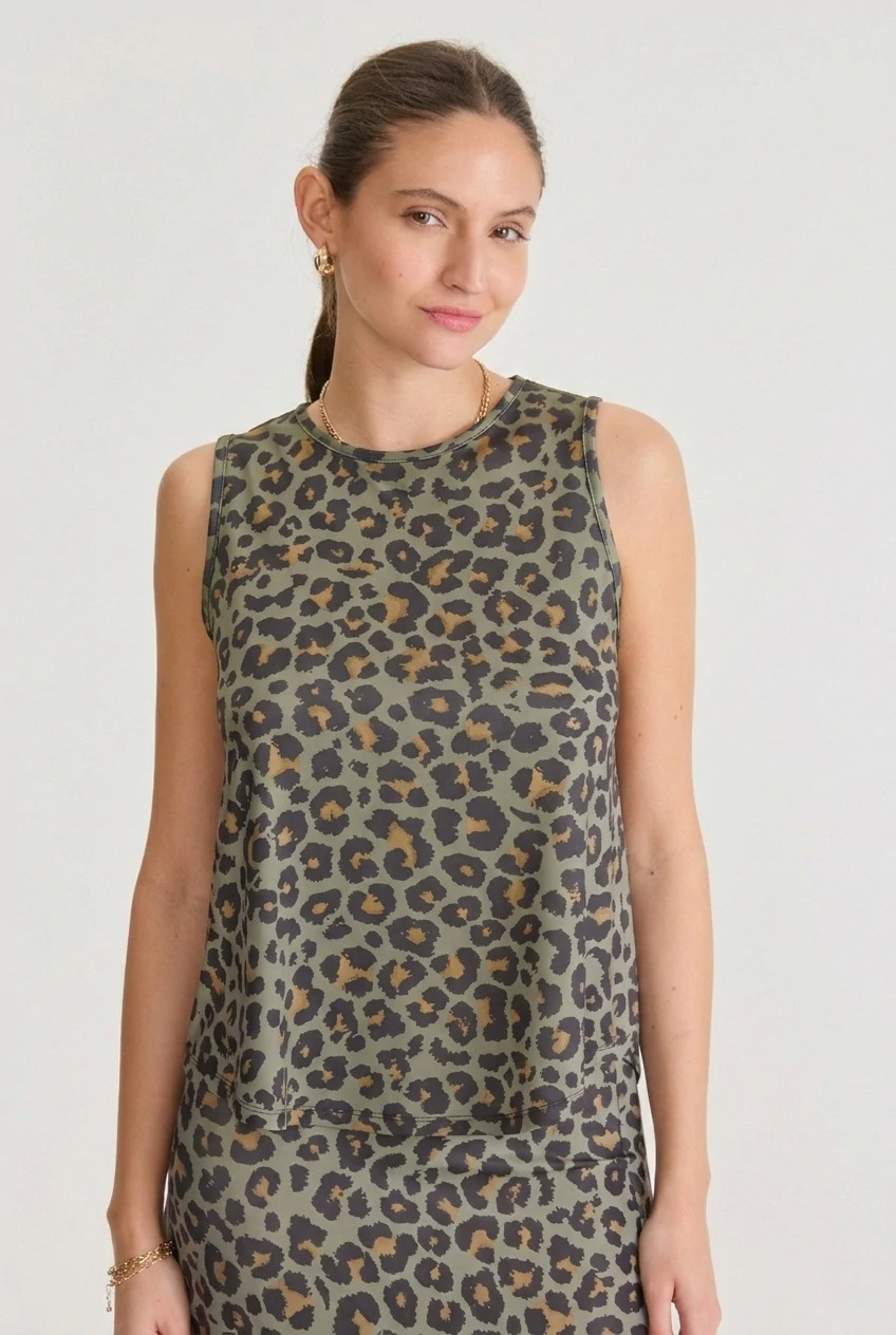 La Musculosa Petra destaca por su confección en seda fría, brindando una sensación suave y fresca en contacto con la piel. Su cuello ligeramente más cerrado aporta un aire moderno y elegante, mientras que la estampa animal print suma un toque sofisticado y audaz. Ideal para quienes buscan lucir un estilo refinado y versátil, tanto de día como de noche.