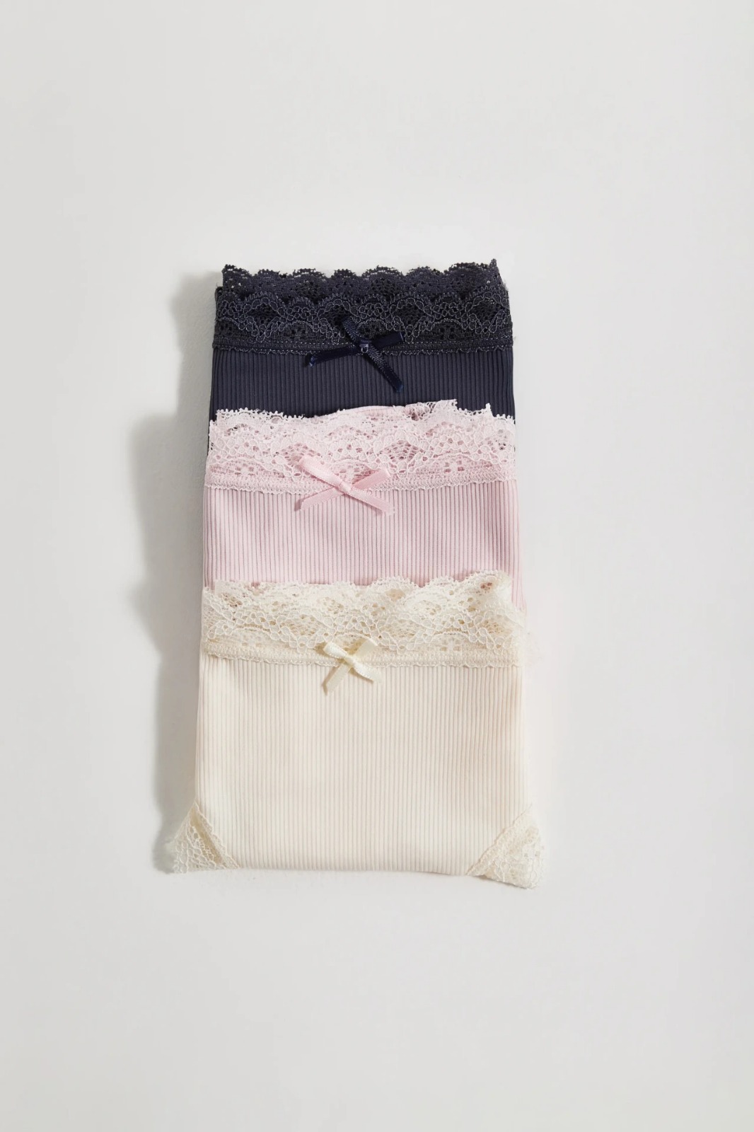 Pack x 3 Colaless Amy de microfibra acanalada liviana con detalles de puntilla.