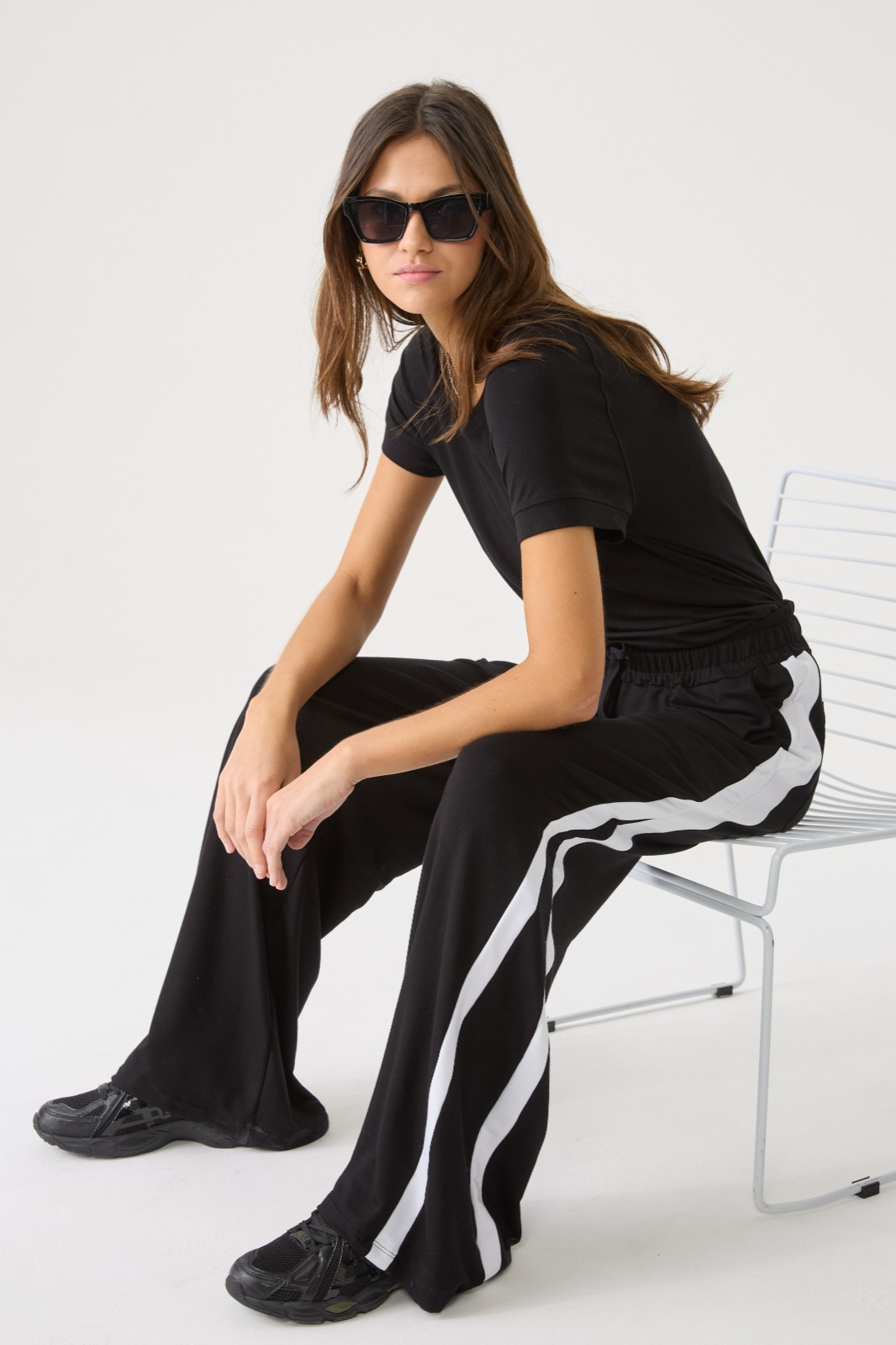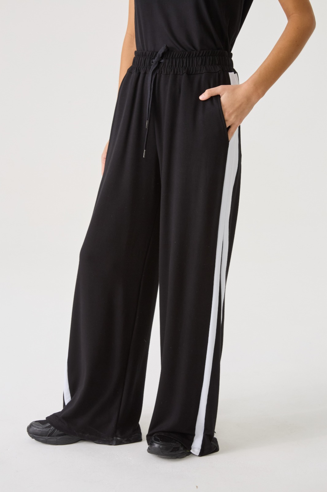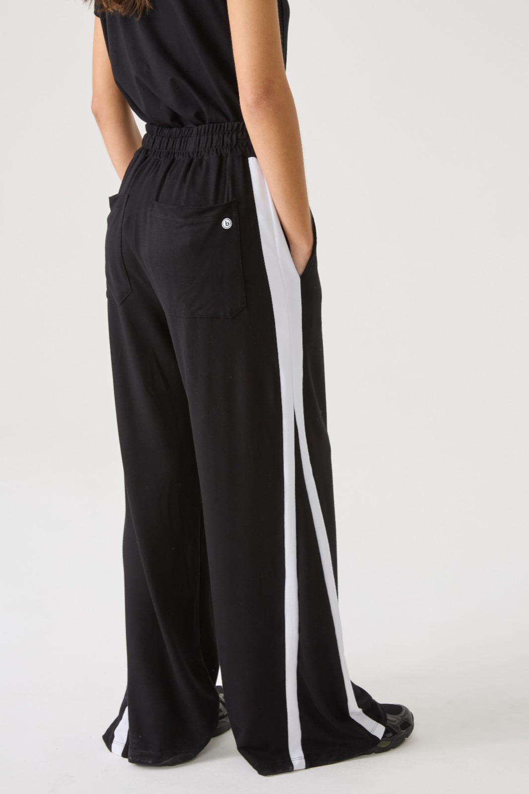 El Palazzo Carola redefine la elegancia urbana: confeccionado en rústico con lycra, brinda suavidad, elasticidad y una caída moderna. Sus dos franjas laterales en otro tono a contraste suman un toque distintivo y versátil.