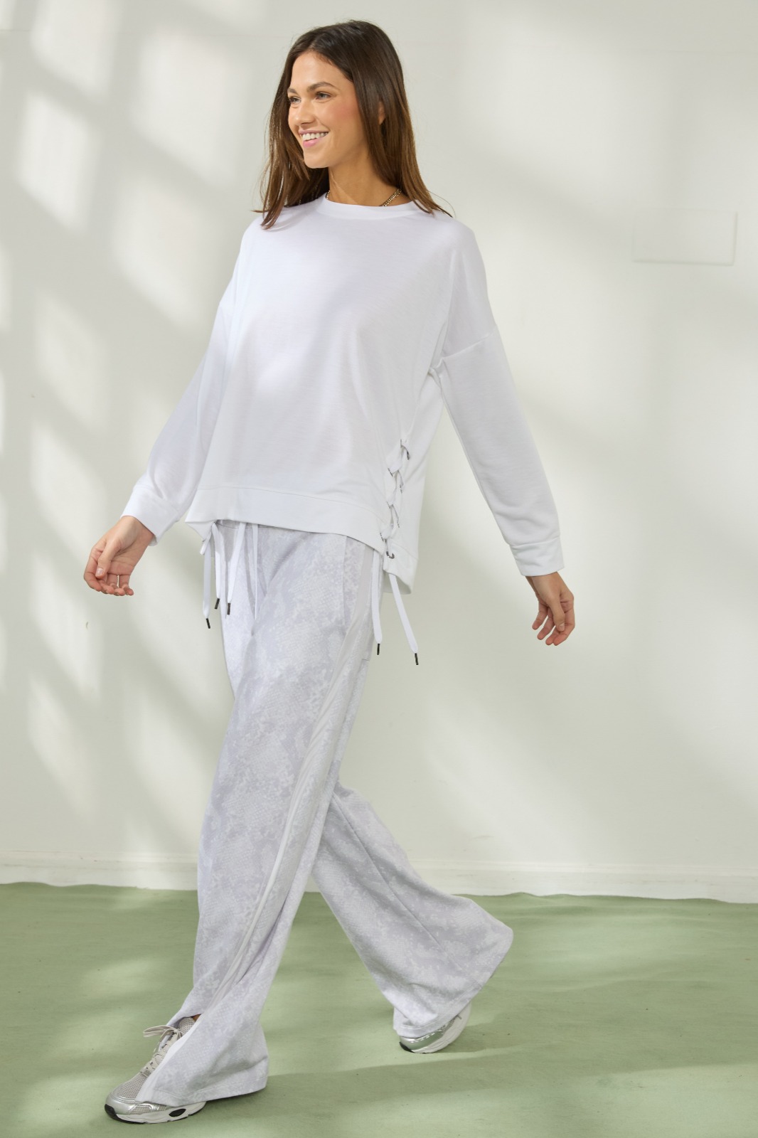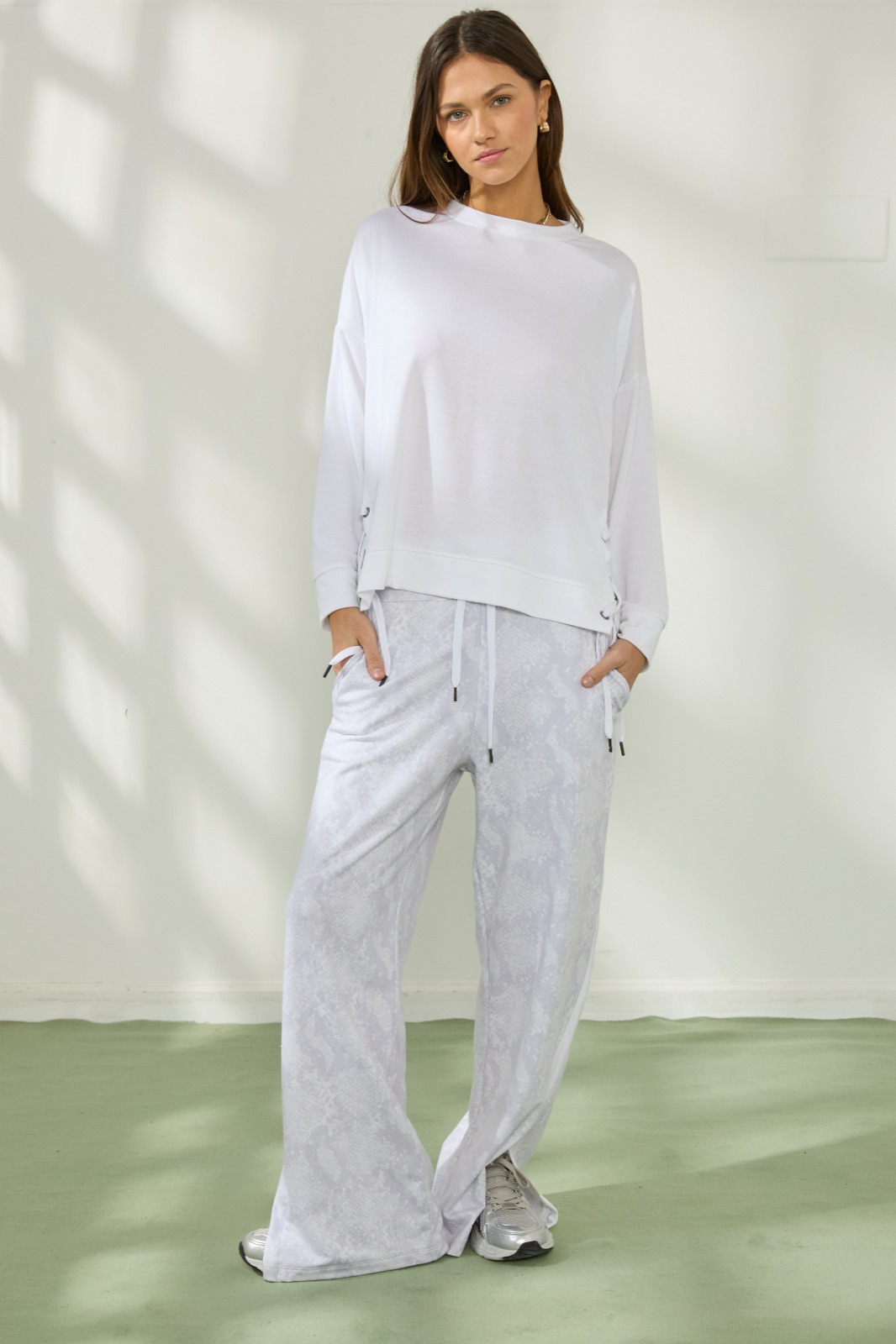 La combinación de materiales permite que el pantalón se adapte a tu silueta, aportando comodidad y libertad de movimiento en todo momento. Su estampado exclusivo añade personalidad y convierte al PALAZZO SAHARA en la elección ideal tanto para el día como para la noche.