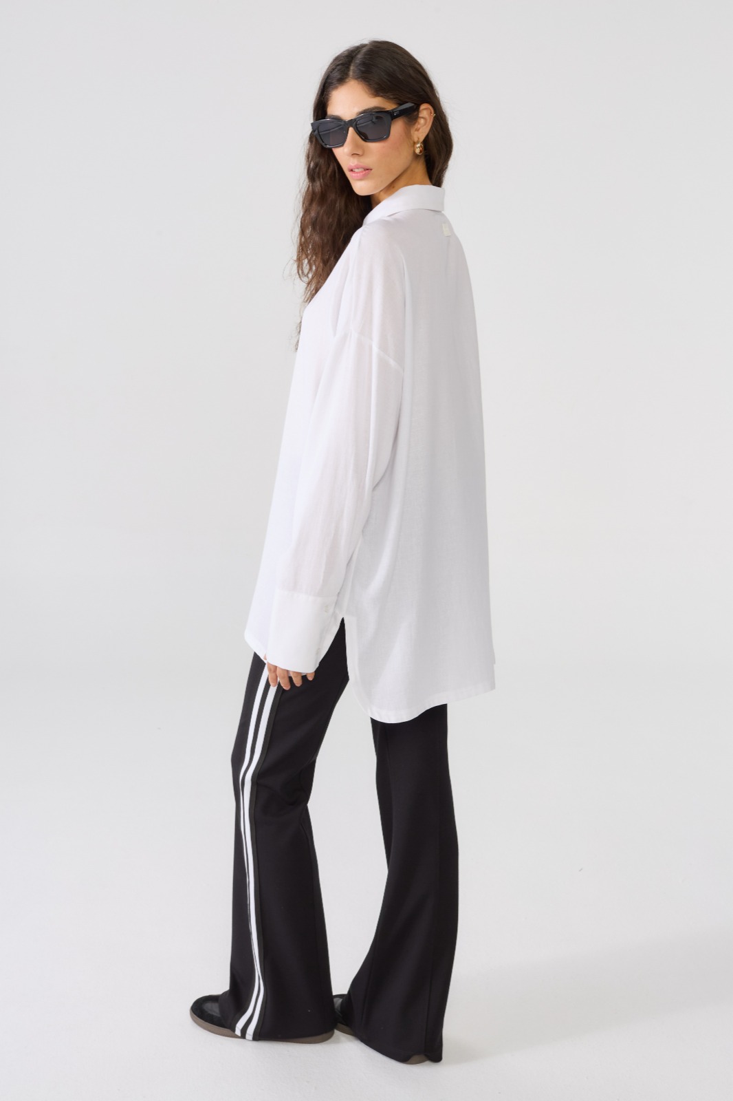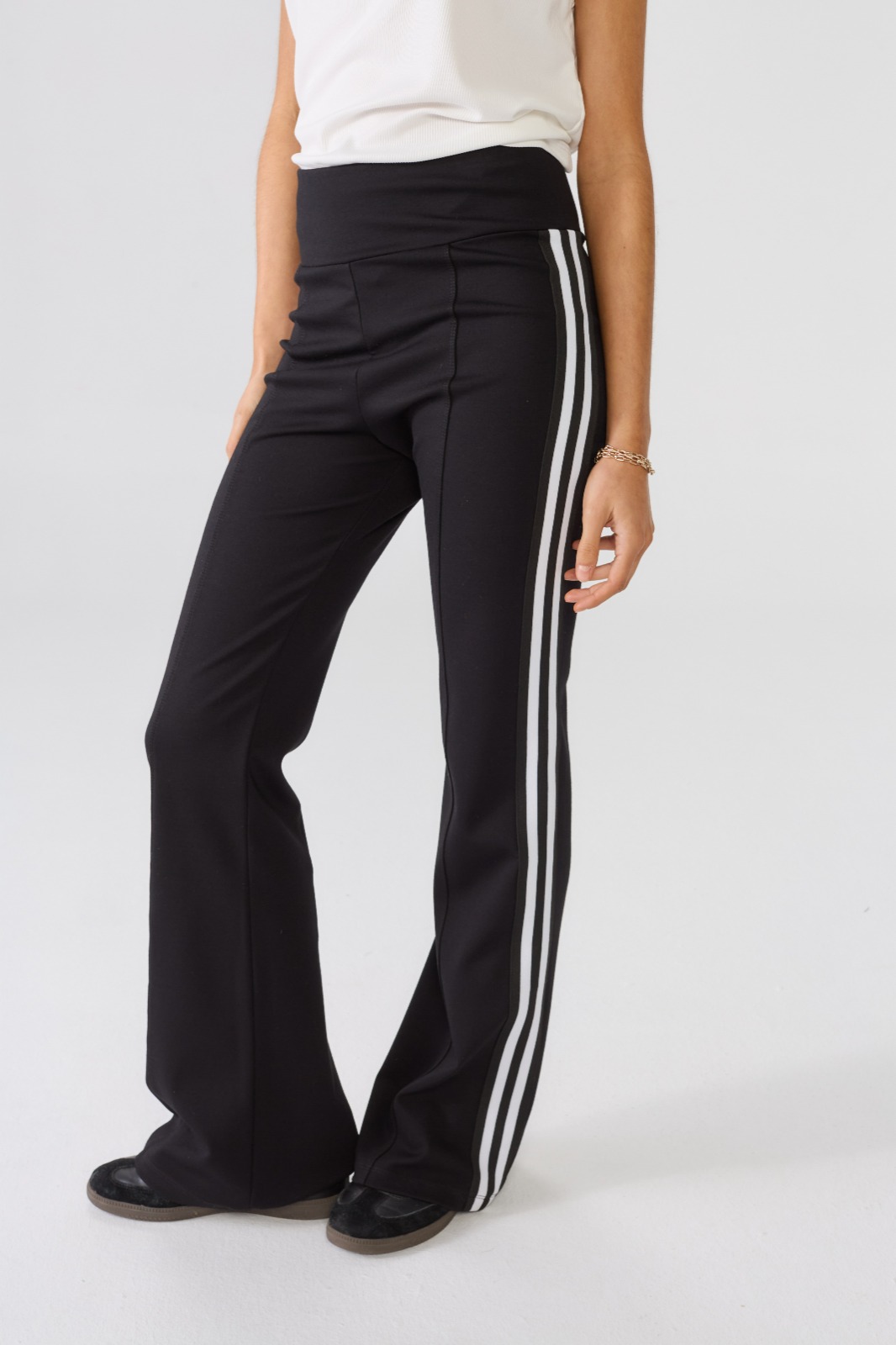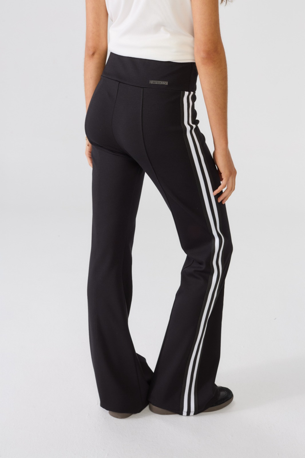 El Pantalón Manantial está confeccionado en Punto Roma Liviano, un tejido suave y flexible que acompaña cada movimiento. Su diseño incluye un delicado detalle de tira tejida en los laterales, aportando un toque distintivo y actual.