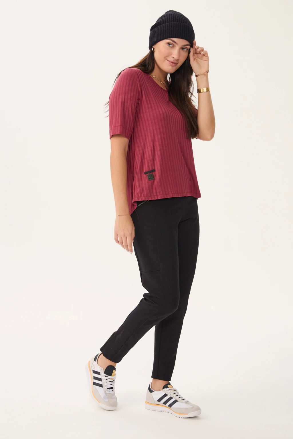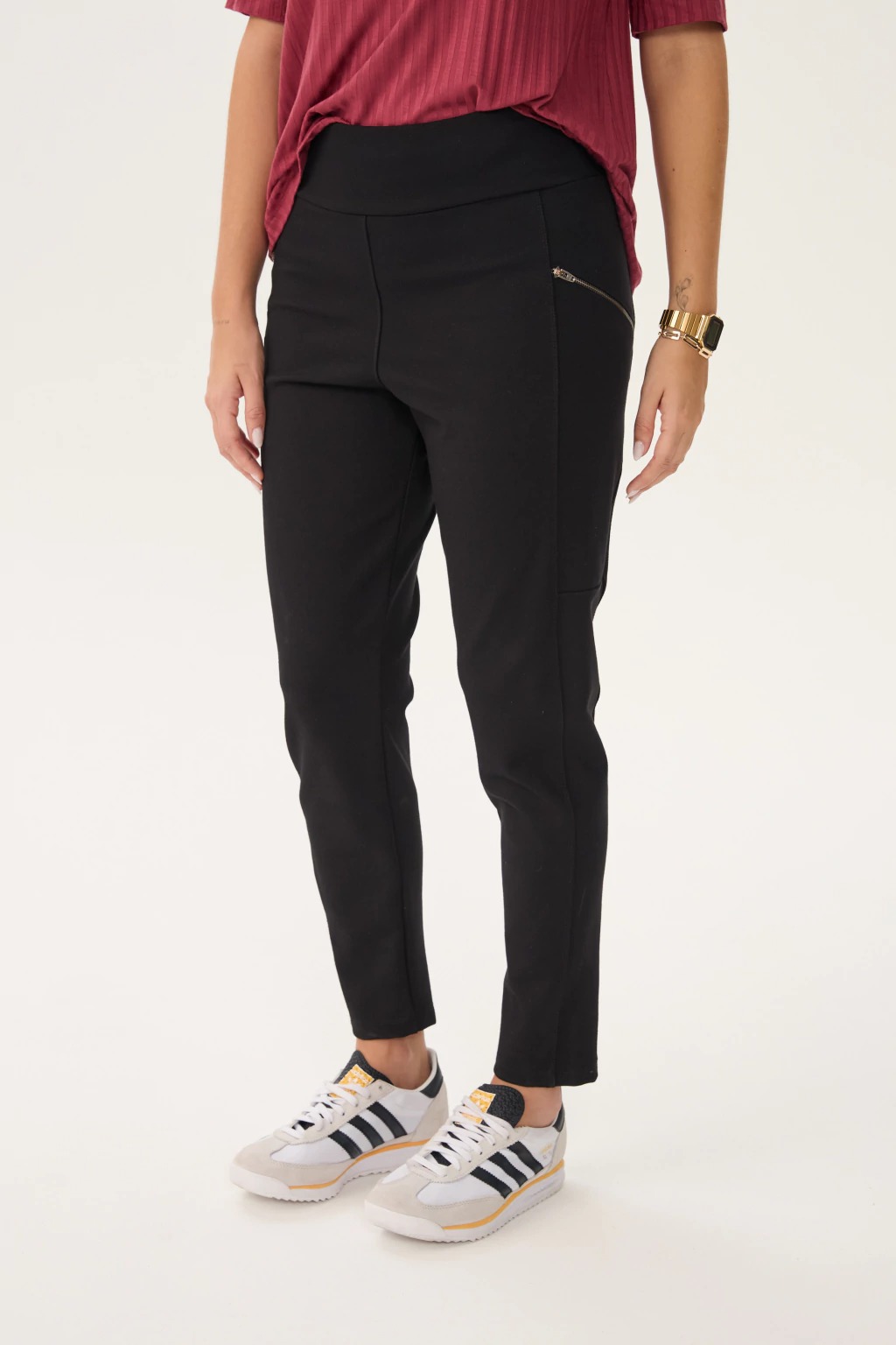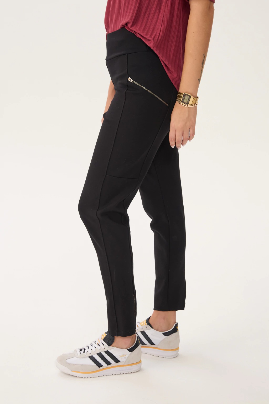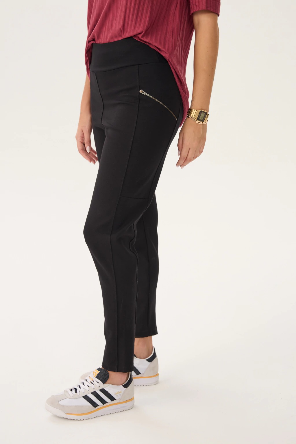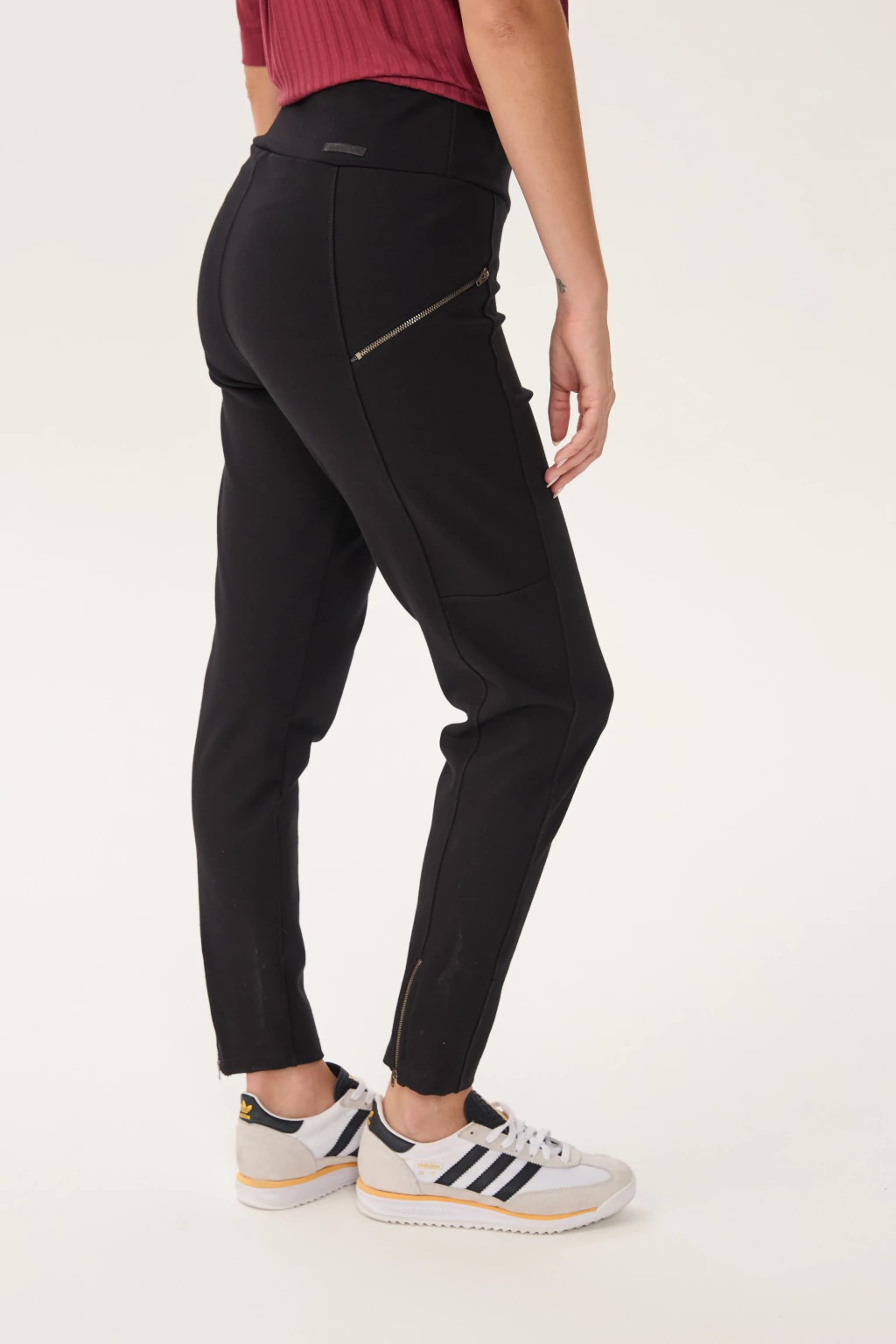 El Pantalón Victoria es la elección ideal para los días frescos. Confeccionado en punto roma, este pantalón no solo es abrigado, sino que también ofrece un toque distinguido gracias a los detalles de cierres en sus botamangas. Esta característica añade estilo.