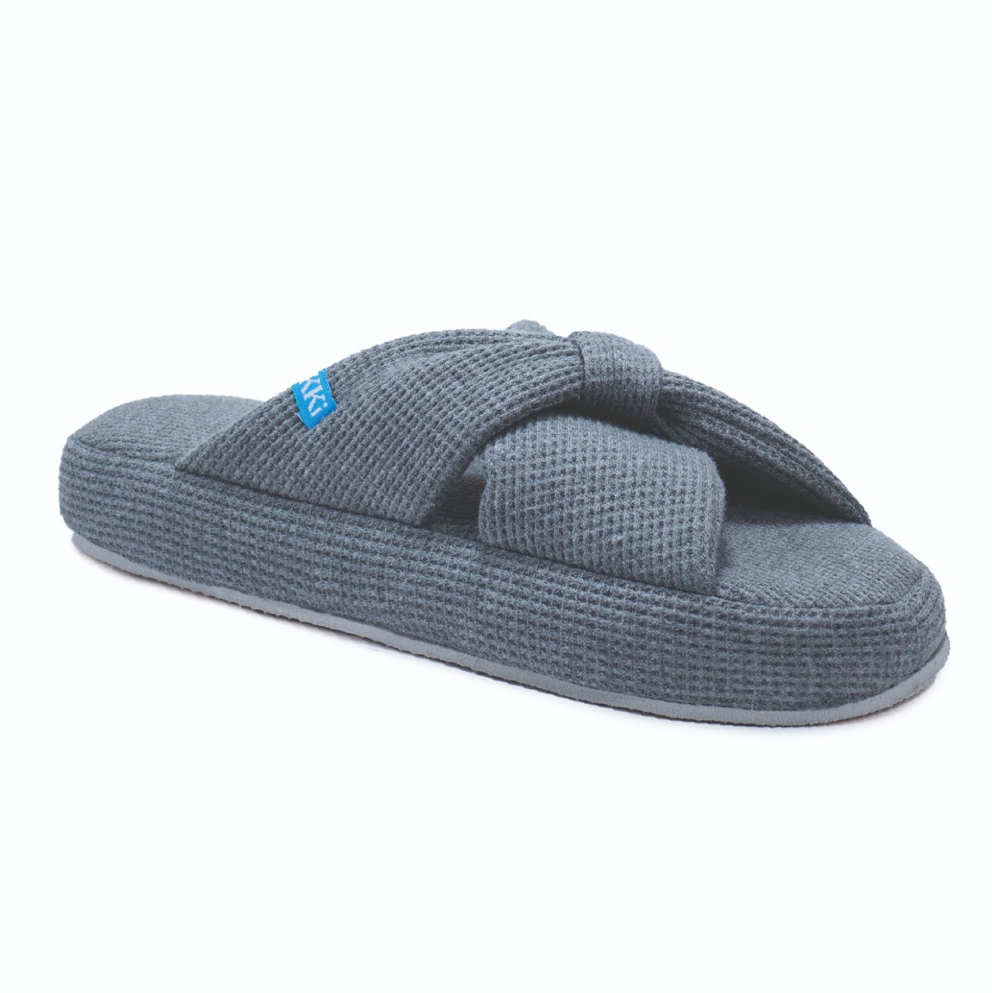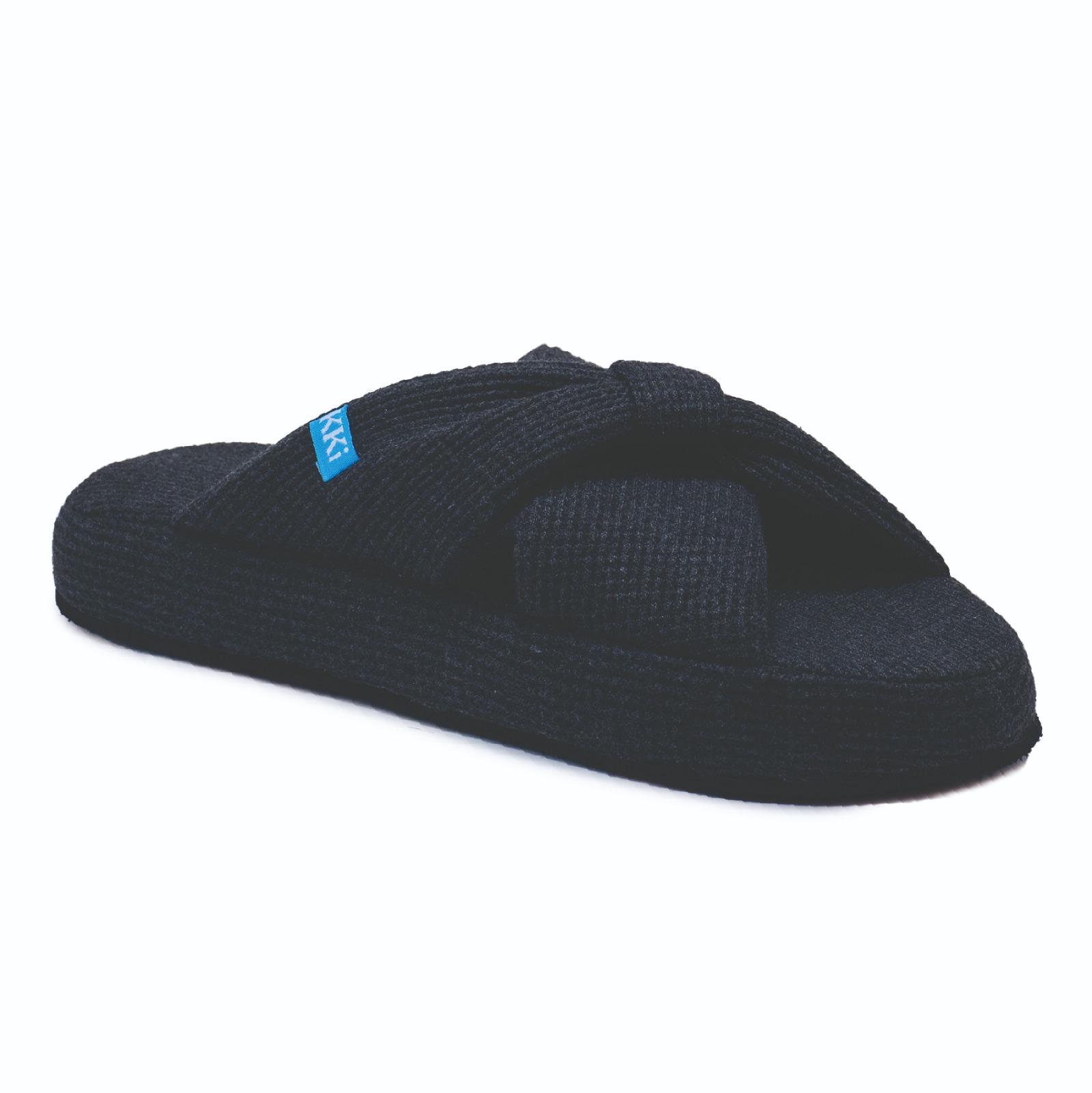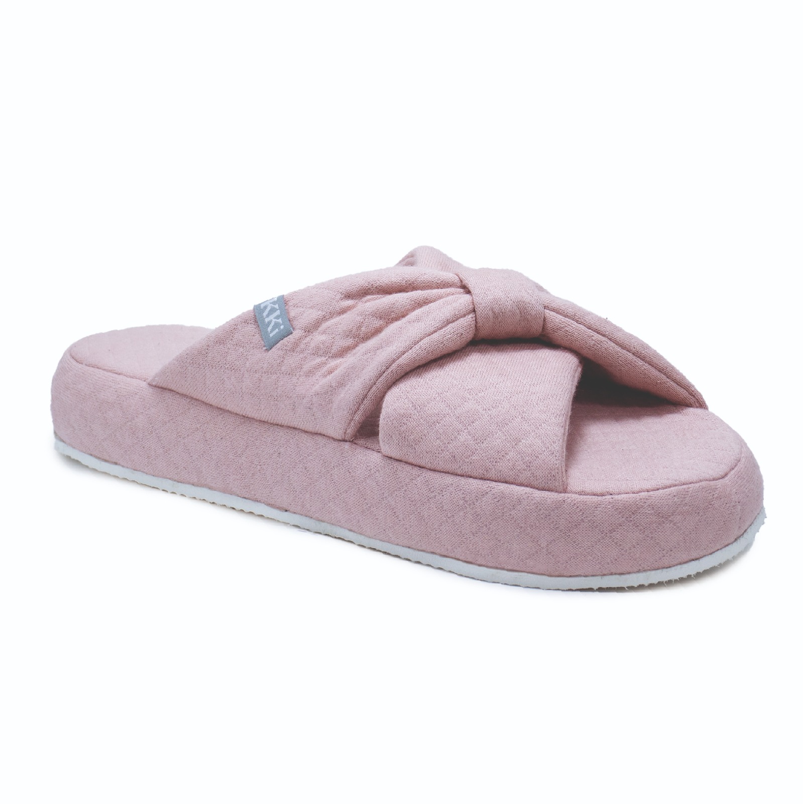 Pantuflón de mujer, capellada con titras cruzadas y tela texturada con detalle de pasador. Relleno firme de alta densidad y E.V.A. Plantilla acolchada.