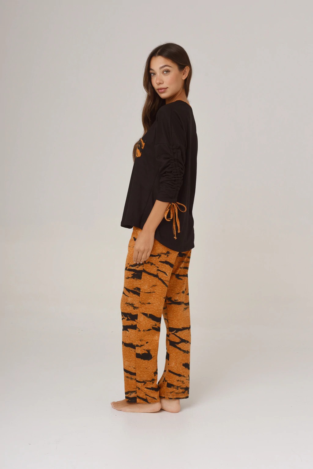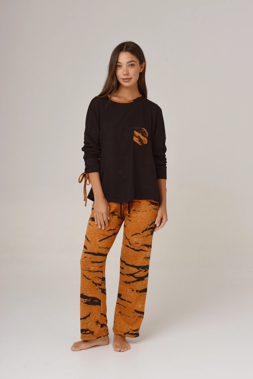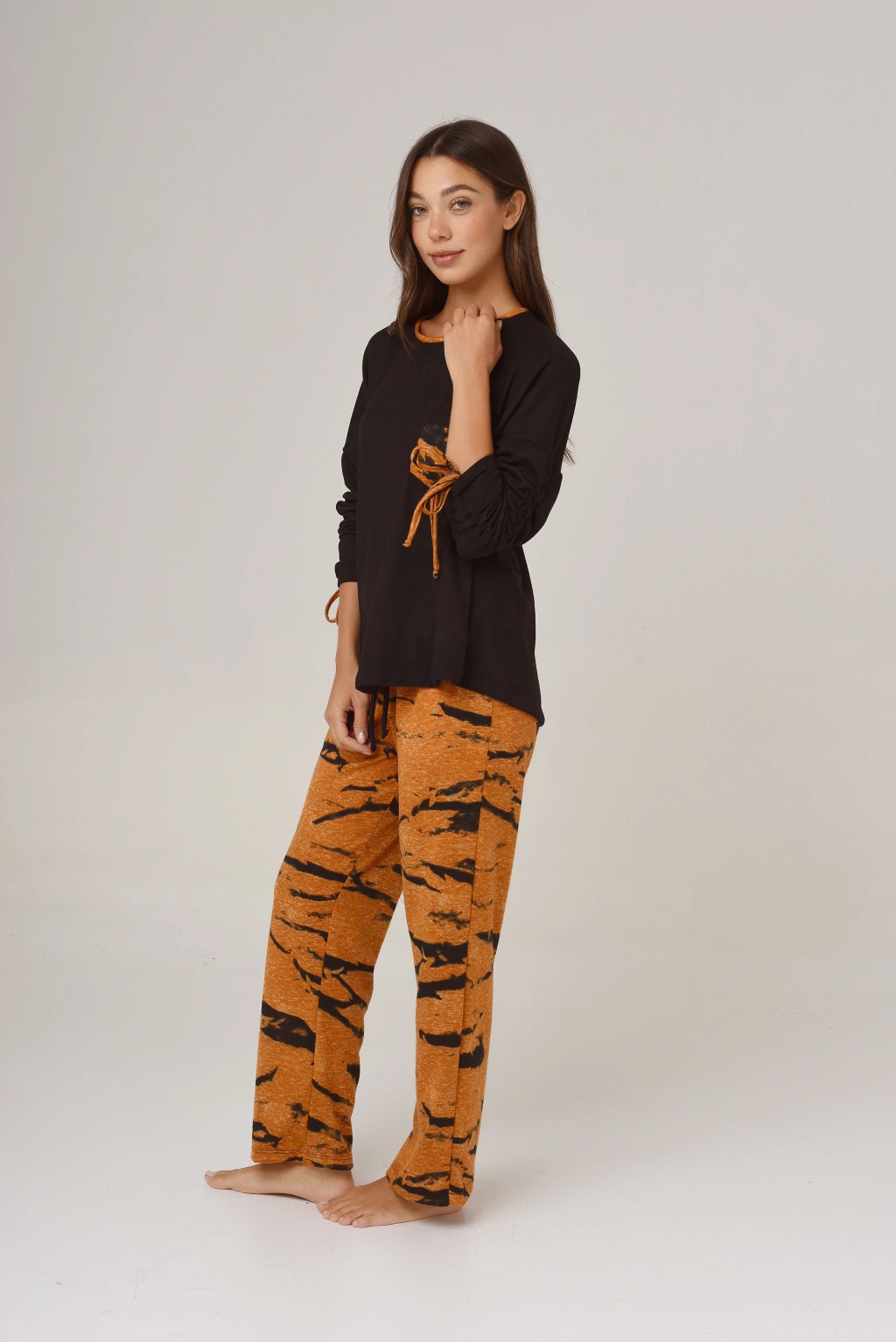 Pijama largo de jersey viscosa con lycra, con pantalón estampado