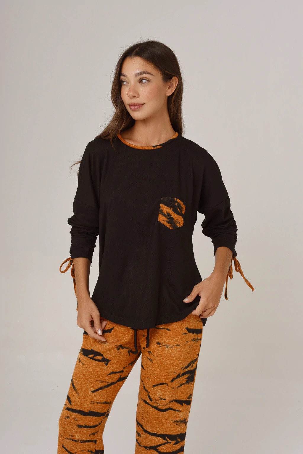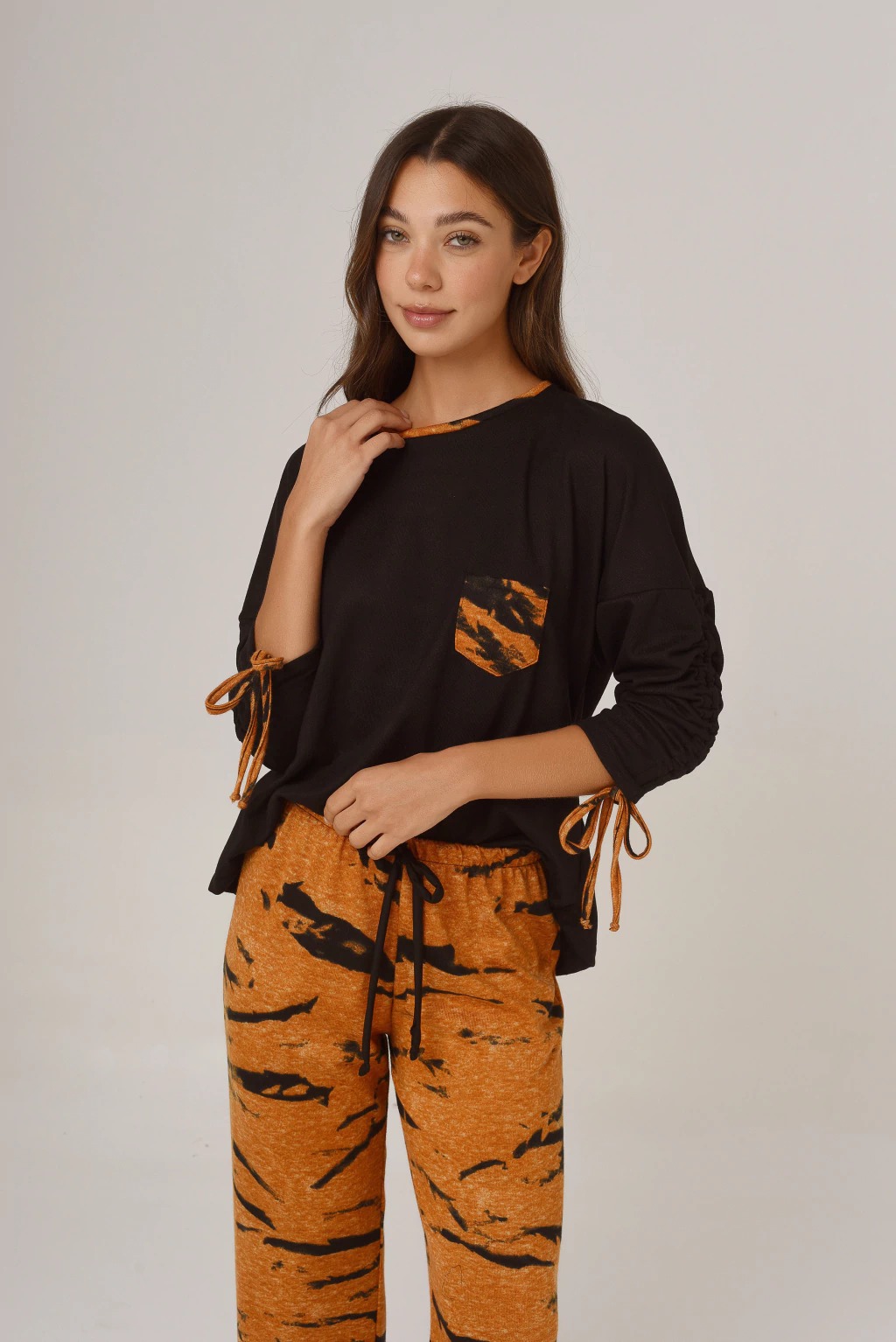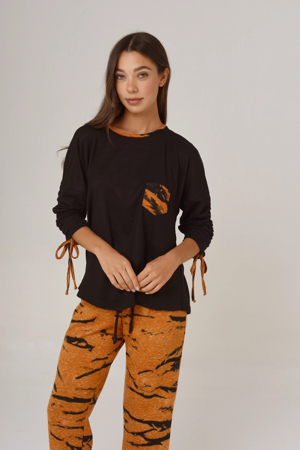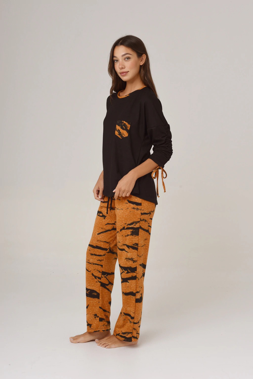 Pijama largo de jersey viscosa con lycra, con pantalón estampado