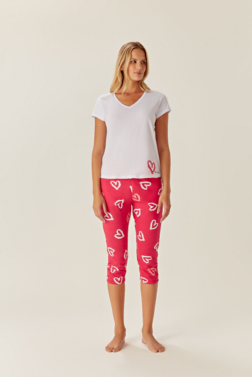 Pijama de remera manga corta y pantalon pescador, confeccionado en jersey de algodon con lycra