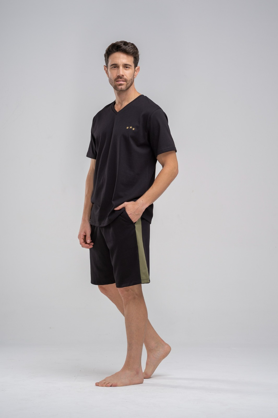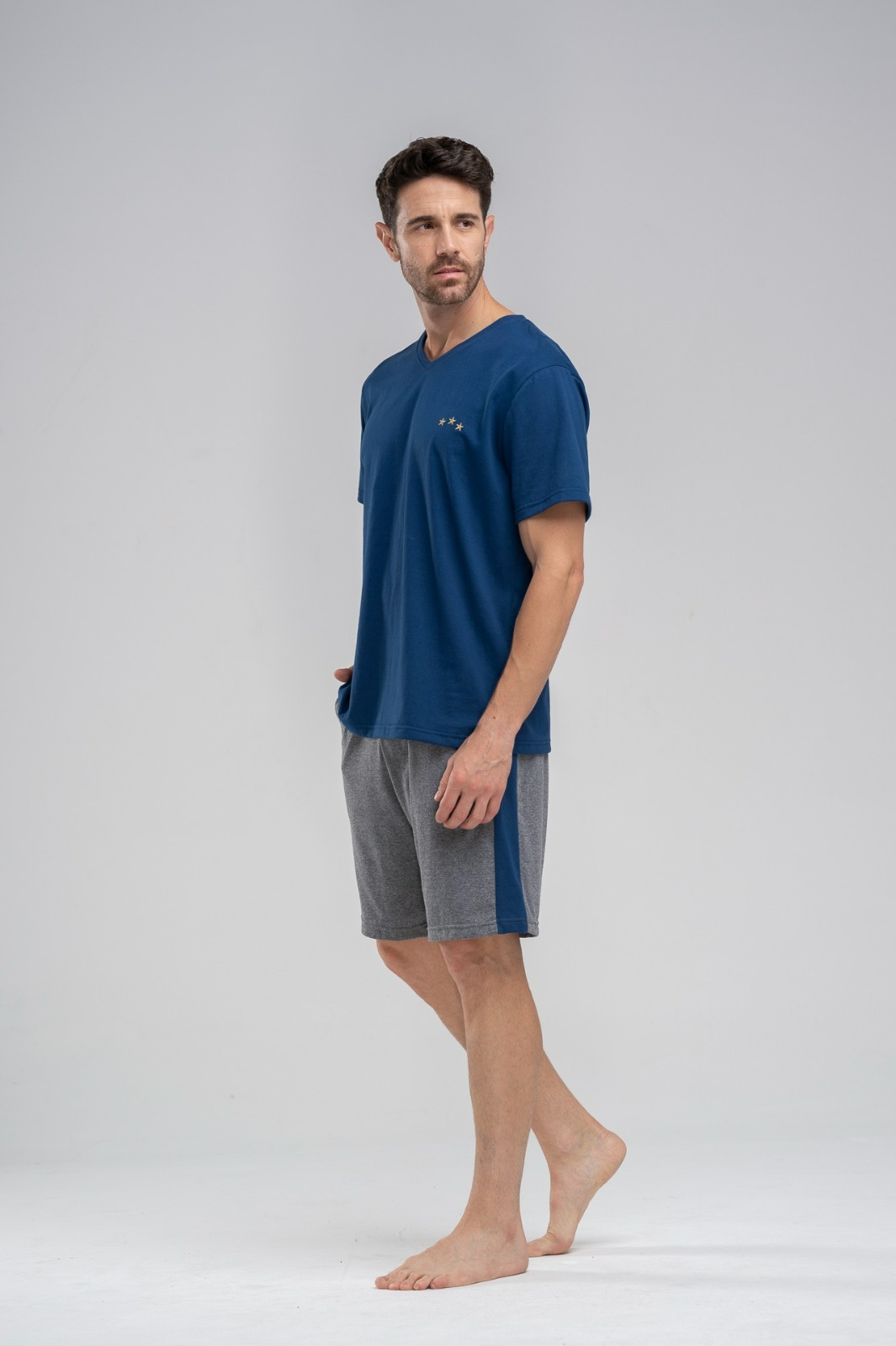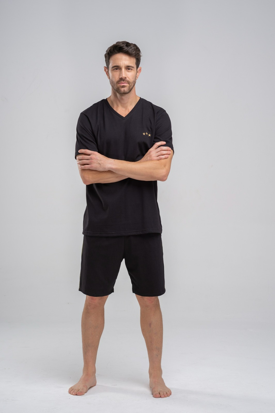 Pijama corto para hombre, de jersey de algodón con bordado de estrellas de copas