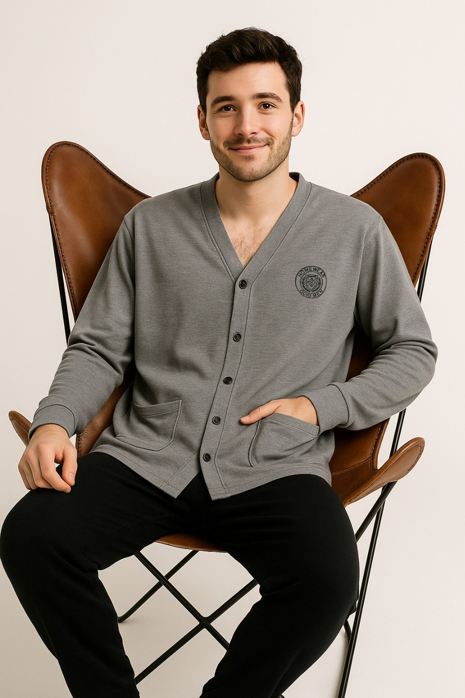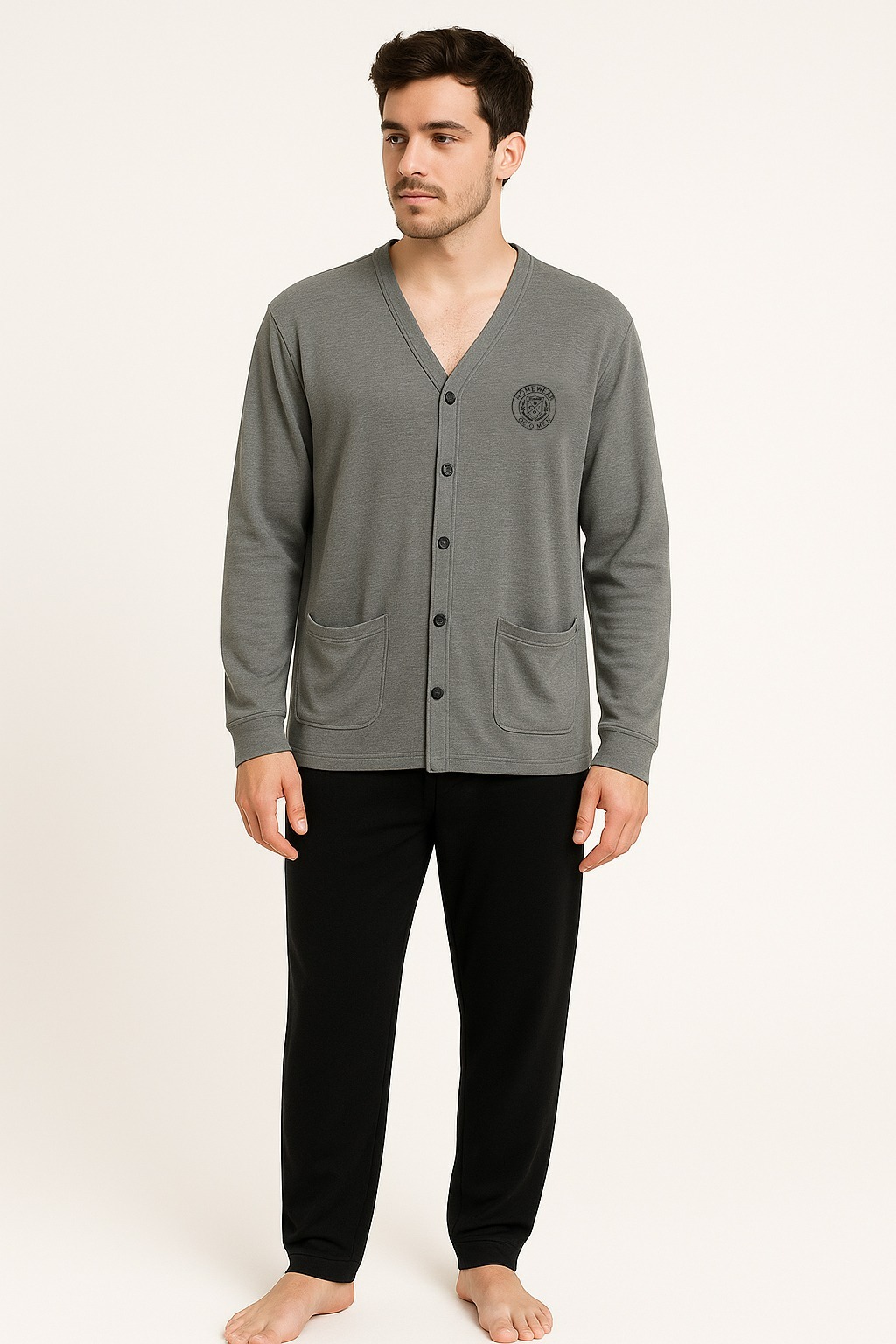 Pijama parta hombre, manga larga, de rústico viscosa. Camiseta prendida