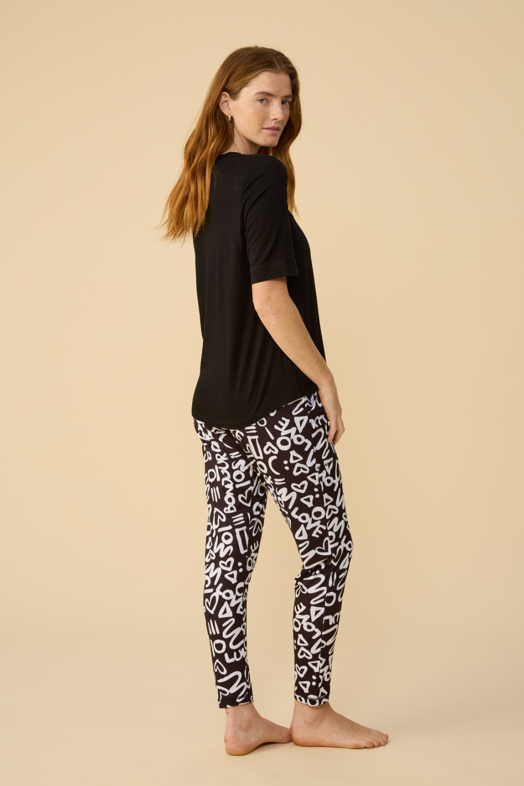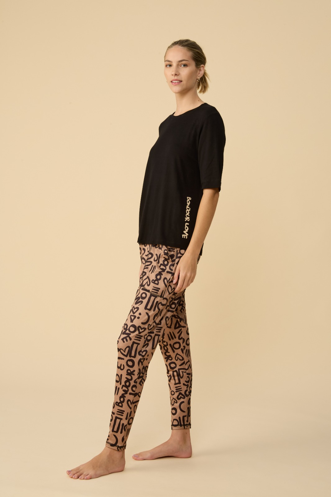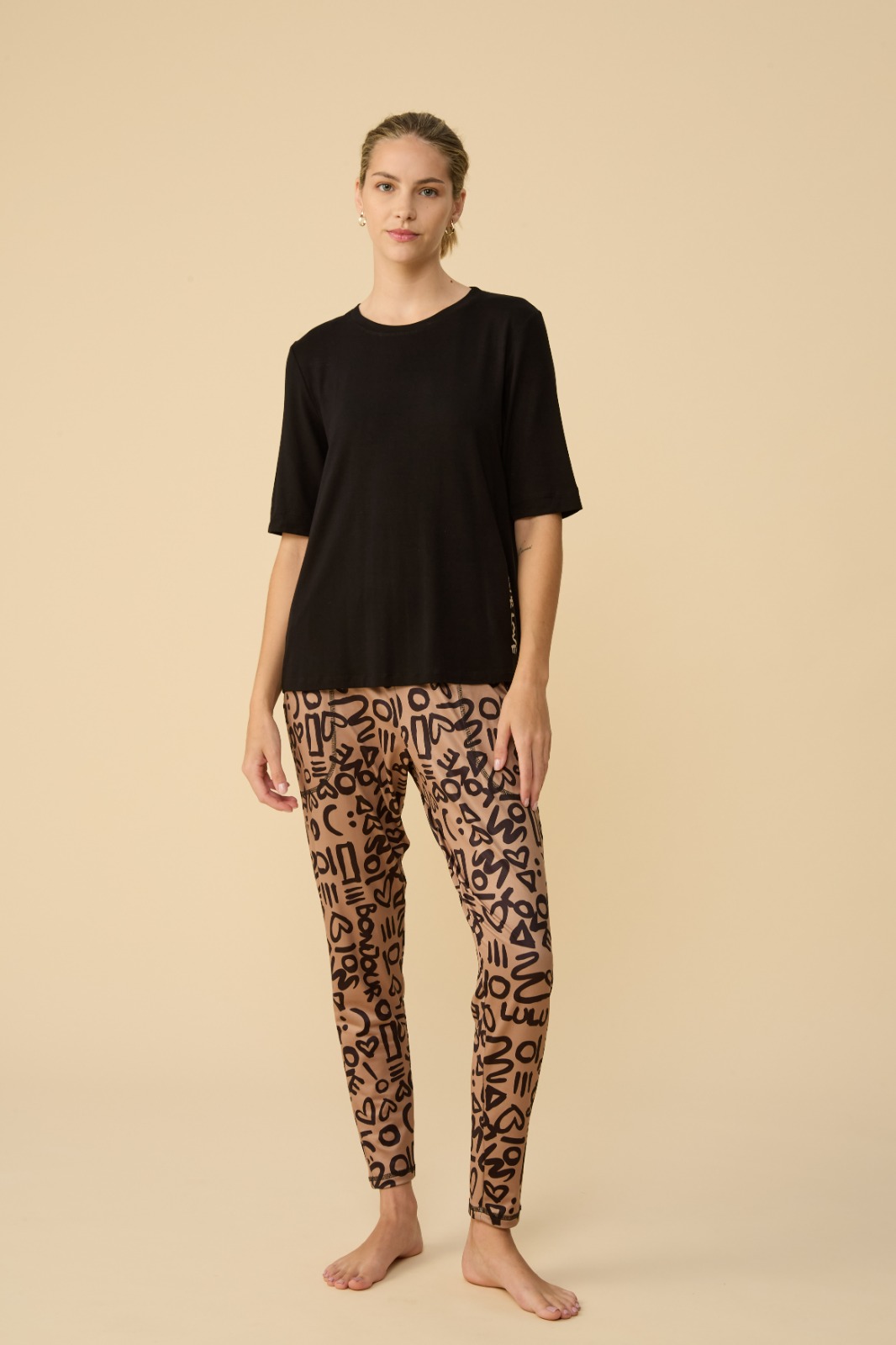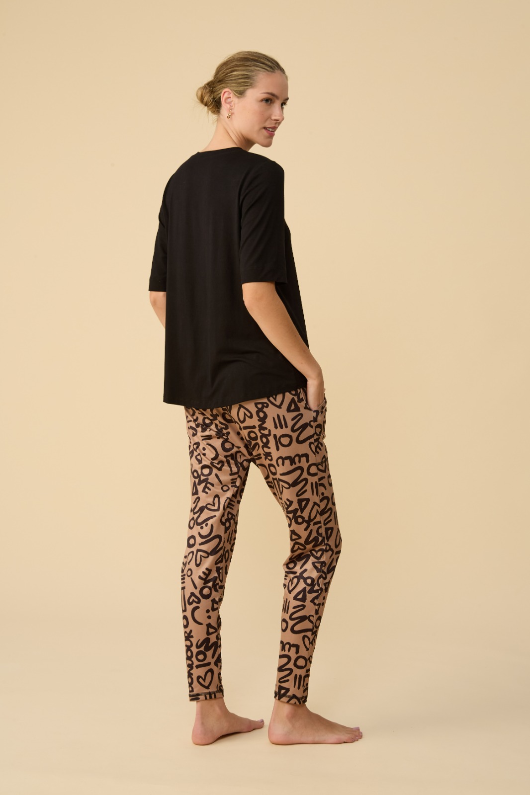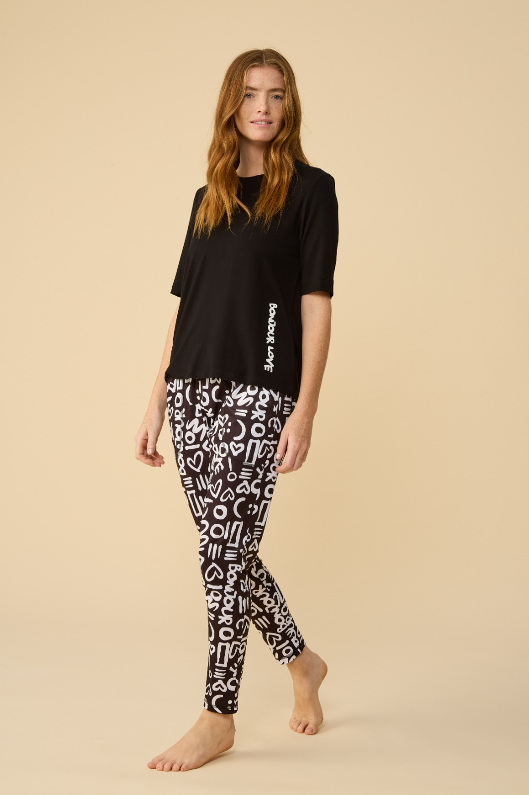 Pijama manga 3/4 con babucha estampada. Confeccionado en jersey de algodón con lycra