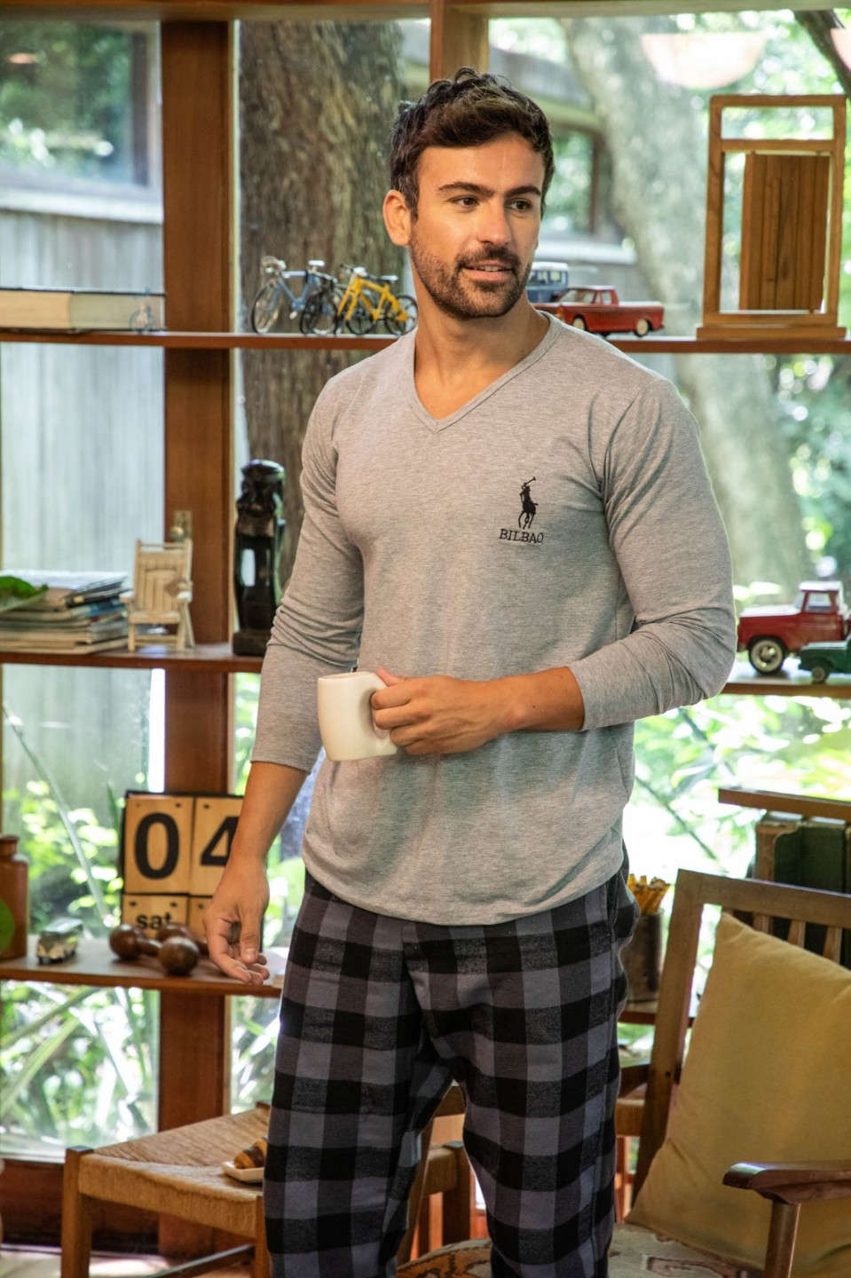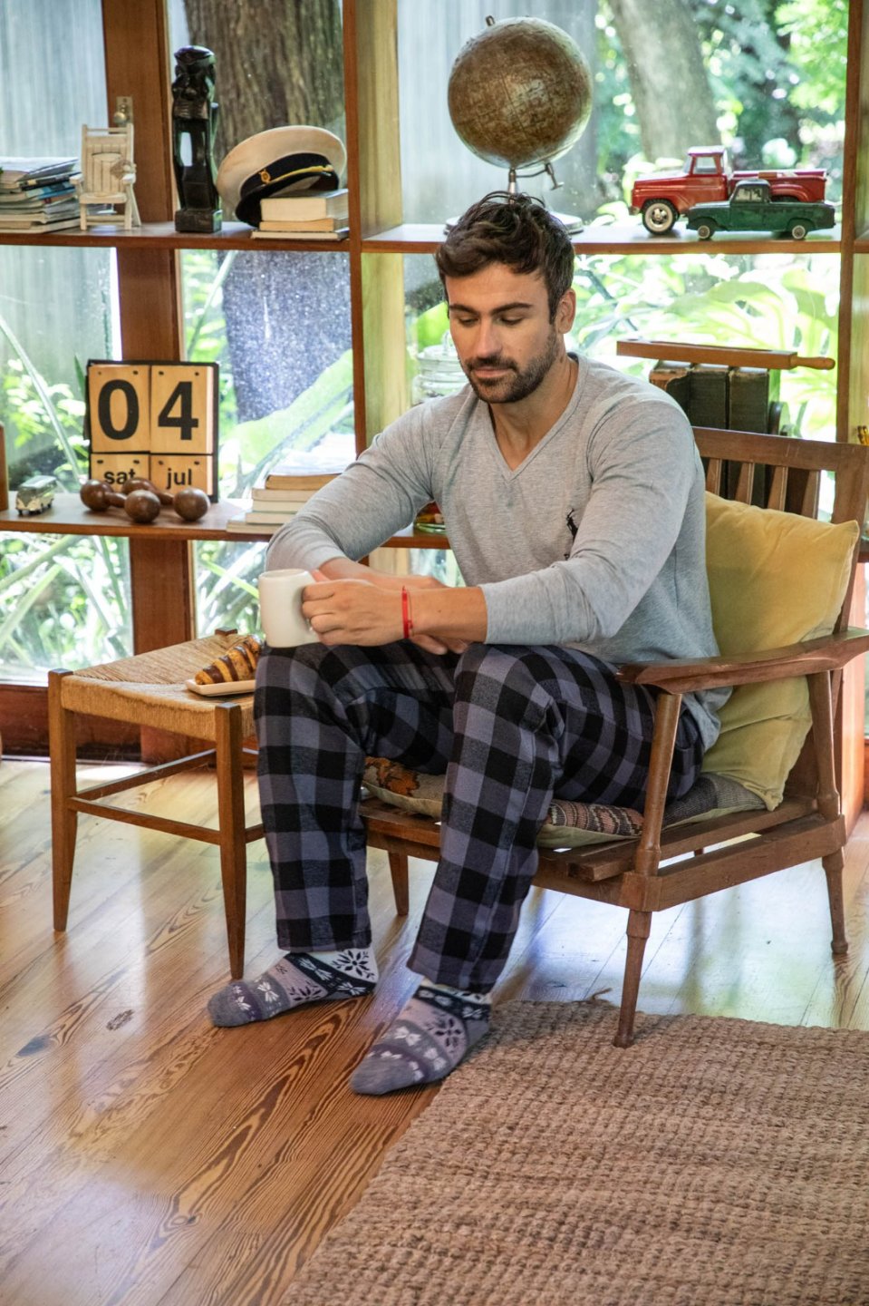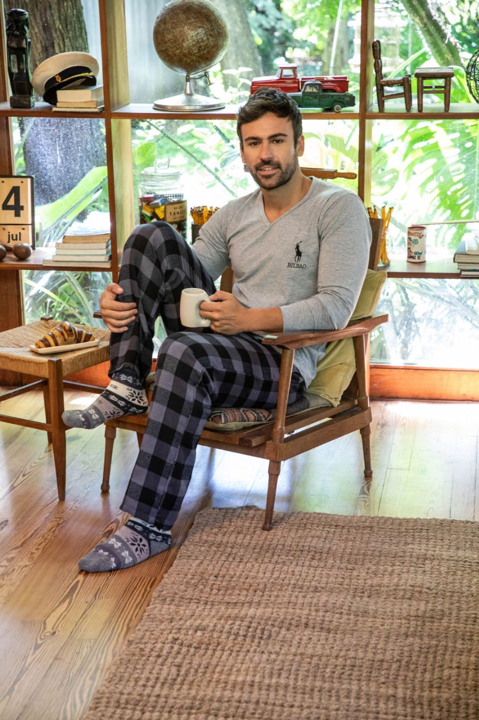 Pijama de hombre con pantalón de viyela en escocés.