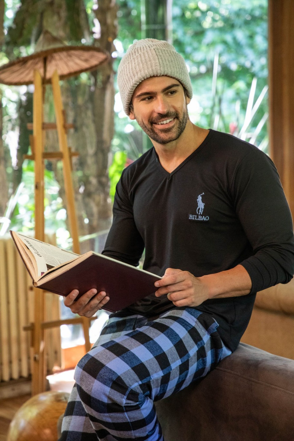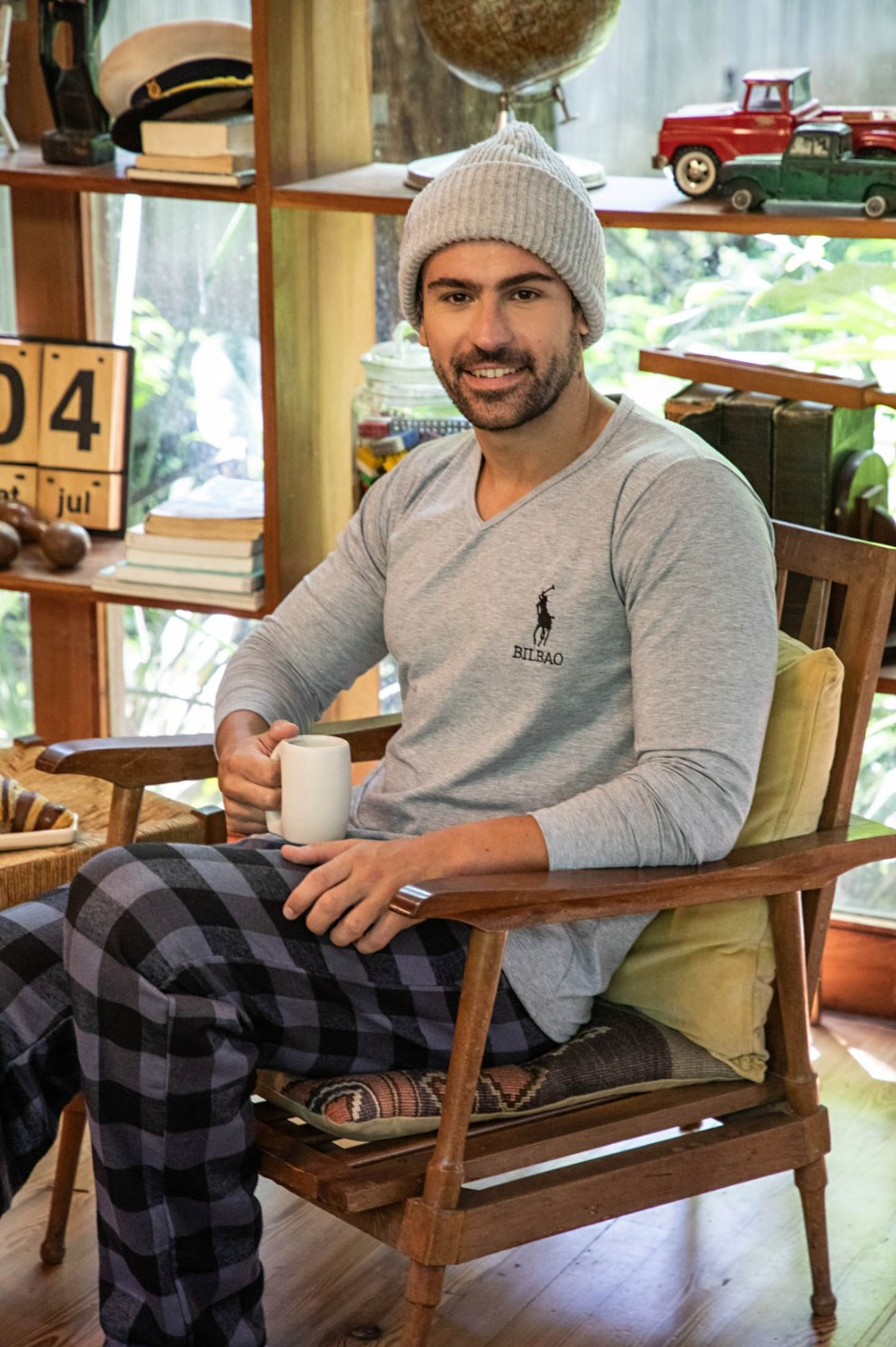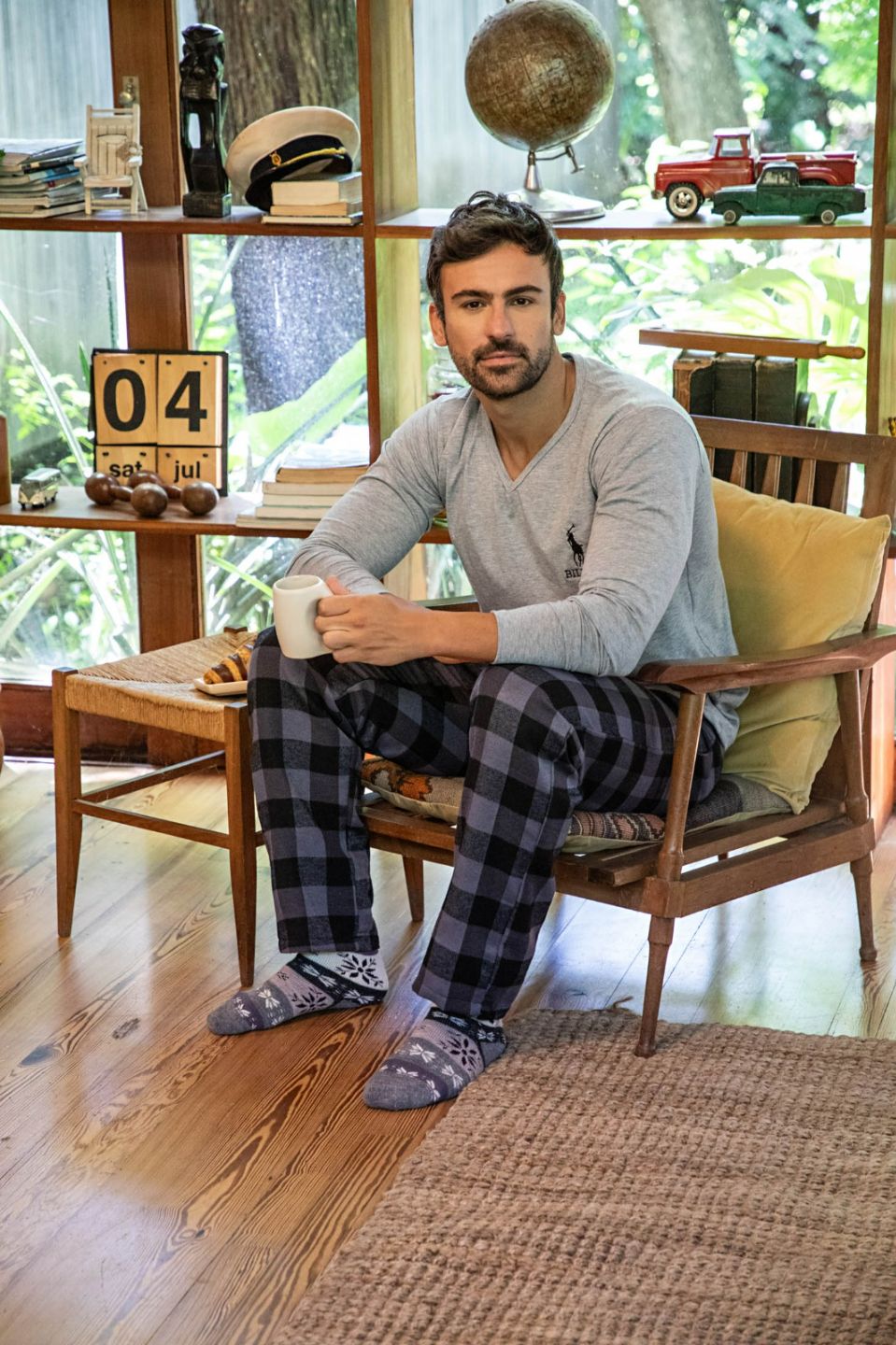 Pijama de hombre con pantalón de viyela en escocés.