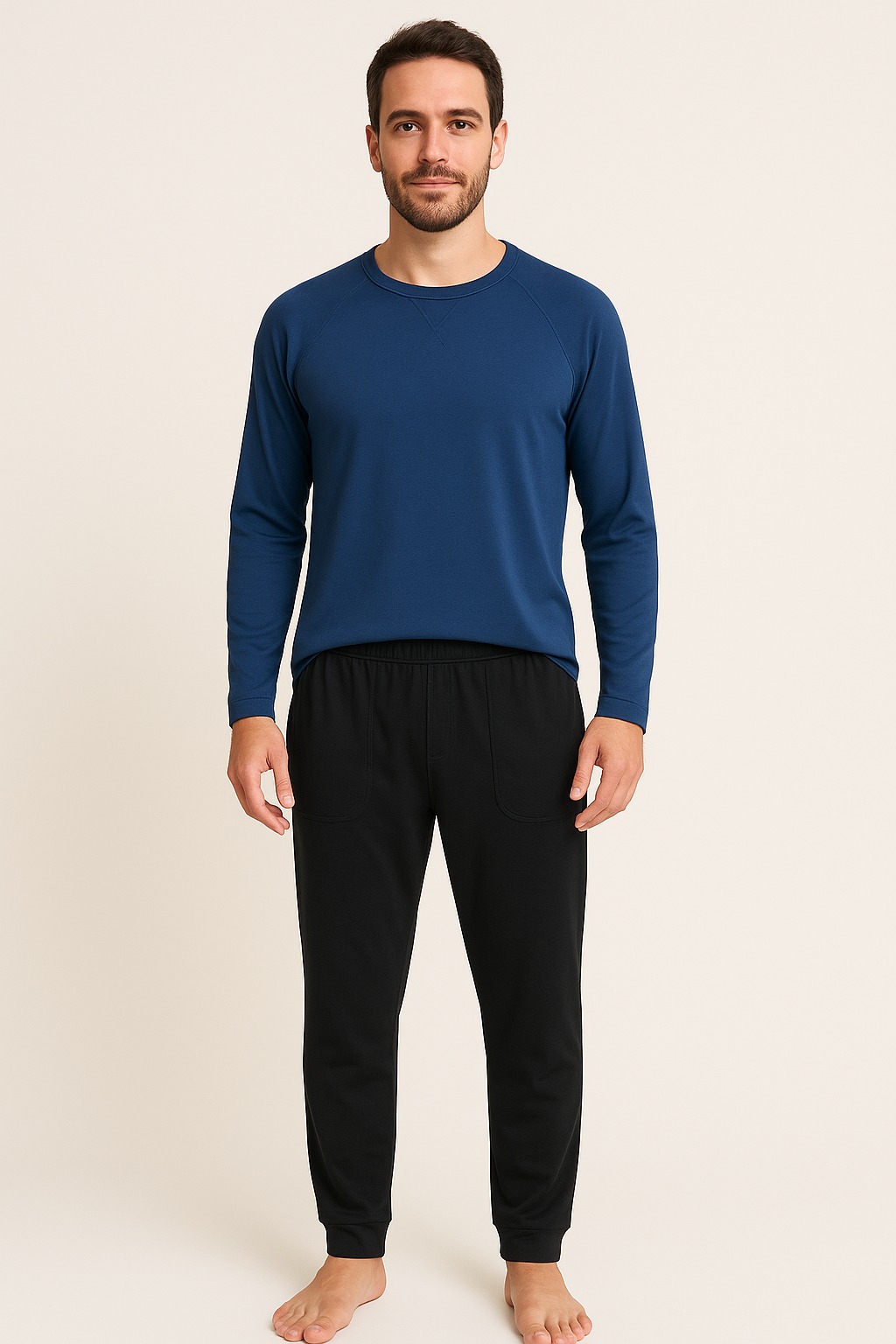 Pijama manga larga, para hombre. Confeccionado en jersey y rústico viscosa