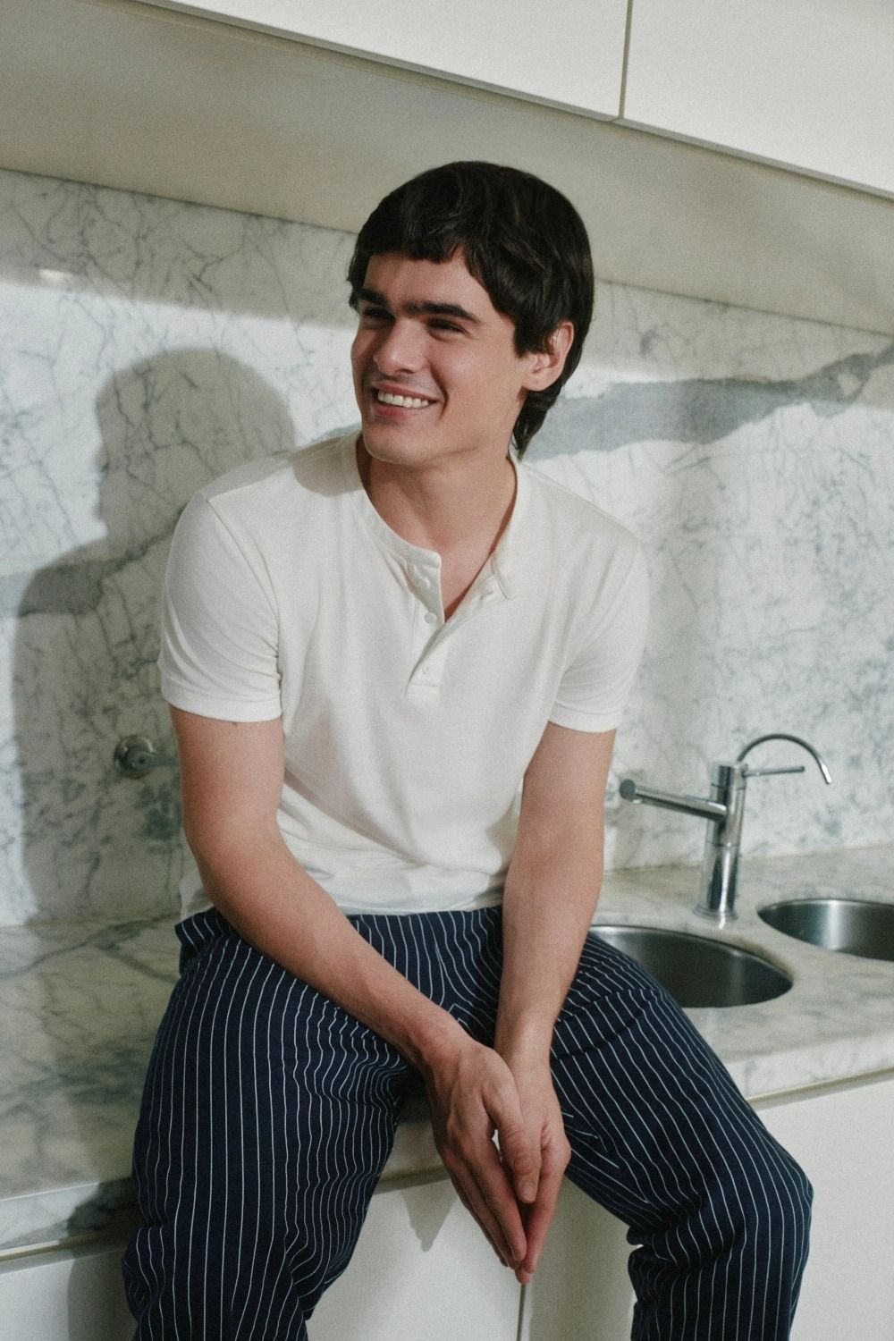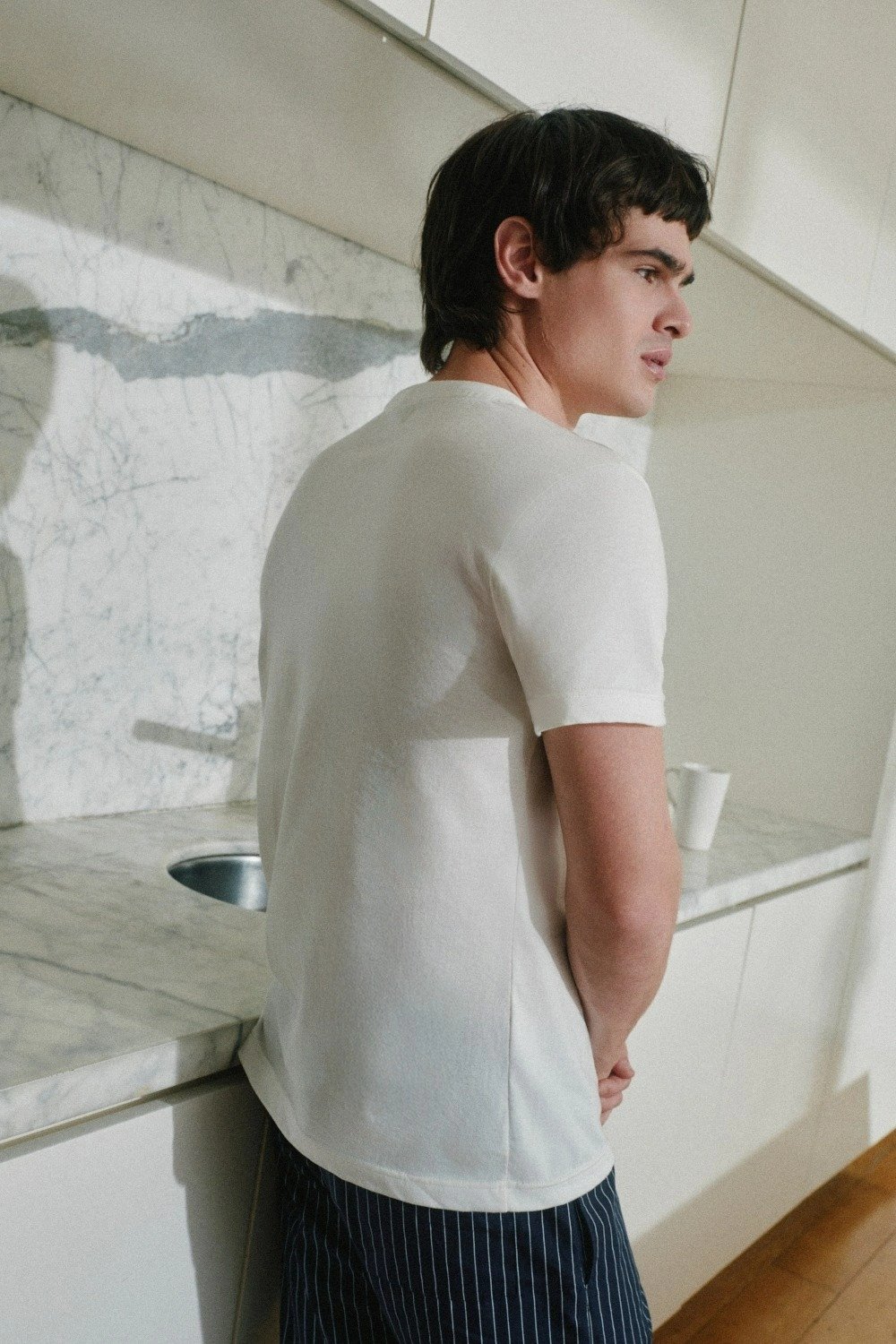 Pijama de calce relajado. La remera de escote redondo y mangas cortas es de jersey de algodón y el pantalón de poplín con cintura elastizada y bolsillo trasero. Es una propuesta comoda y fresca para uso diario.