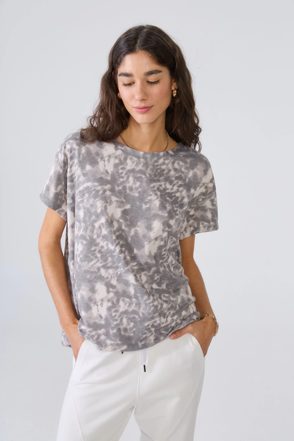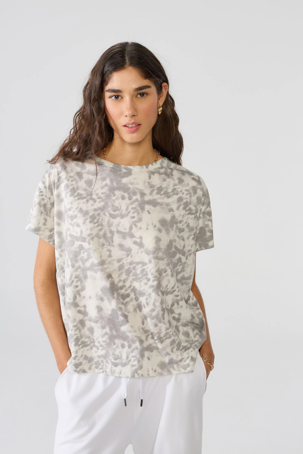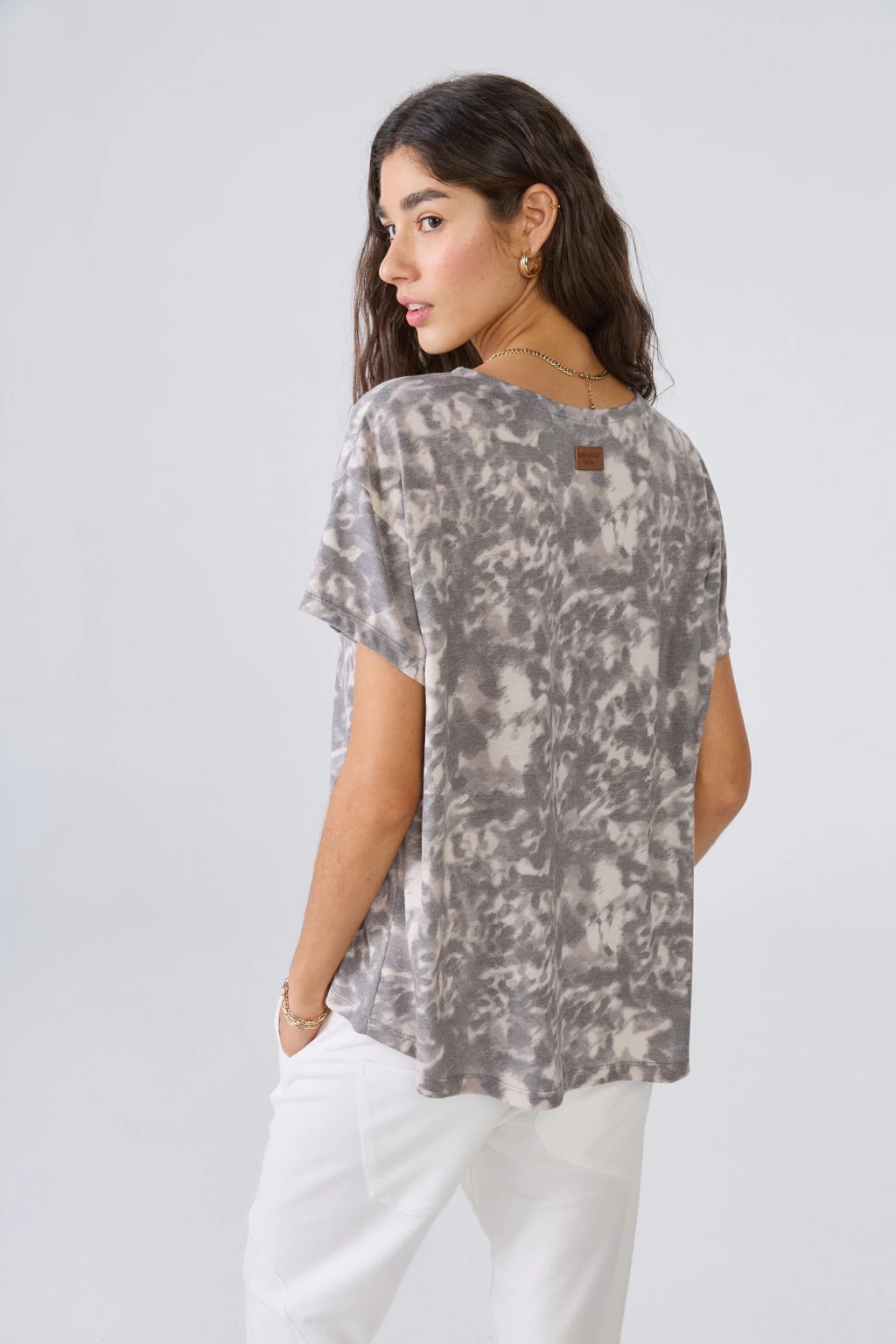 La Remera Arrecife, elegancia y confort en una prenda versátil. Confeccionada en jersery viscosa estampado, su textura suave y liviana se adapta perfectamente, brindando una agradable sensación de frescura durante todo el día.