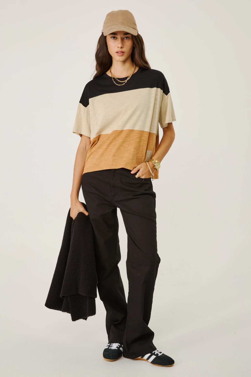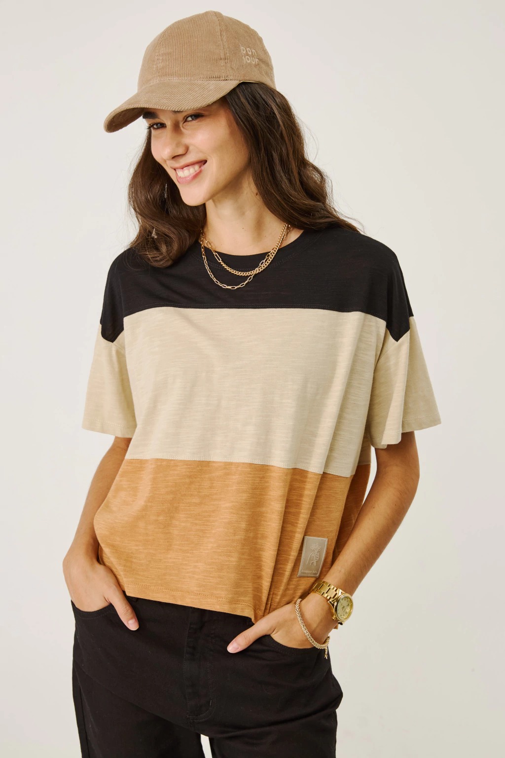 La Remera Isabella es tu nueva favorita para el día a día. Confeccionada en suave jersey flamé, esta remera manga corta destaca por su diseño rayado, aportando un aire fresco y moderno. Su calce cómodo y liviano la convierte en la opción ideal para combinar con jeans o shorts durante la temporada primavera-verano. ¡Sumá estilo y comodidad a tu guardarropa!