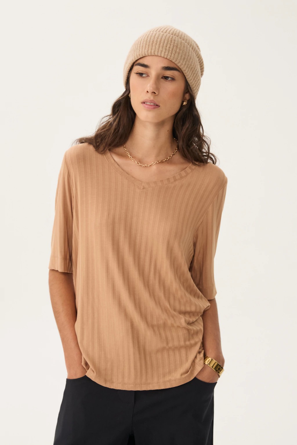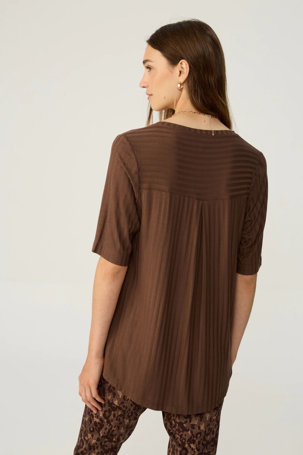 La Remera Lisa es la pieza esencial que no puede faltar en tu guardarropa. Confeccionada en morley viscosa con lycra, ofrece un ajuste perfecto y una suavidad incomparable. Su detalle único de tablón en la espalda aporta un toque distintivo que eleva tu estilo diario.