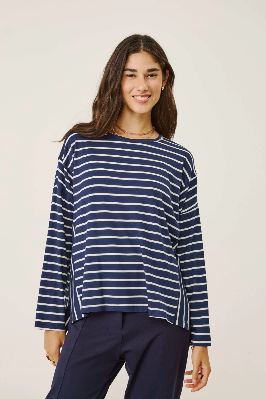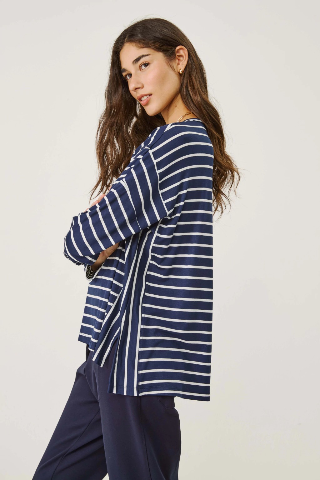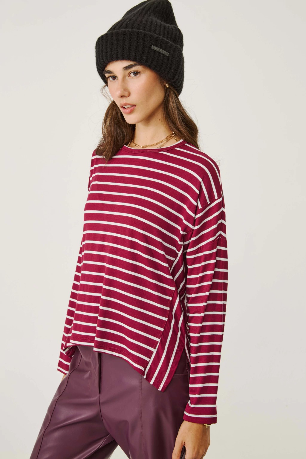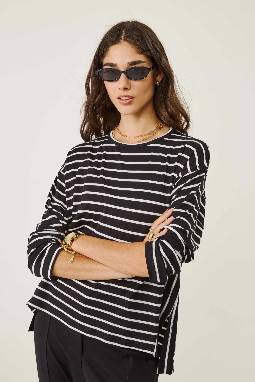 La Remera Manga Larga Angelina es sinónimo de elegancia y comodidad. Confeccionada en jersey con lycra rayada, esta prenda se adapta suavemente a tu silueta, brindando libertad de movimiento y un tacto delicado. Sus tajos laterales aportan un detalle moderno y sofisticado, ideal para lucir tanto en ocasiones casuales como en looks urbanos distinguidos. Descubrí el equilibrio perfecto entre estilo y confort.