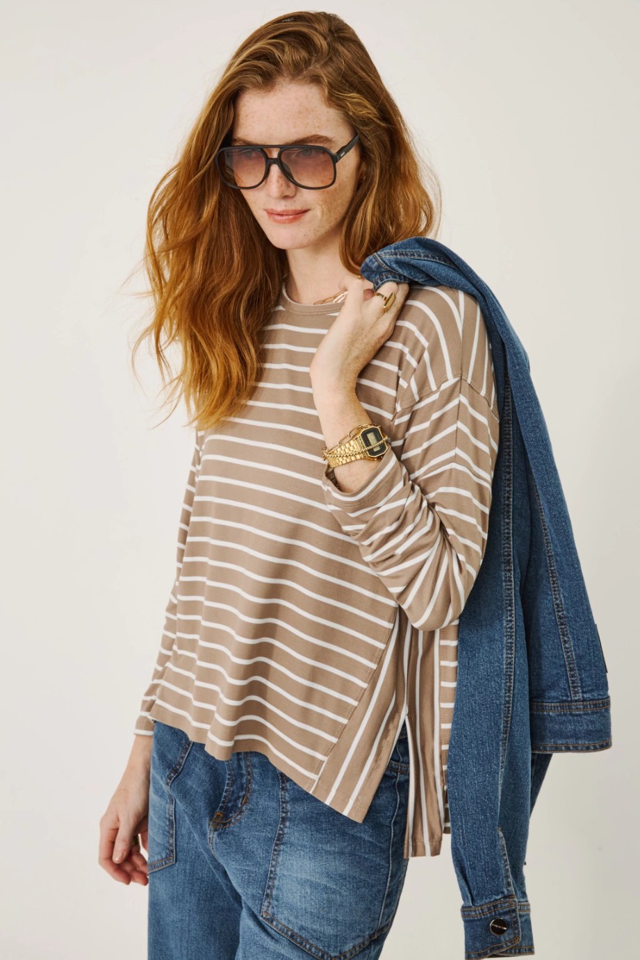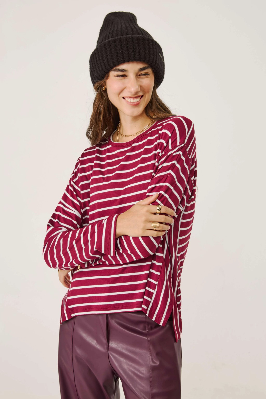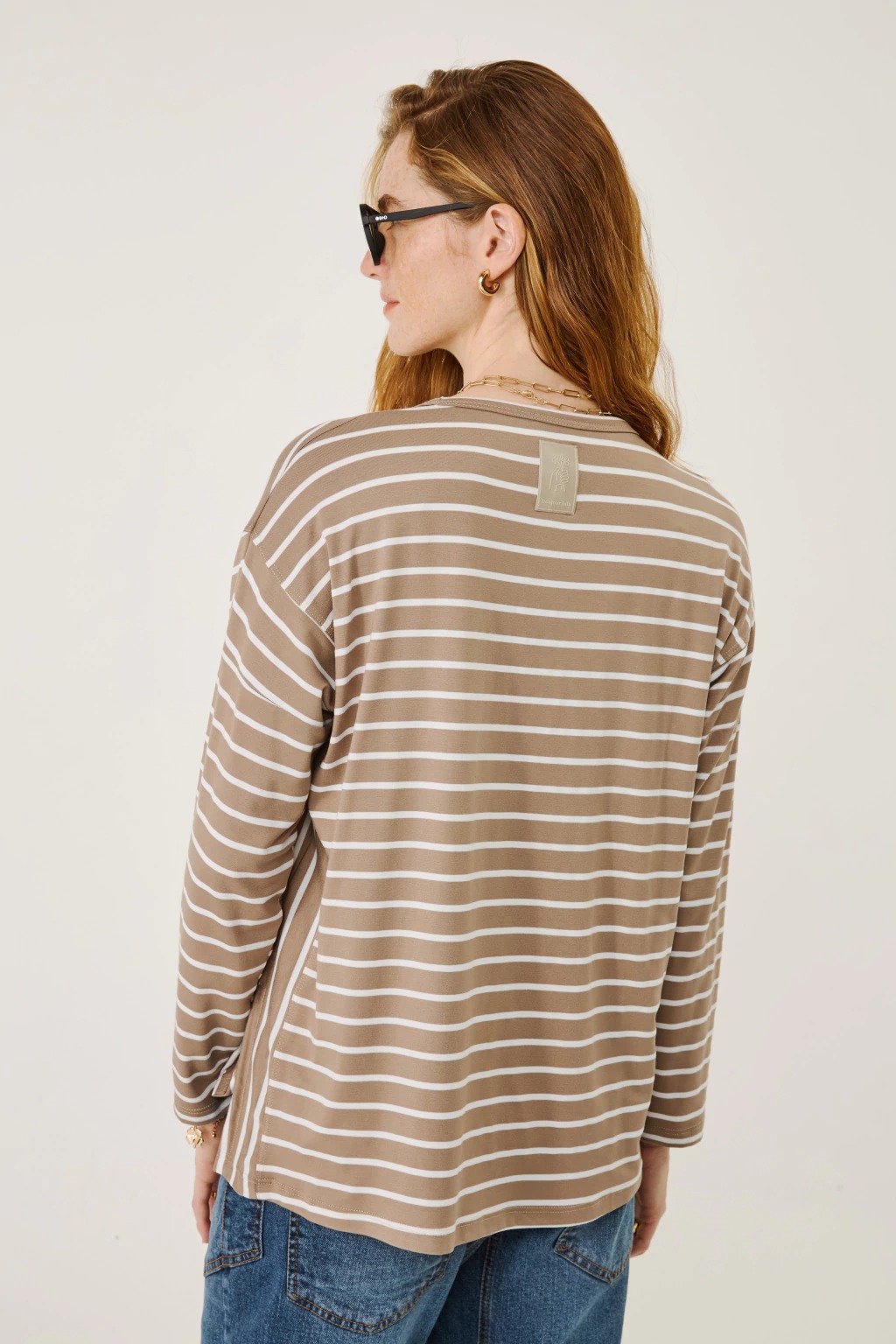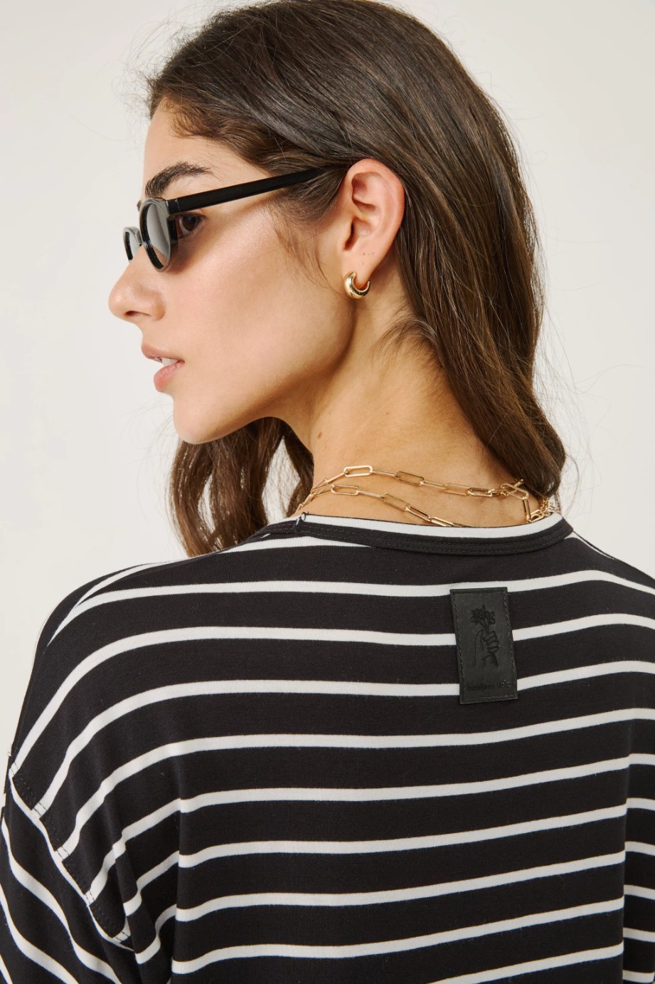 La Remera Manga Larga Angelina es sinónimo de elegancia y comodidad. Confeccionada en jersey con lycra rayada, esta prenda se adapta suavemente a tu silueta, brindando libertad de movimiento y un tacto delicado. Sus tajos laterales aportan un detalle moderno y sofisticado, ideal para lucir tanto en ocasiones casuales como en looks urbanos distinguidos. Descubrí el equilibrio perfecto entre estilo y confort.