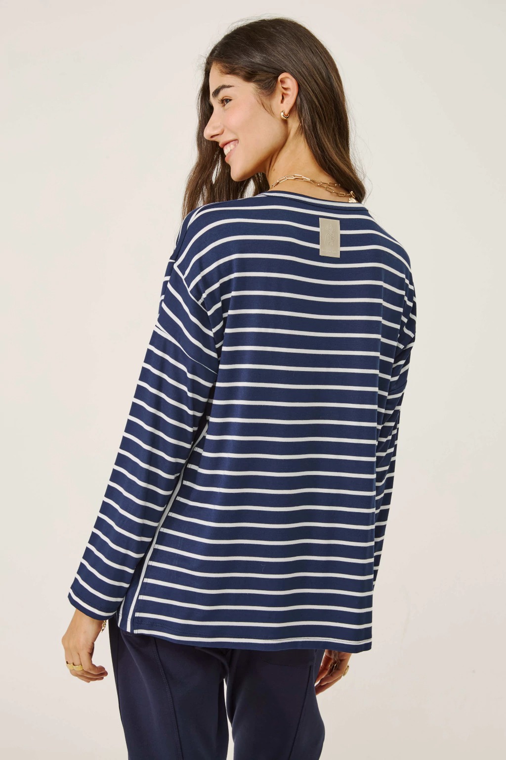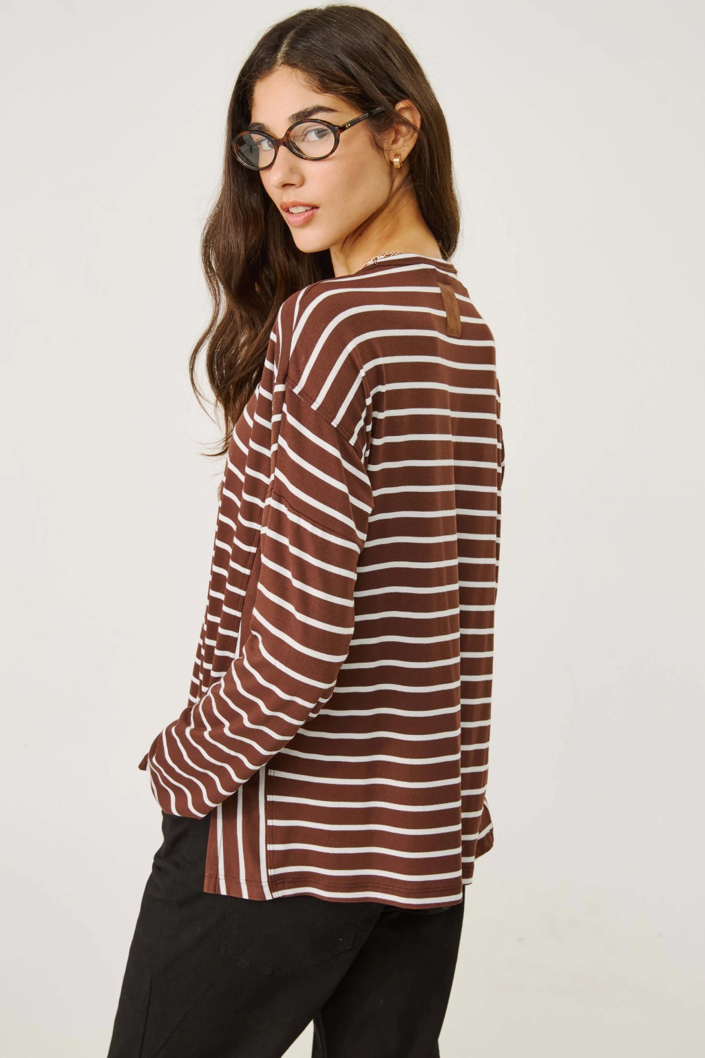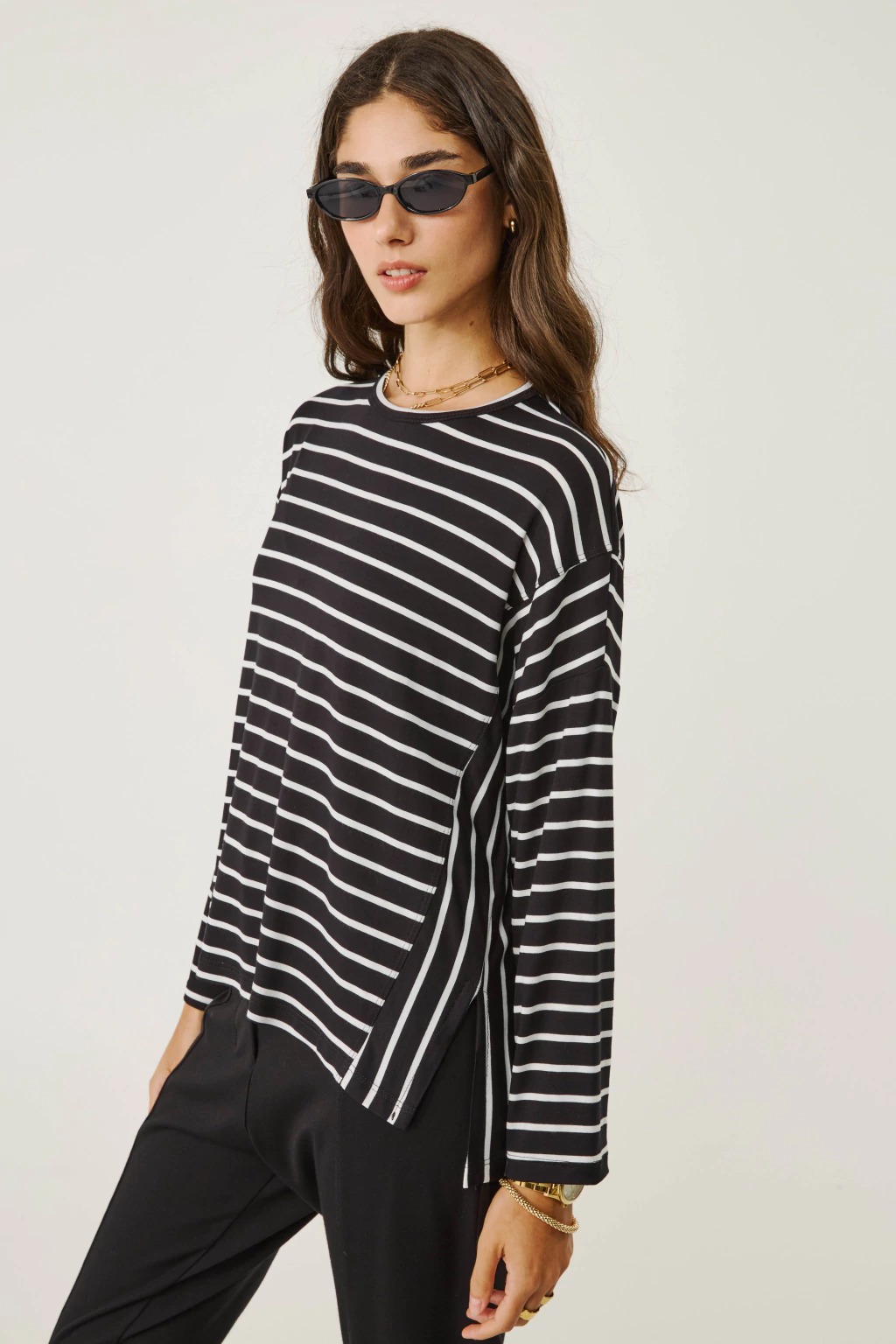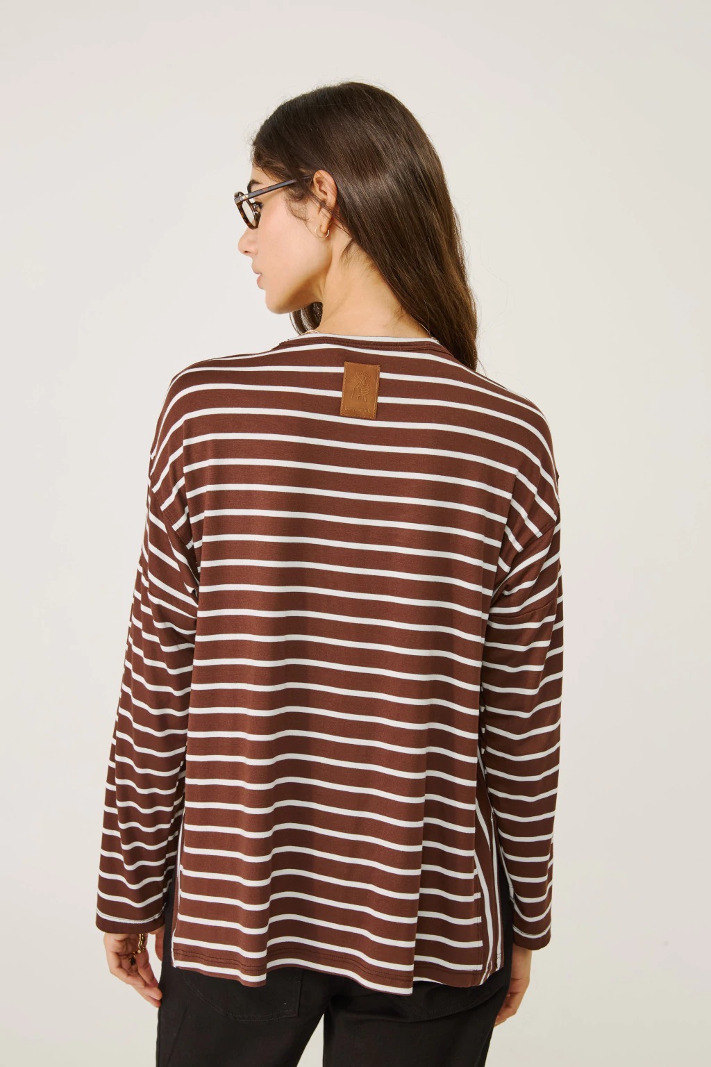 La Remera Manga Larga Angelina es sinónimo de elegancia y comodidad. Confeccionada en jersey con lycra rayada, esta prenda se adapta suavemente a tu silueta, brindando libertad de movimiento y un tacto delicado. Sus tajos laterales aportan un detalle moderno y sofisticado, ideal para lucir tanto en ocasiones casuales como en looks urbanos distinguidos. Descubrí el equilibrio perfecto entre estilo y confort.