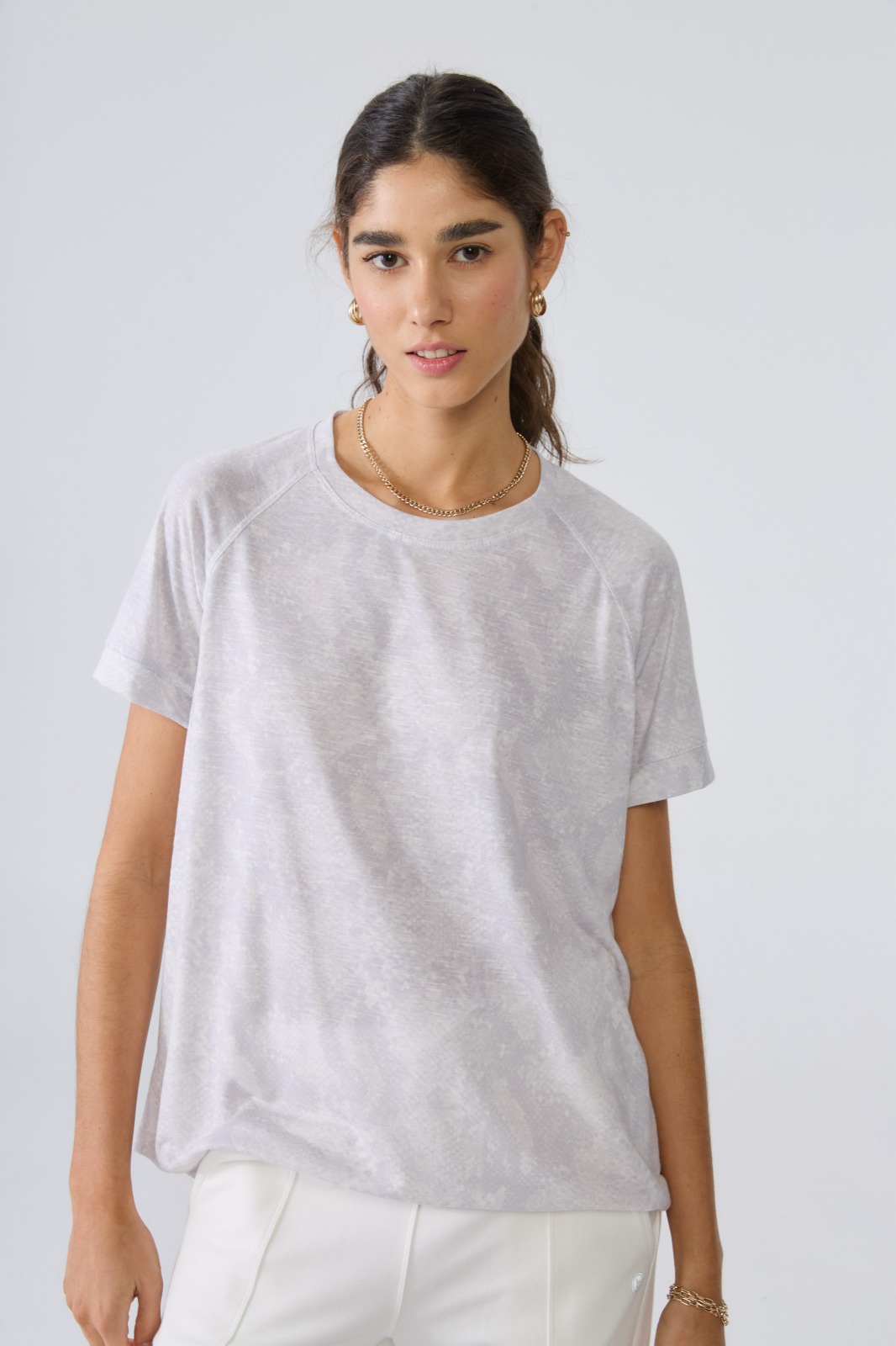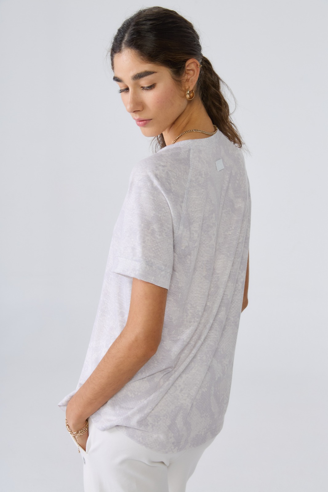 Su tejido liviano y de excelente caída asegura una sensación de confort durante todo el día, mientras que el estampado exclusivo aporta un toque distintivo y moderno. Gracias a su corte versátil, podés combinarla fácilmente con jeans, pantalones o faldas, logrando un outfit atractivo y cómodo.