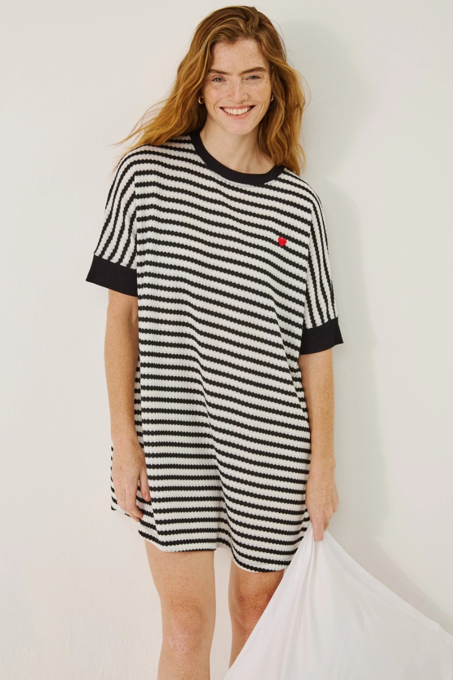 Remerón Sofía es el pijama ideal para quienes buscan comodidad y estilo en casa. Confeccionado en tejido crochet rayado, ofrece una textura suave y liviana que se adapta perfectamente al cuerpo. Su diseño amplio te permite moverte con libertad y disfrutar de un descanso reparador. Disfrutá de la calidez y originalidad del Remerón Sofía para tus momentos de relax.