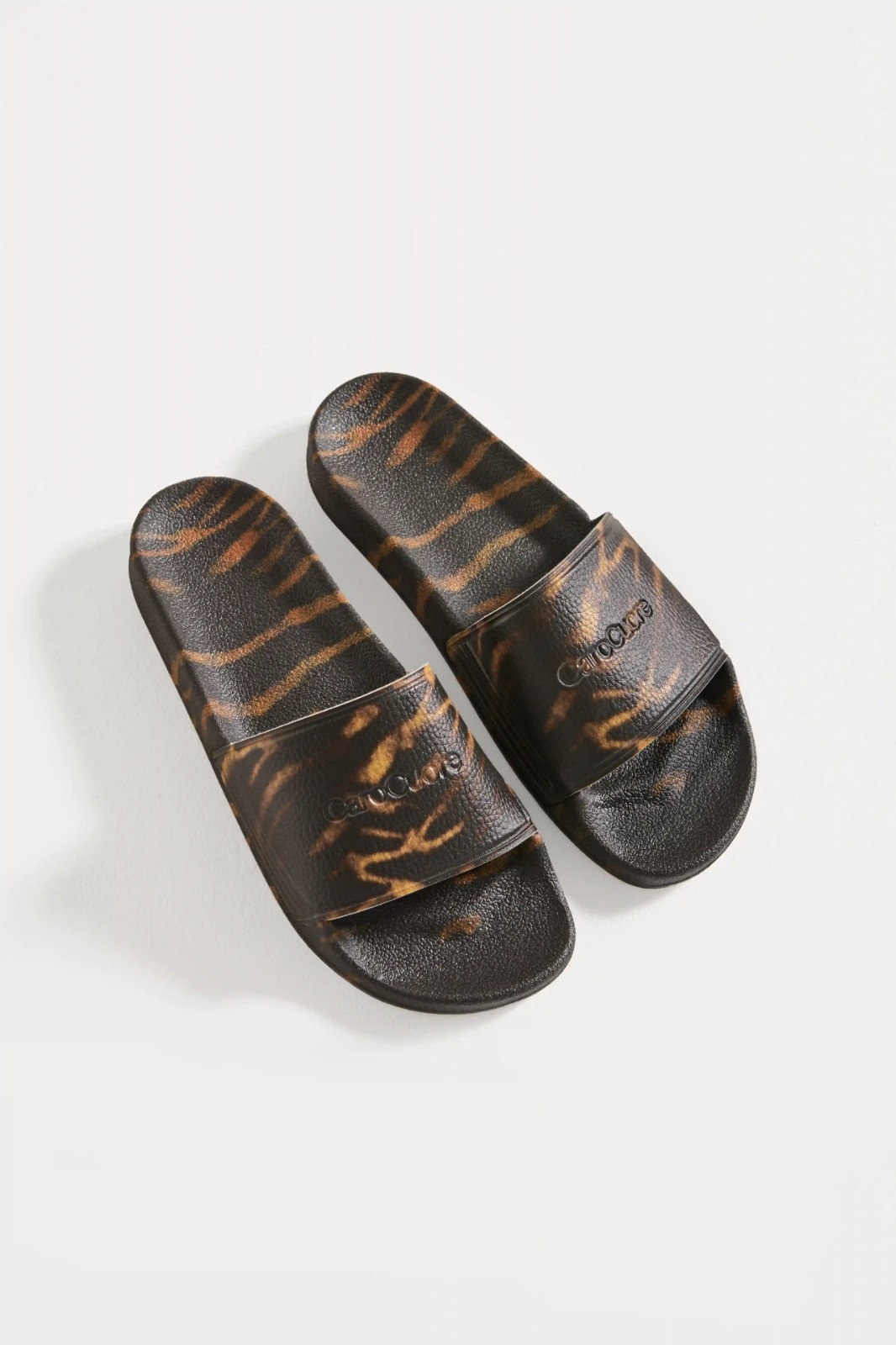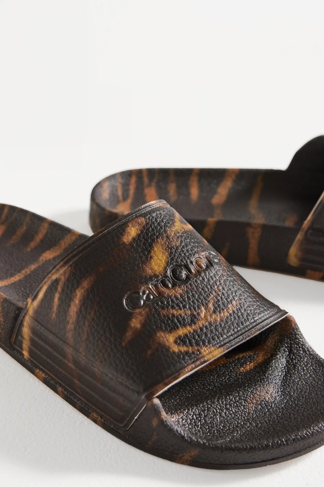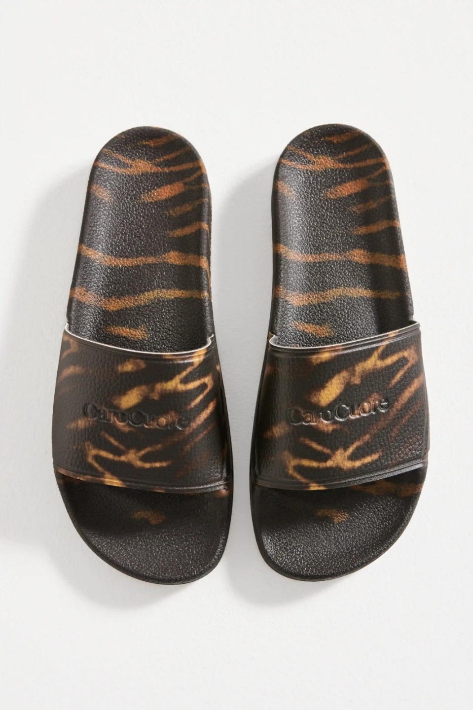 Sandalia de goma estampada con logo personalizado. Complemento de traje de baño, combinable con la familia Tassia