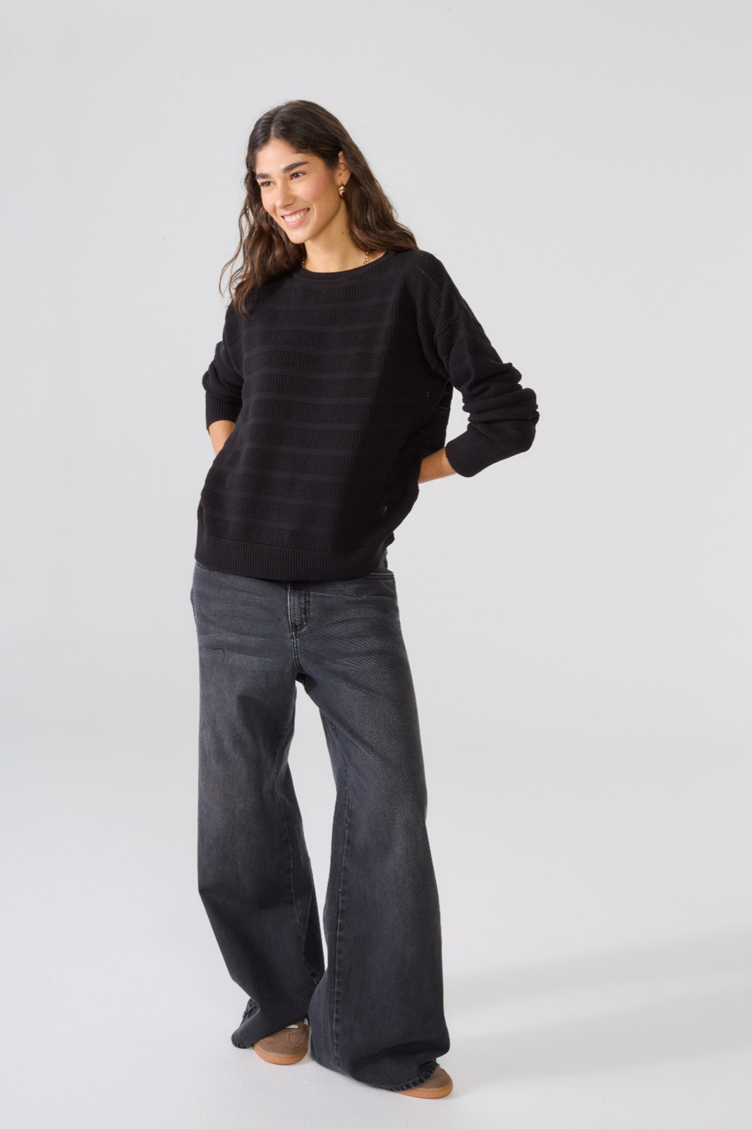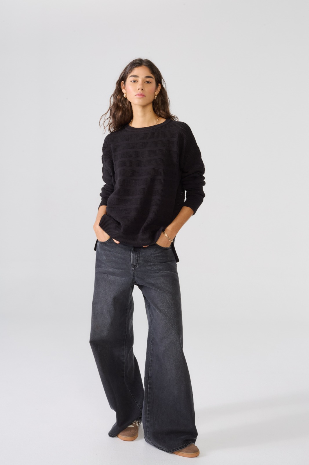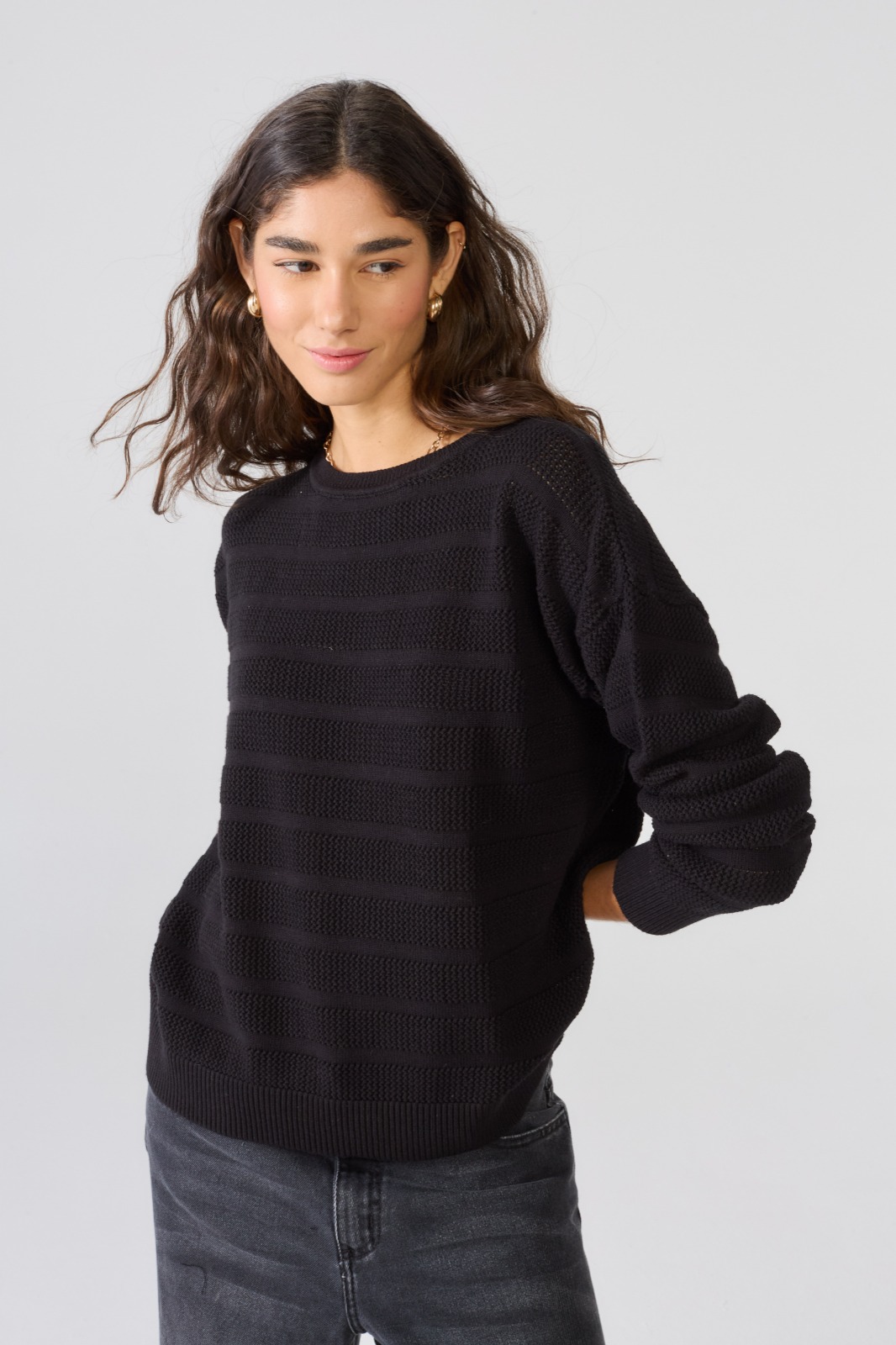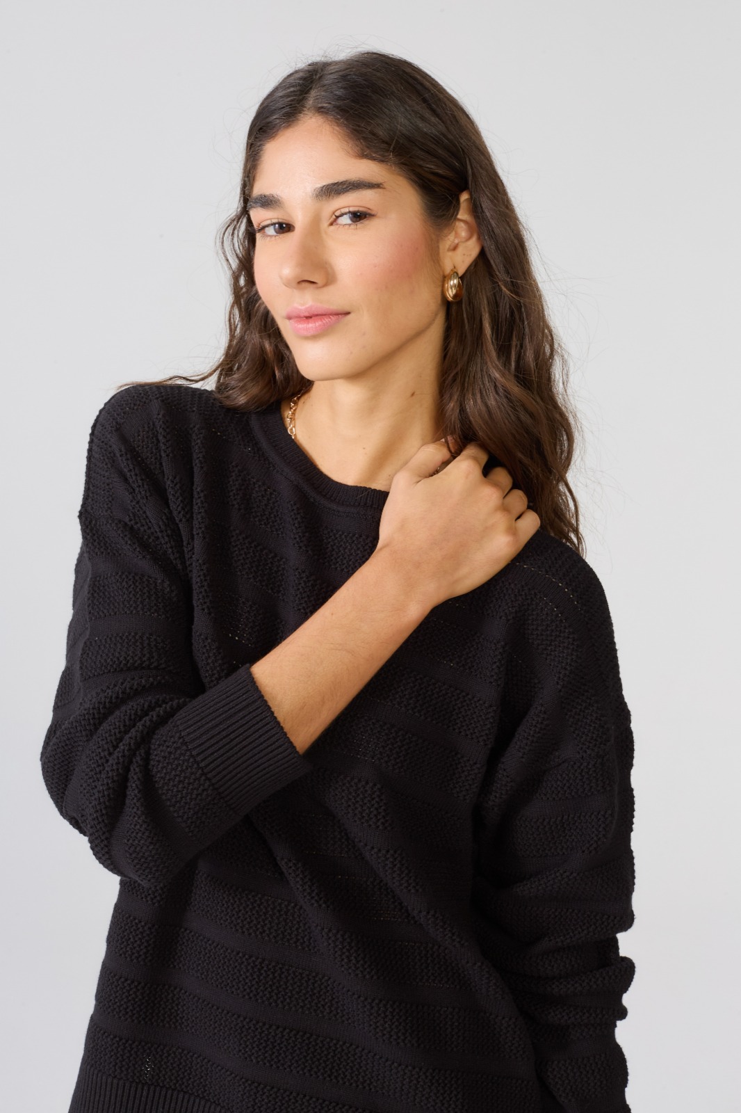 Descubrí el Sweater Redondo Links, una prenda imprescindible para tu guardarropa de temporada. Este sweater está confeccionado en un tejido links elastizado, lo que garantiza una textura suave, flexible y con una caída impecable que se adapta perfectamente a tu silueta.