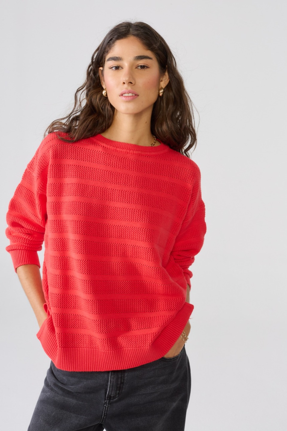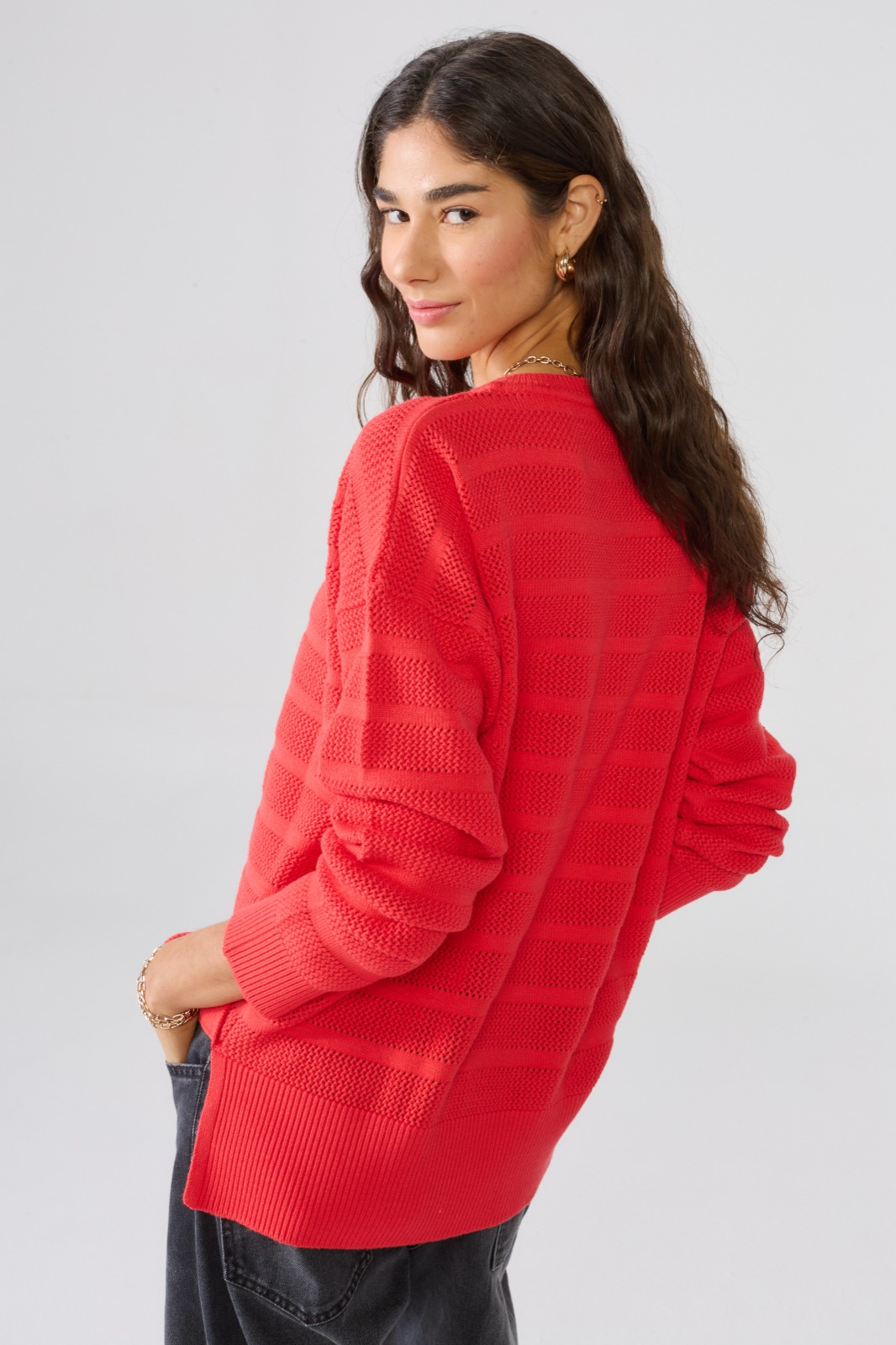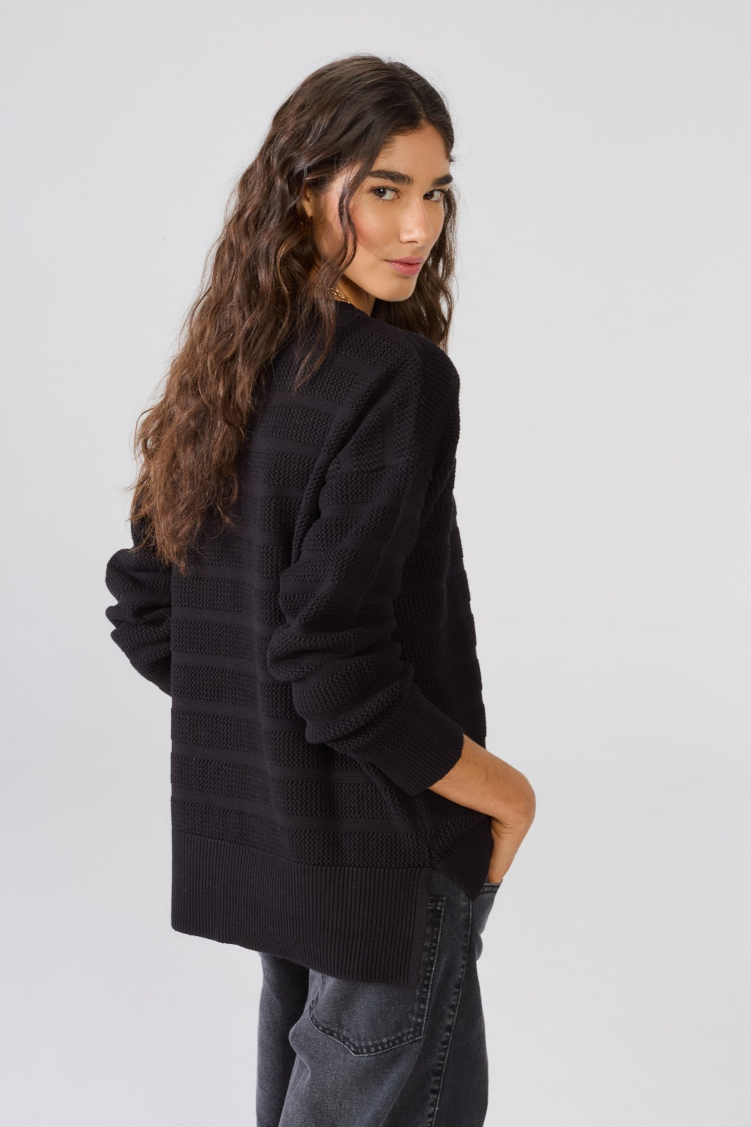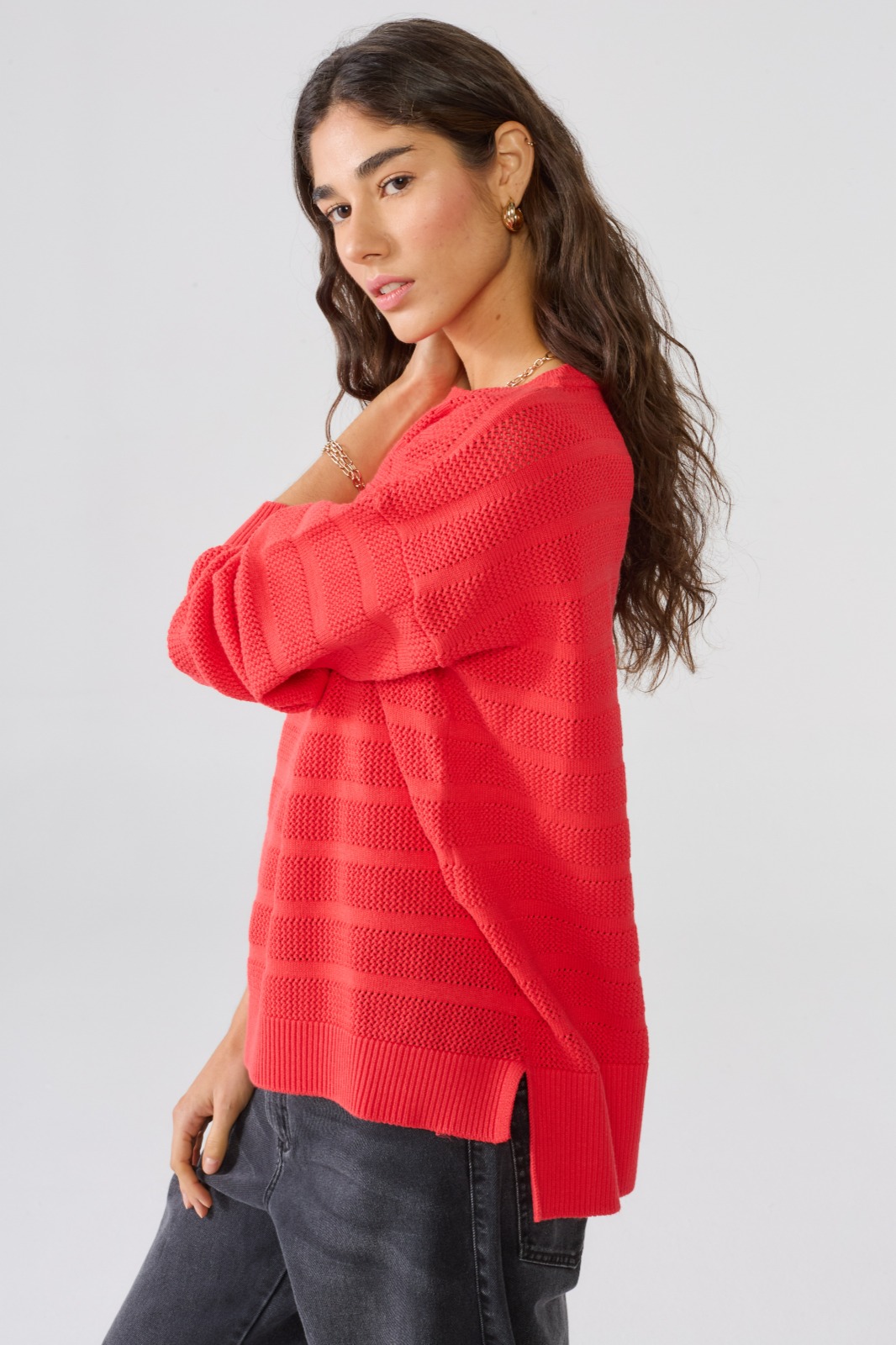 Descubrí el Sweater Redondo Links, una prenda imprescindible para tu guardarropa de temporada. Este sweater está confeccionado en un tejido links elastizado, lo que garantiza una textura suave, flexible y con una caída impecable que se adapta perfectamente a tu silueta.