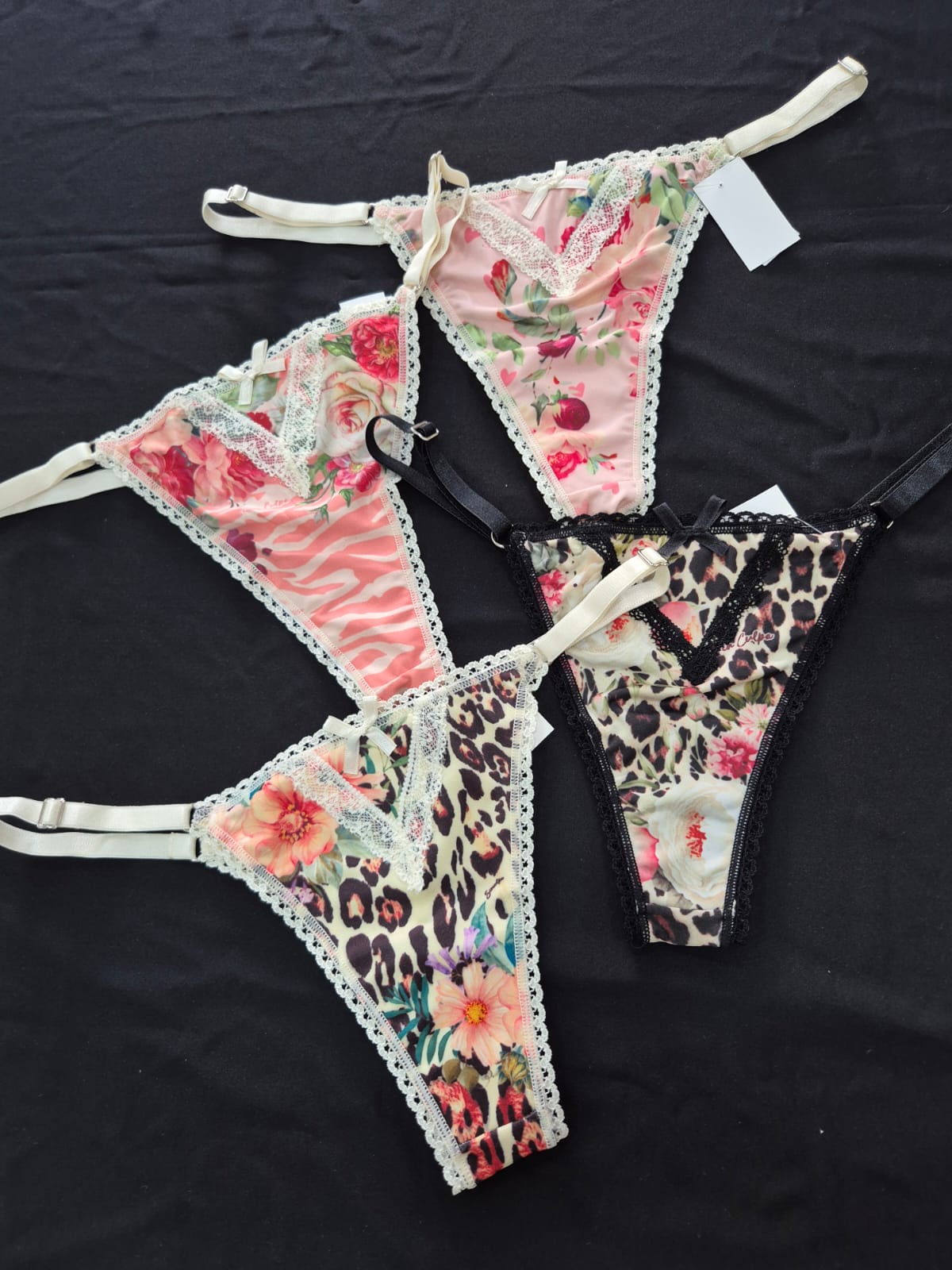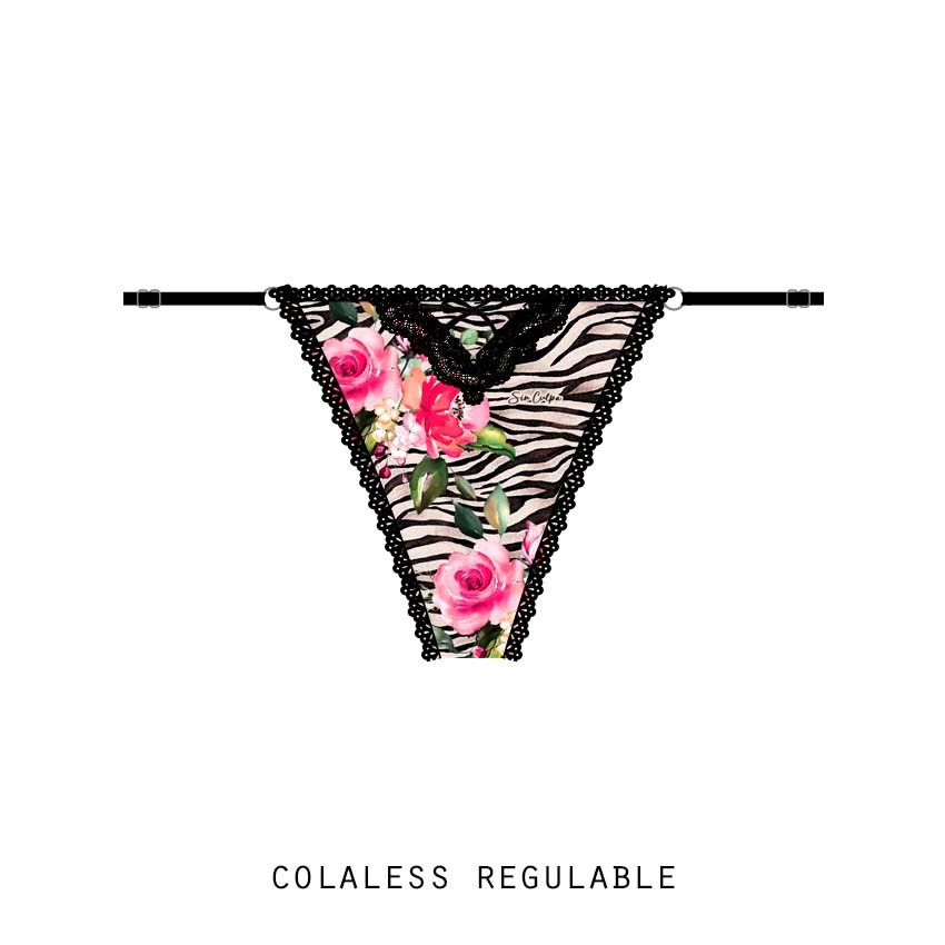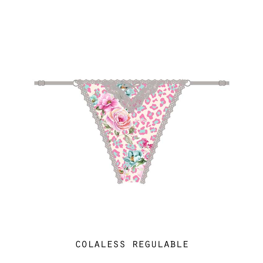 Colaless con laterales regulables de microfibra estampada y detalles de puntilla
