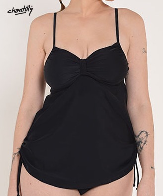 Tankini con elástico bajo busto. Forro EXTRA-SUJECIÓN en la zona del corpiño. Laterales con tiritas para fruncir, Solo la zona del corpiño está forrada. Elásticos regulables.