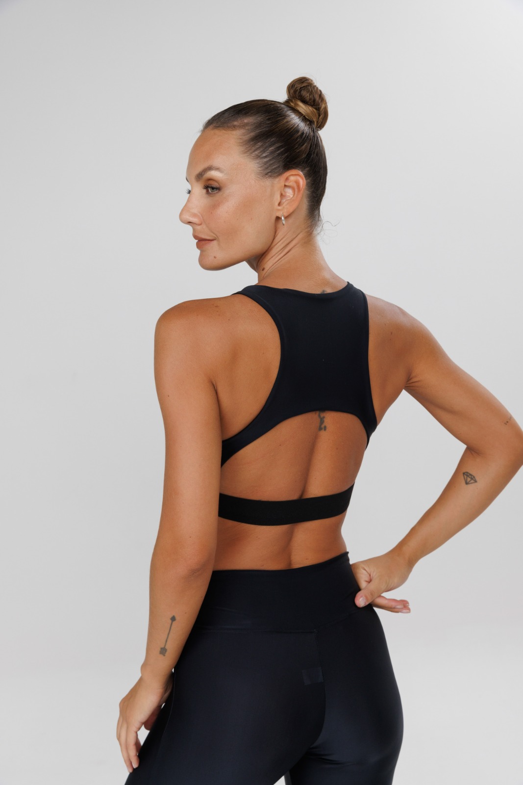 Top de lycra con abertura en la espalda y elastico en el bajo busto