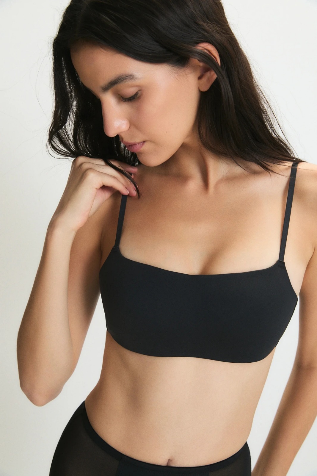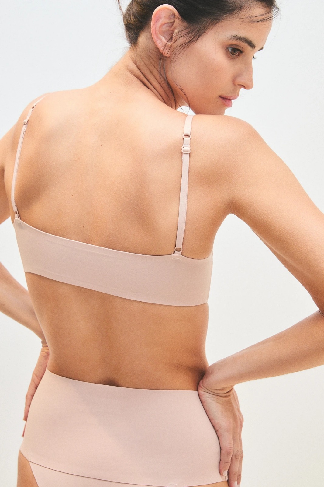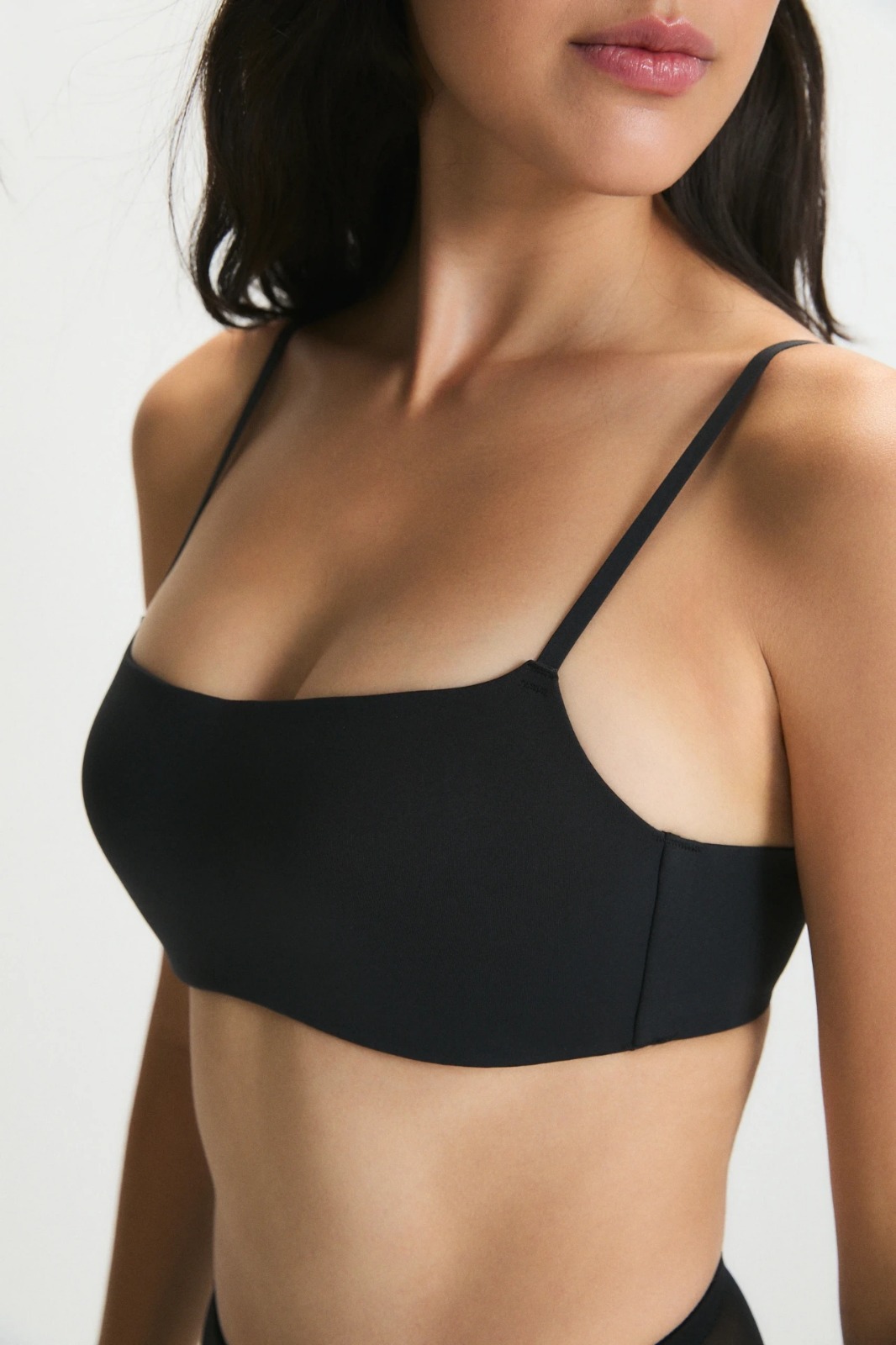 New Top Invisible Bra de microfibra liviana extra suave. La terminaciones bondeadas, sin costuras, se apoyan sobre la piel y no marcan ni ajustan. La taza soft realza y modela el busto.