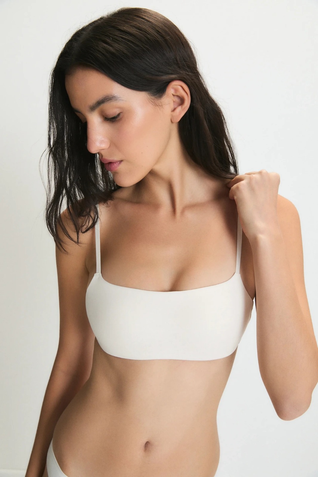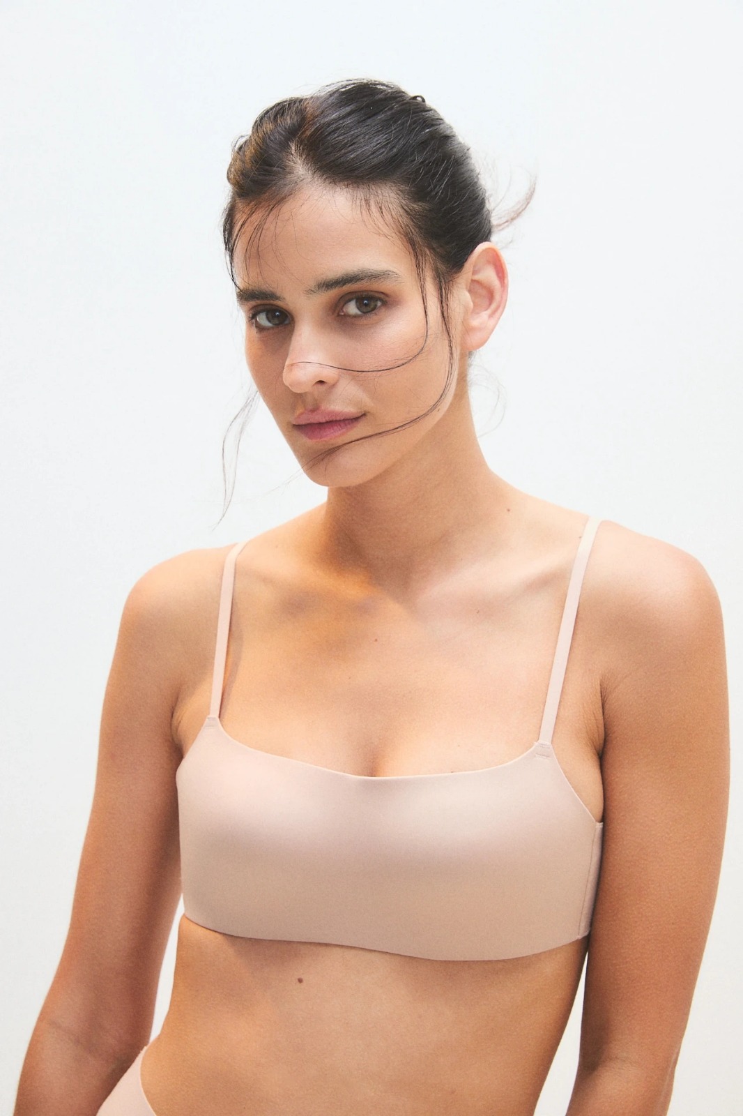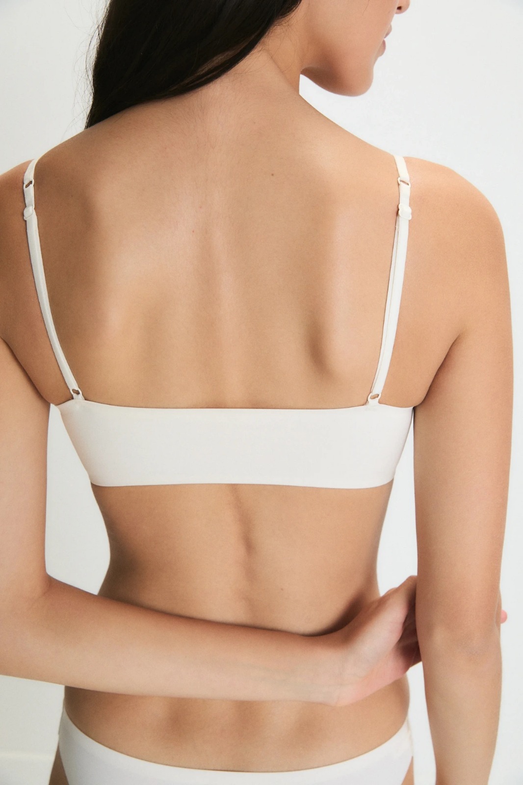 New Top Invisible Bra de microfibra liviana extra suave. La terminaciones bondeadas, sin costuras, se apoyan sobre la piel y no marcan ni ajustan. La taza soft realza y modela el busto.